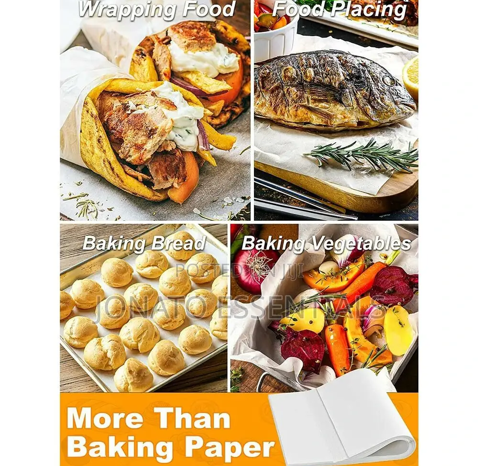 10 pcs parchment paper sheets, baking sheet size: 76 x 50 cm used for baking, packaging, freezing, cooking and grilling. baking sheet, pre-cut, non-stick silicone oil paper, 100% wood pulp and food grade coating, totally fluorescent free and non-toxic, temperature resistance is from -68 to 450°f for baking, packaging, freezing, cooking and grilling.