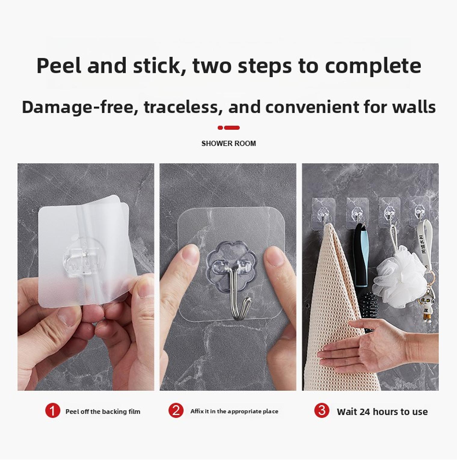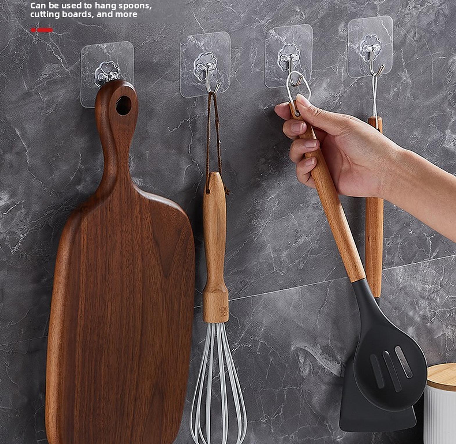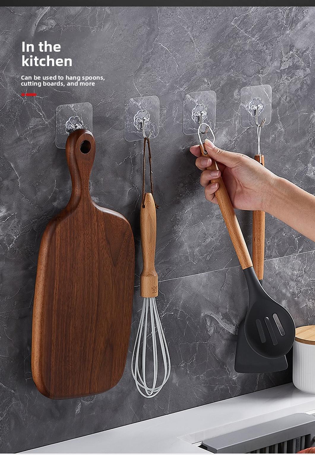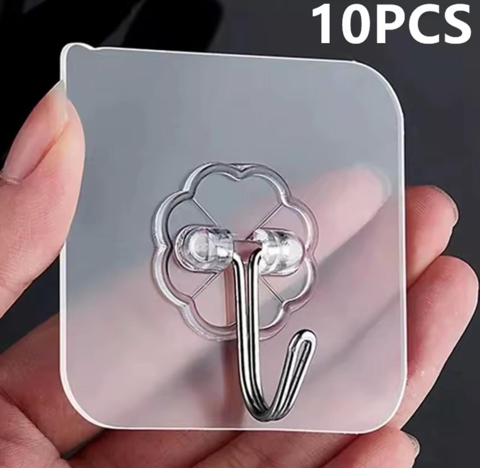 10 piece multipurpose hooks, wall mounted adhesive hooks easy instalation peel and stick can bear up to 12 kgs sticks on smooth surfaces such as marble, tiles, wood, metal, glass etc used in kitchen to organize cutlery. used in the living room to hang and organize keys. used for hanging handbags and clothes hanger. transparent strong self adhesive door or wall hangers, hooks kitchen and bathroom accessories holders and hangers