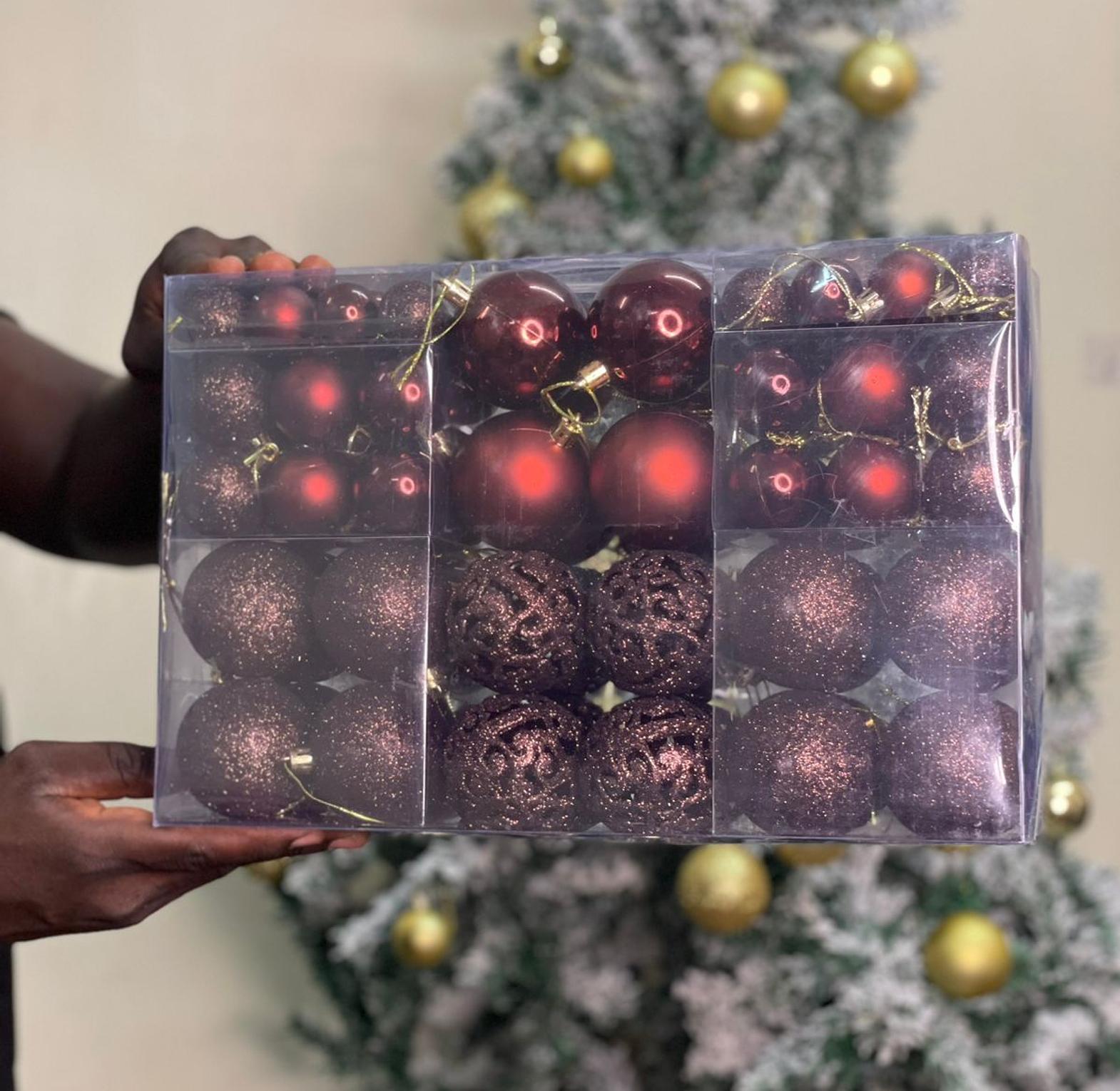 Elevate your holiday decor with this spectacular 100 piece premium Christmas ball set. Featuring a blend of glossy, glitter, and matte shades of deep red and burgundy, this collection offers an instant, coordinated look for your Christmas tree or venue. The assorted sizes and textures add depth and luxury. Ideal for homes, hotels, or corporate offices needing quality festive decorations in Kenya. Buy this complete Christmas decor set today and save on bulk purchase.