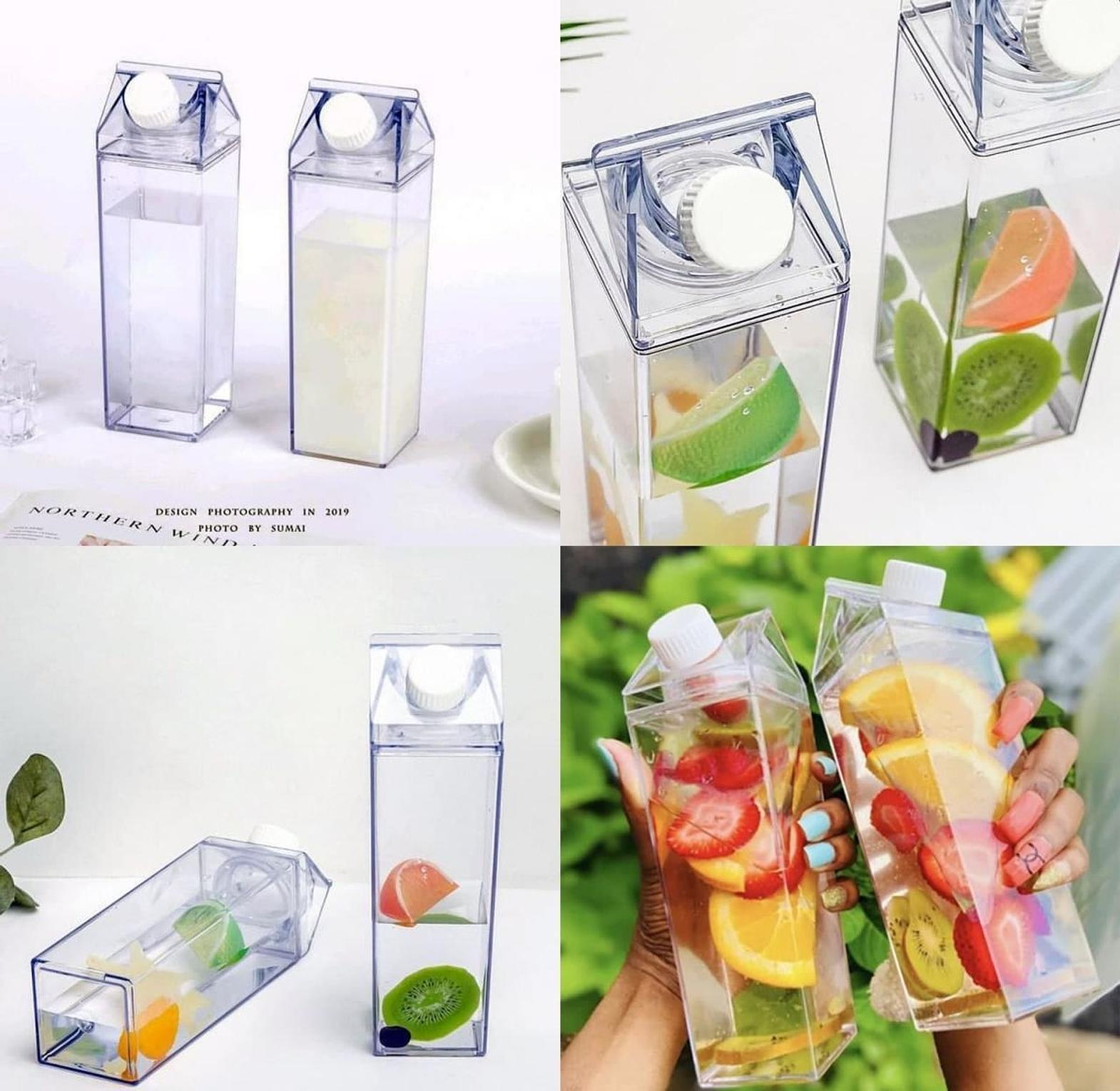 Clear acrylic milk / water bottle capacity 1000ml this is used to carry and drink juice, milk or water refrigerator friendly transparent plastic water bottle or juice bottle
