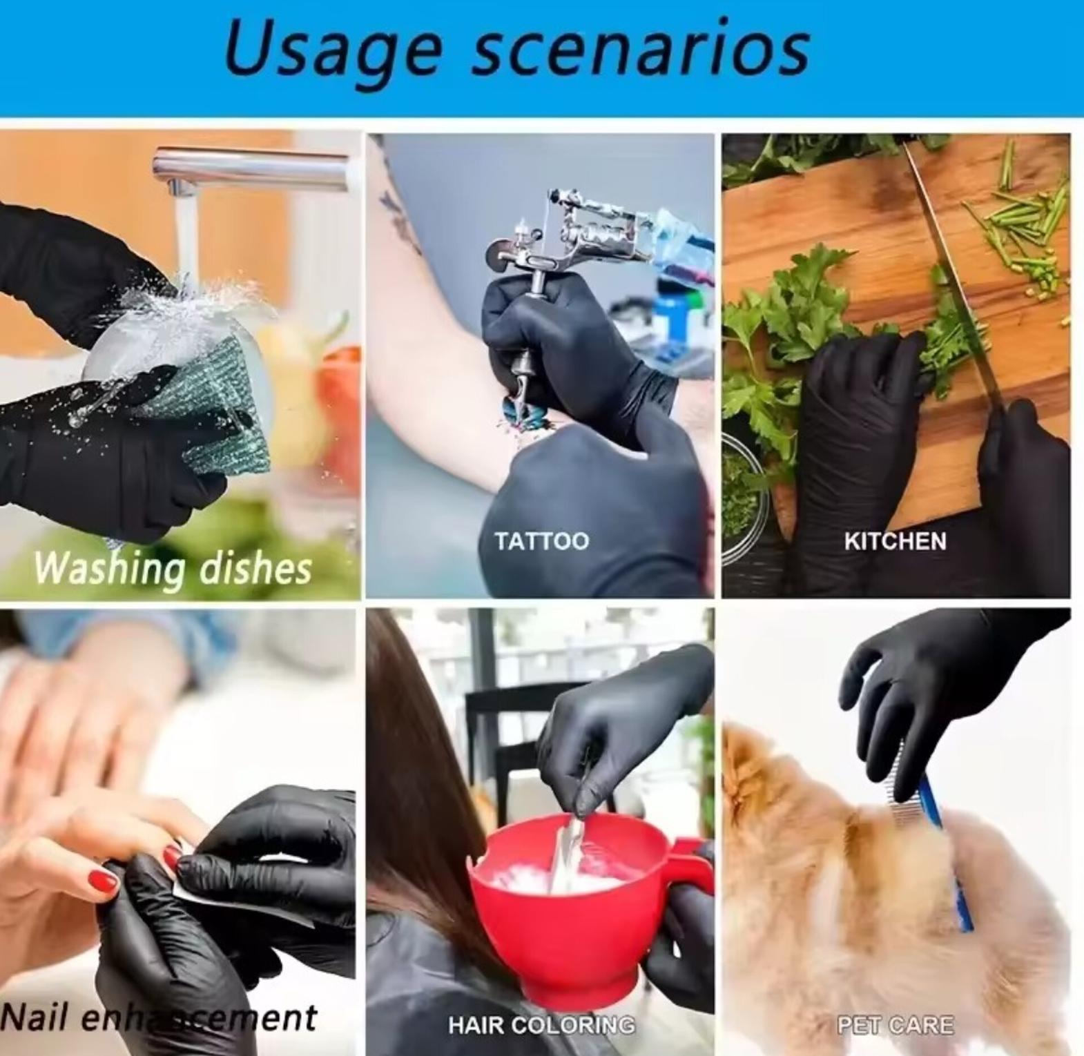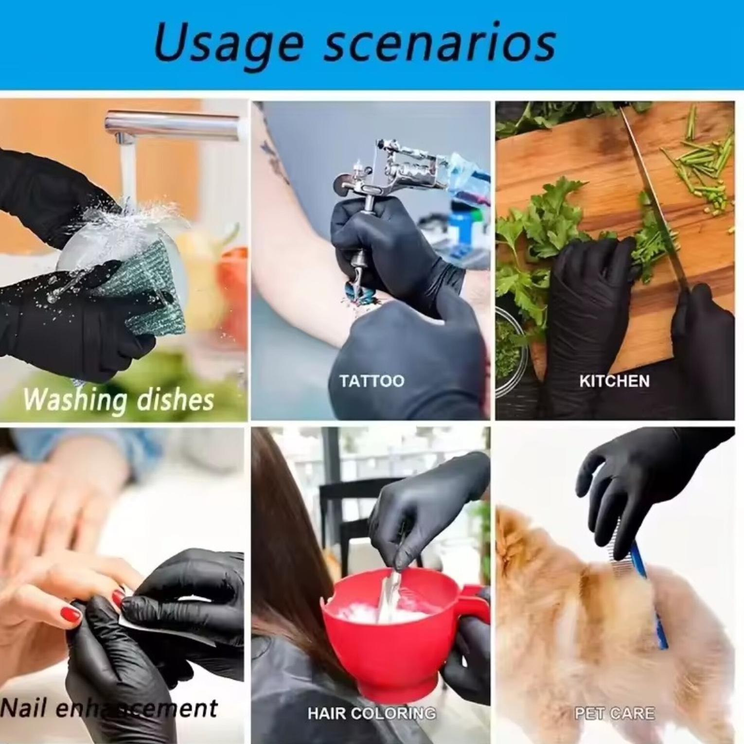100pcs disposable nitrile gloves, synthetic gloves 100pcs disposable synthetic gloves material:nitrile application: food, household, hardware tools, spas etc. allergy free waterproof high-quality material: made of durable and high-quality nitrile material, these gloves are resistant to punctures, tears, and chemicals, providing reliable protection for your hands. multi-functional: perfect for various household tasks such as cleaning, washing dishes, gardening, and more. these gloves are also suitable for use in the kitchen, garage, and outdoors. oil-proof and waterproof: these gloves are designed to be oil-proof and waterproof, keeping your hands dry and protected from harsh chemicals and liquids. 100pcs disposable blue nitrile gloves for kitchen disposable latex gloves, oil-proof gloves, multi-functional washing gloves.