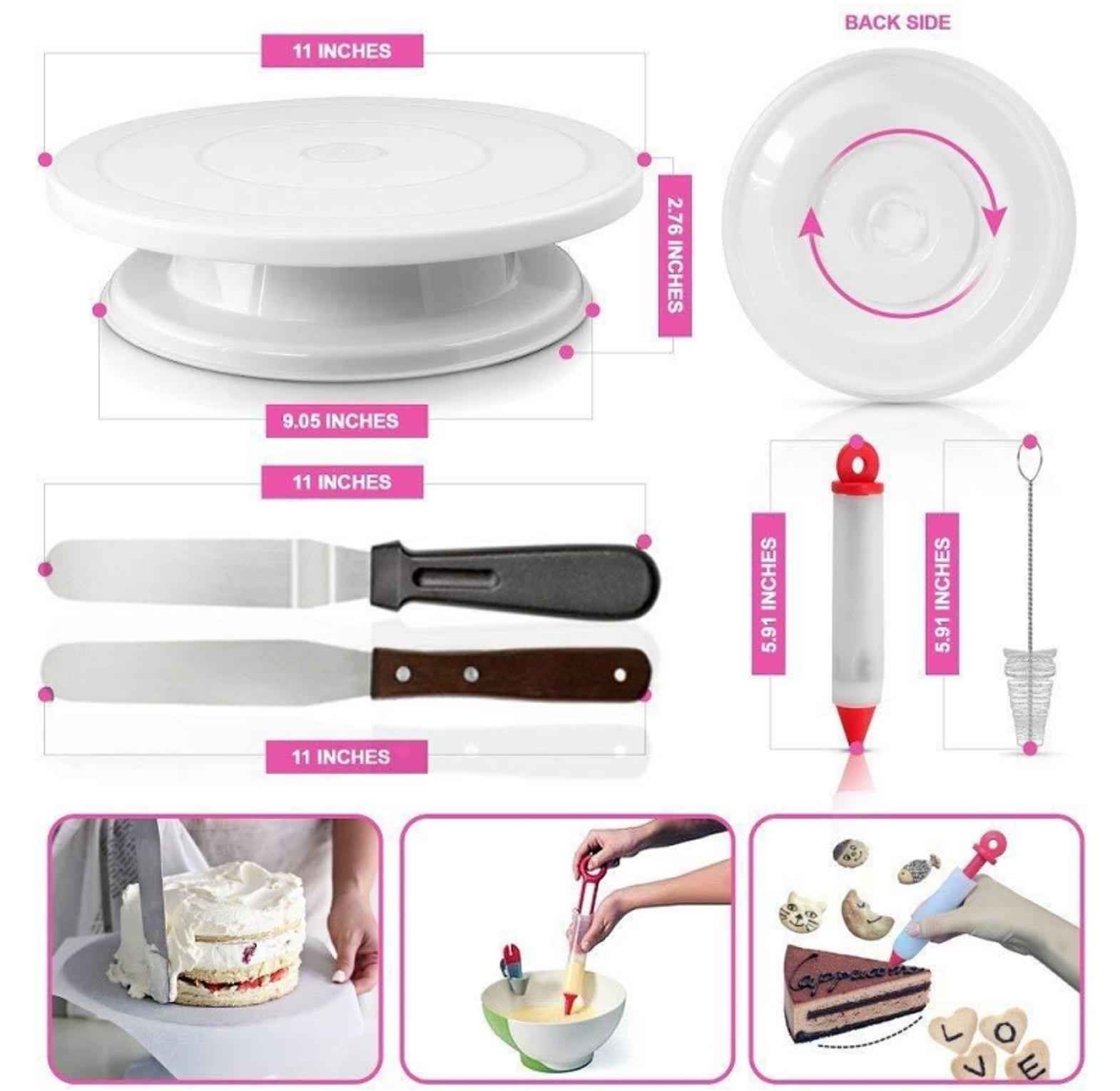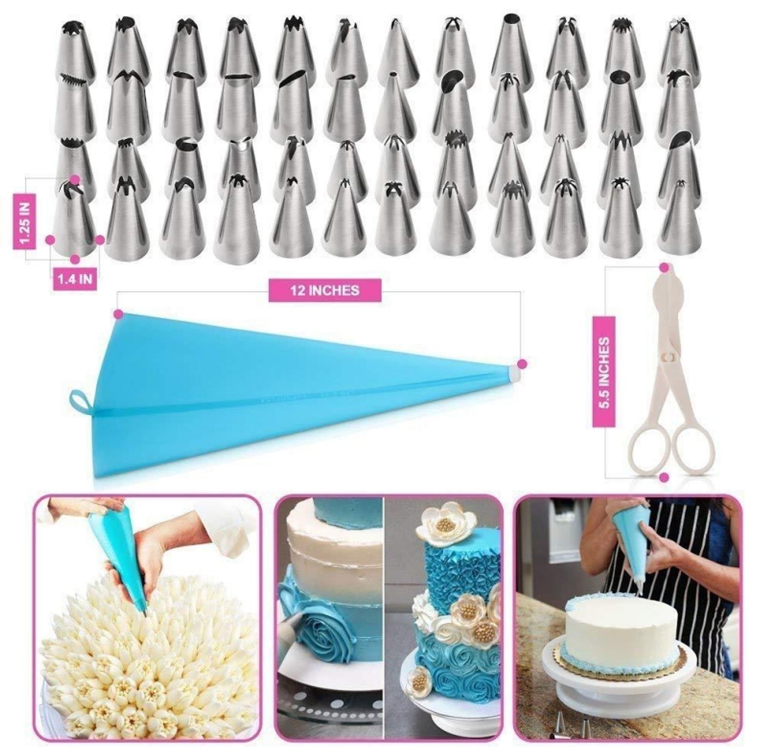 106 piece cake decorating set, cake baking tools essential cake decorating supplies kit: this baking supplies has everything you need to create beautiful cakes, no need to buy extra products — all you need is the frosting, the cake, and this cake decorating kit! 360° spinning cake turntable: making it easy to achieve stunningly consistent patterns and gorgeous designs. with 360o clockwise and counterclockwise spinning, you can decorate cakes like the pros. straight and angled frosting spatulas: these high-quality stainless steel frosting spatulas make it easy to even out frosting and work on layered cakes. you can create even crumb layers and perfect surfaces. cake decorating tip sets 106pcs pastry bag confectionery accessories nozzle stainless cream cake baking tools.