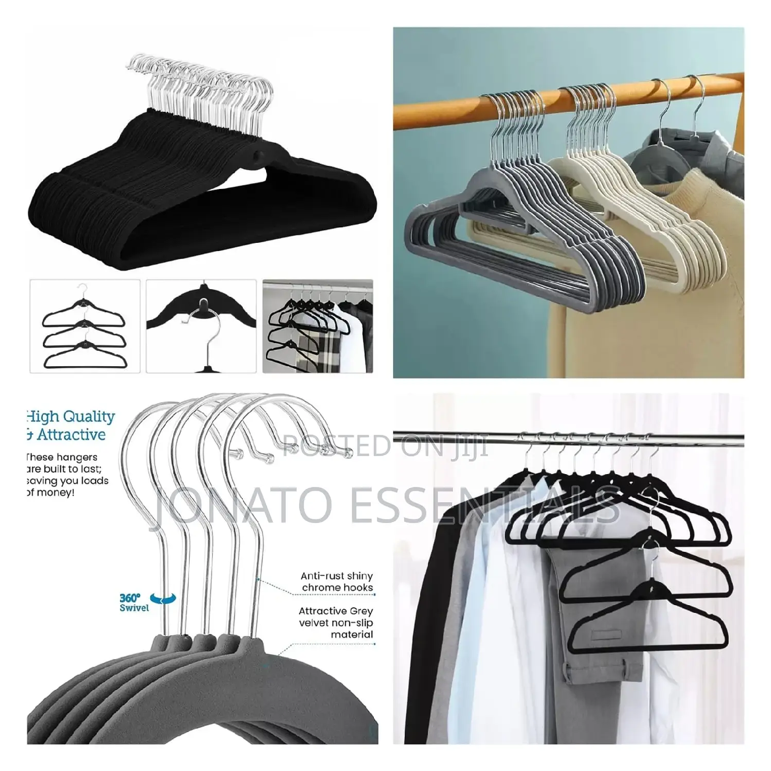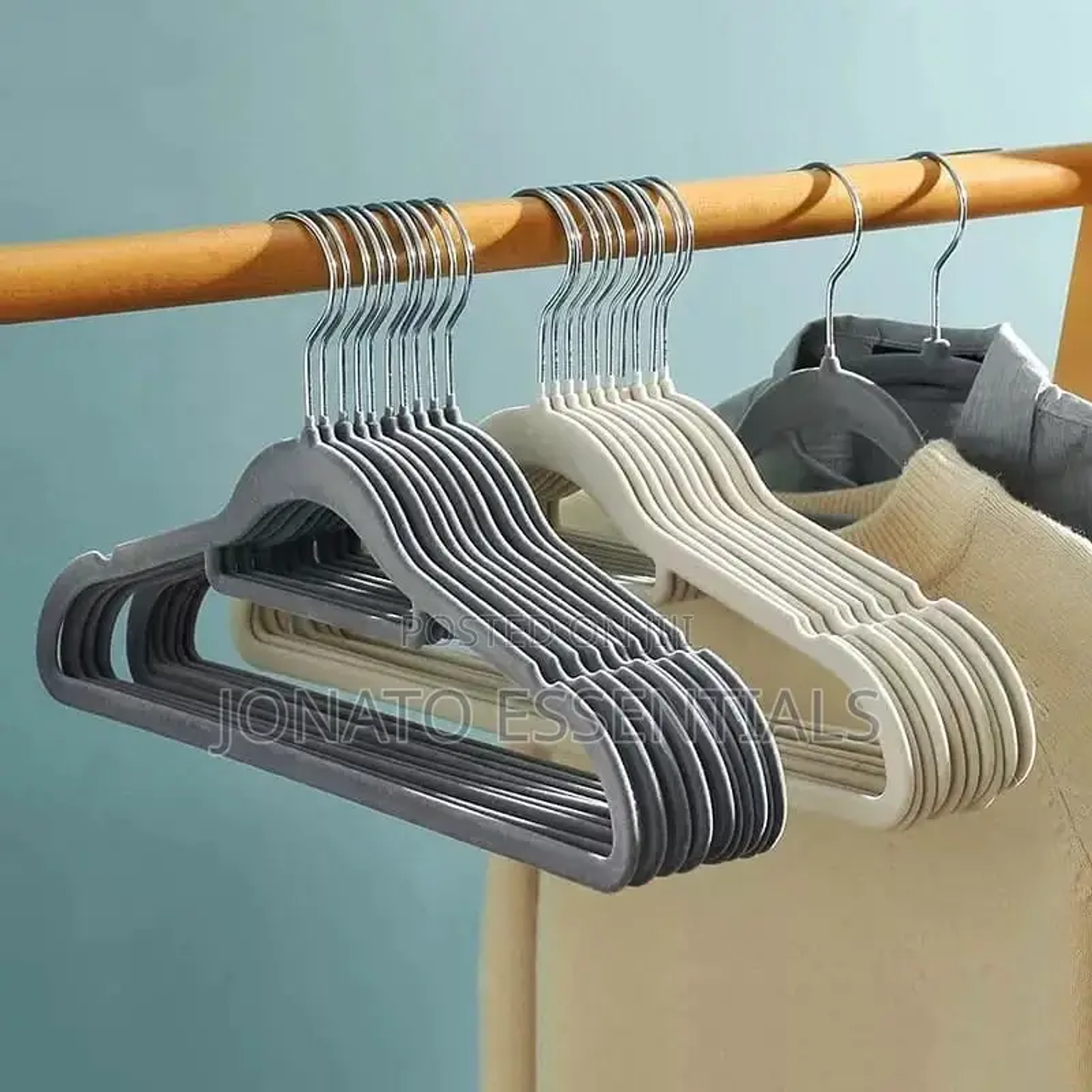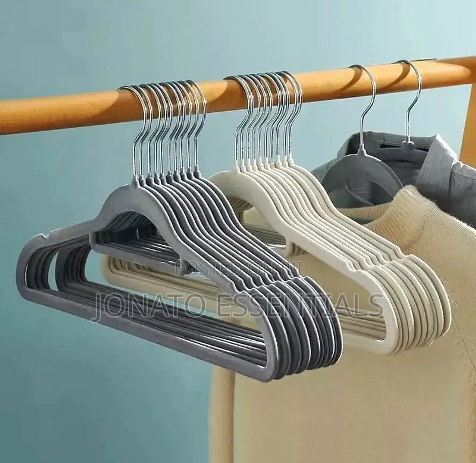 10pc non slip velvet clothing hanger , rotatable hangers. the velvet flocking on the hangers increases friction between hanger and clothes and gently grips garments, preventing them from slipping off. contoured shoulder line helps preserve clothes shape and avoid creases. the notches help keep straps in place, a special design for your slip dress and camisoles. clothes hanger 10 pack hangers for clothes easyfashion heavy duty non slip velvet clothing hanger.