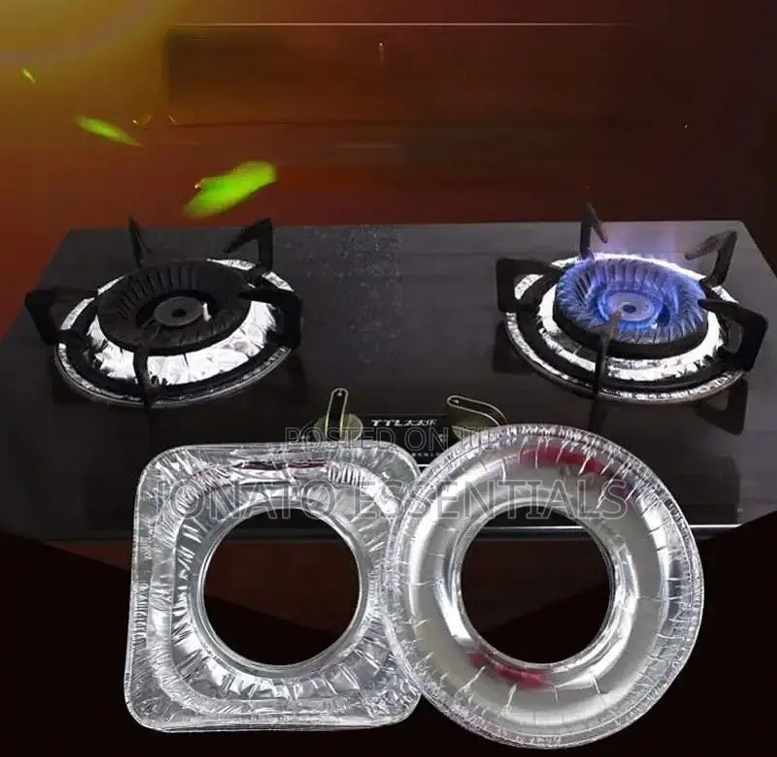 10pcs aluminium gas burner liners round shape diameter 23cm square shape 23*23cm. our gas burner covers are thicker than others on the market, the non-toxic aluminium we use is heat resistant and safe in your home and around foods. our square gas stove liners were designed to fit all stove tops, if needed, you can simply cut to size using scissors. 10pcs thicken aluminium stove protector cover gas stove burner liner stovetop cleaning pad mat kitchen accessories disposable.