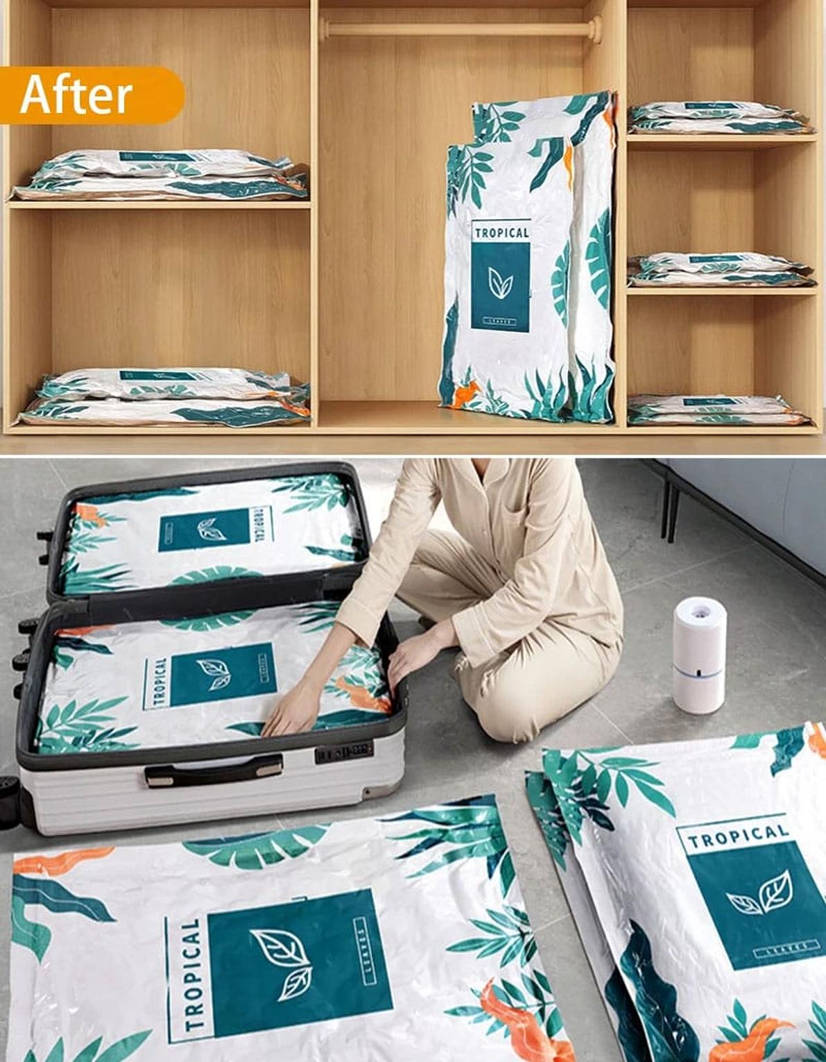 10pcs Vacuum Compression Storage Bags With Electric Pump