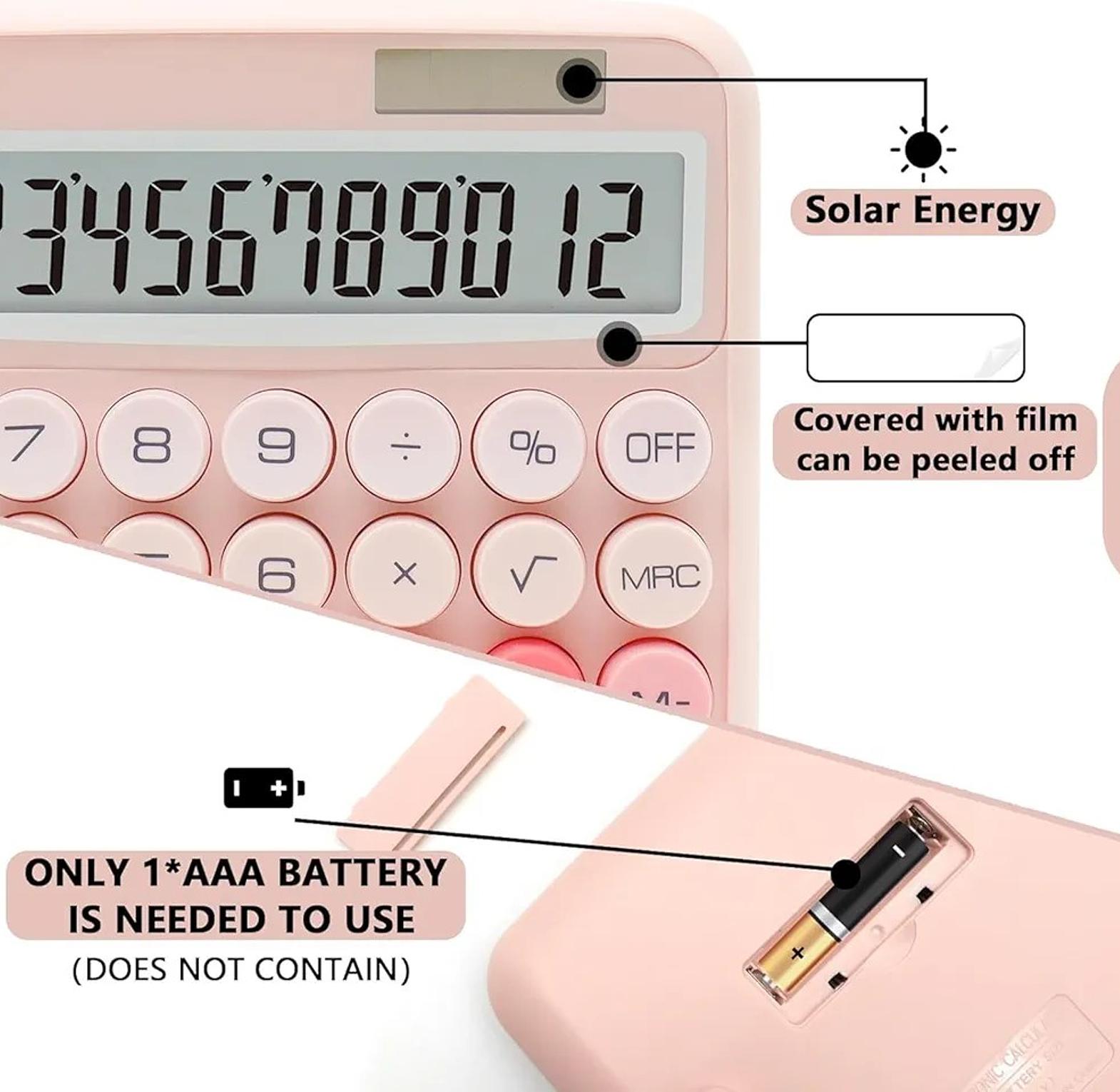 12 digit solar energy calculator add a touch of charm to your studies or workspace with these trendy pastel-colored calculators. featuring cute, retro-style round keys, they are not only visually appealing but also highly functional. the compact and portable design makes them perfect for students and professionals on the go. available in multiple aesthetic colors, these calculators are an essential accessory for anyone who wants to combine style with efficiency. keyboard calculator office 12-digit mechanical calculator cutecandy color calculator. 12 digit solar energy calculator with – stylish work desktop calculator for home, school, office, desktop easy to use lcd display big buttons. cute calculator for home, office school & business.