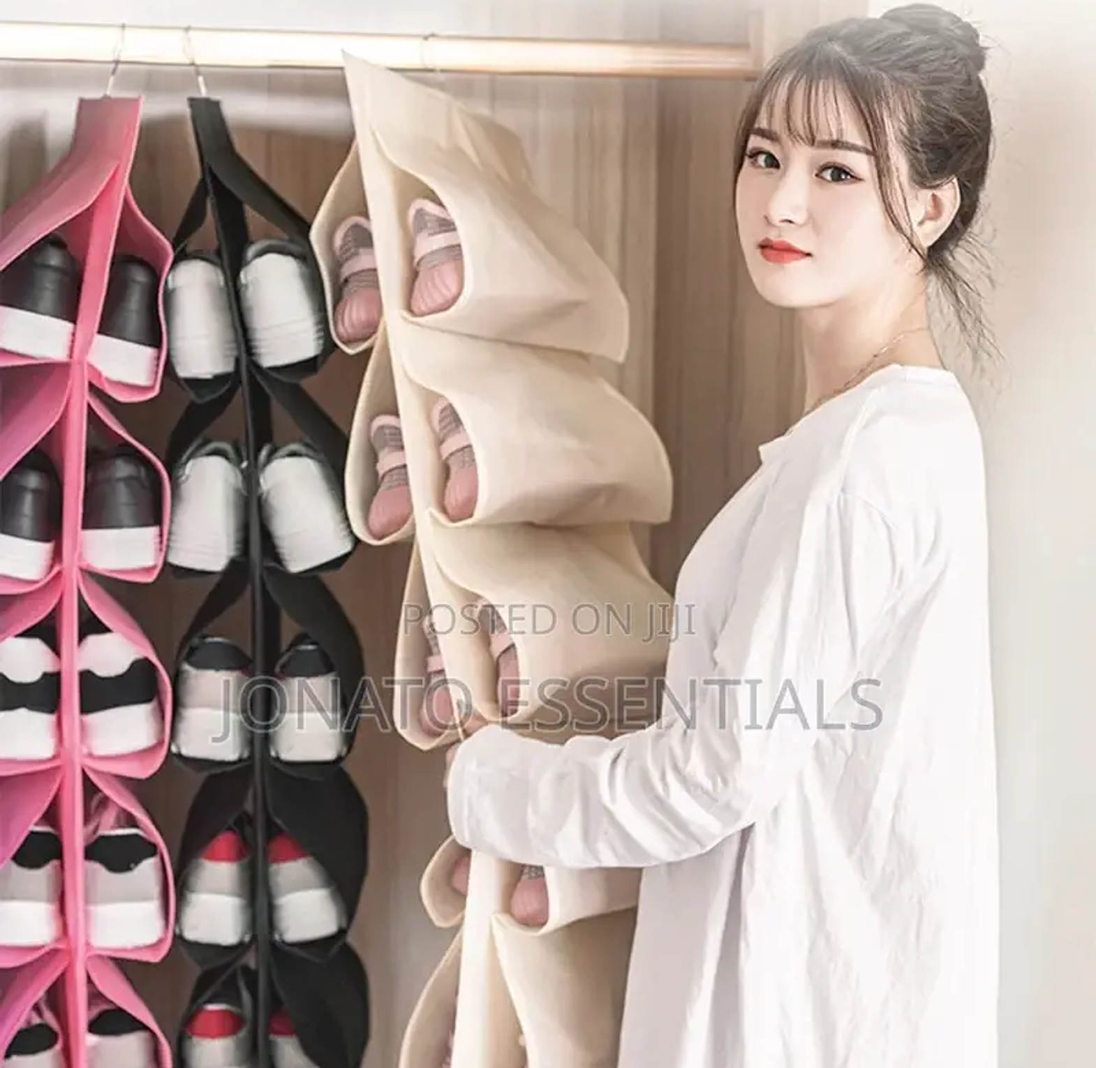 12 Grid Hanging Shoe Storage Bag, Closet Organizer