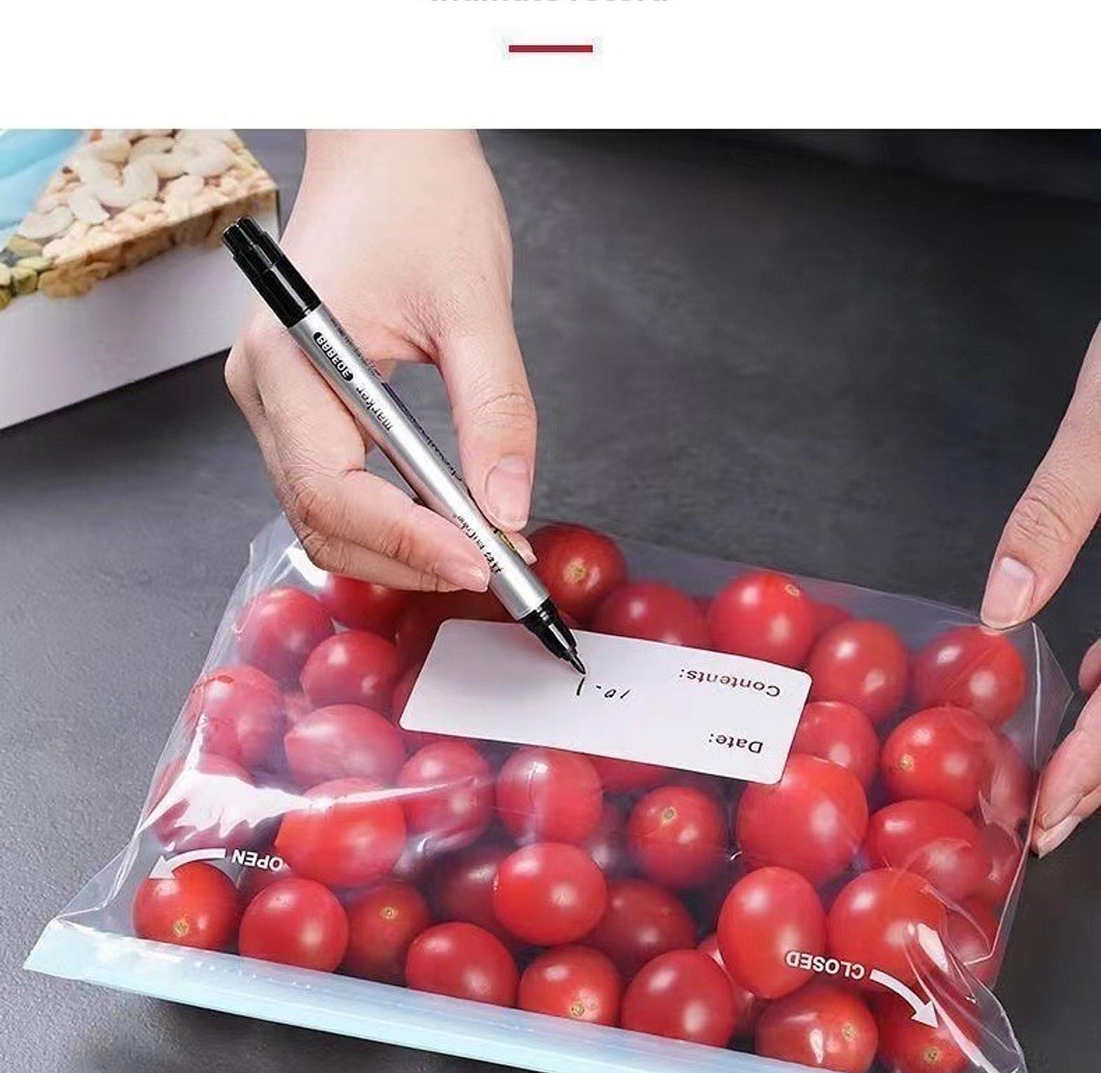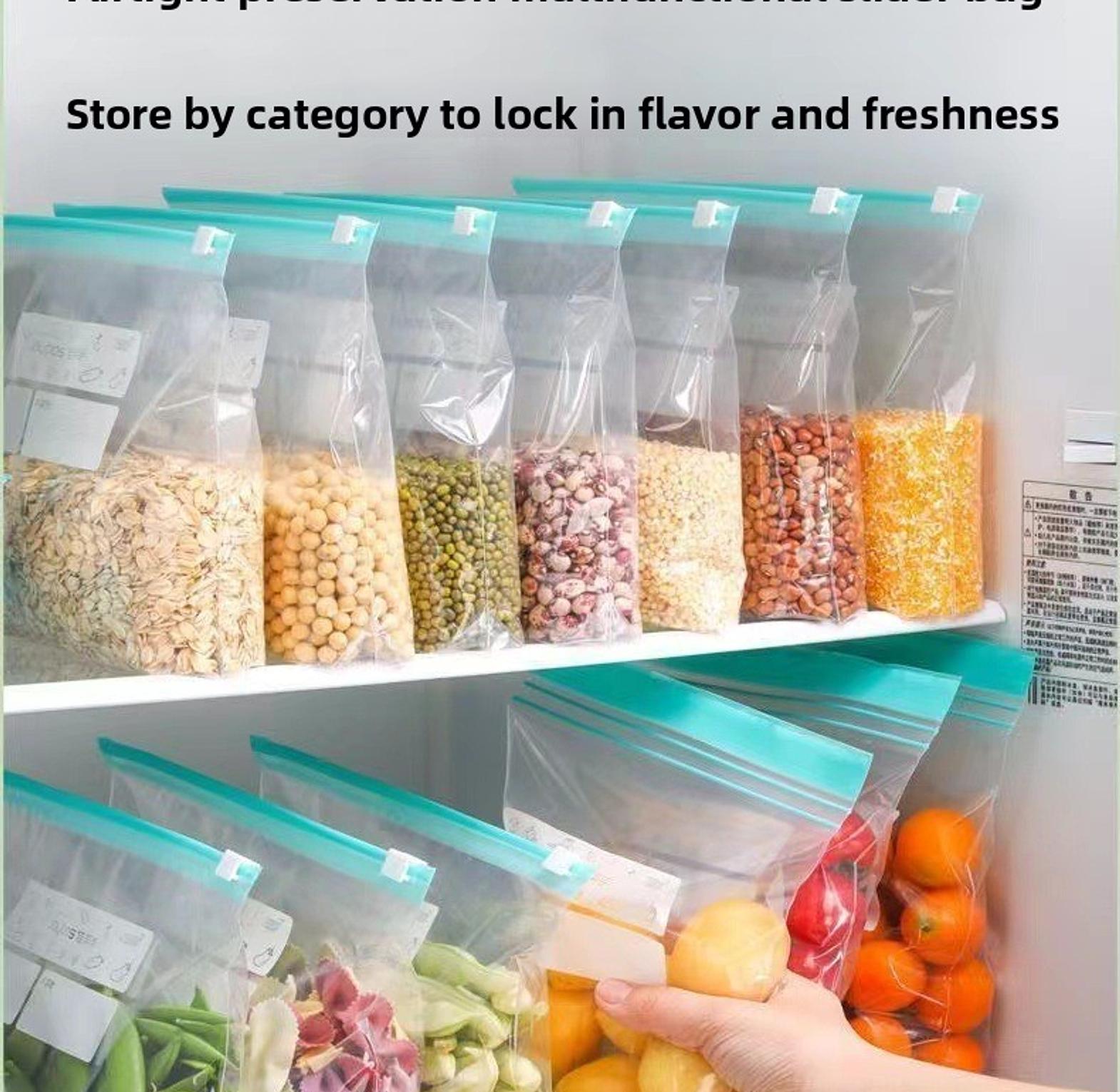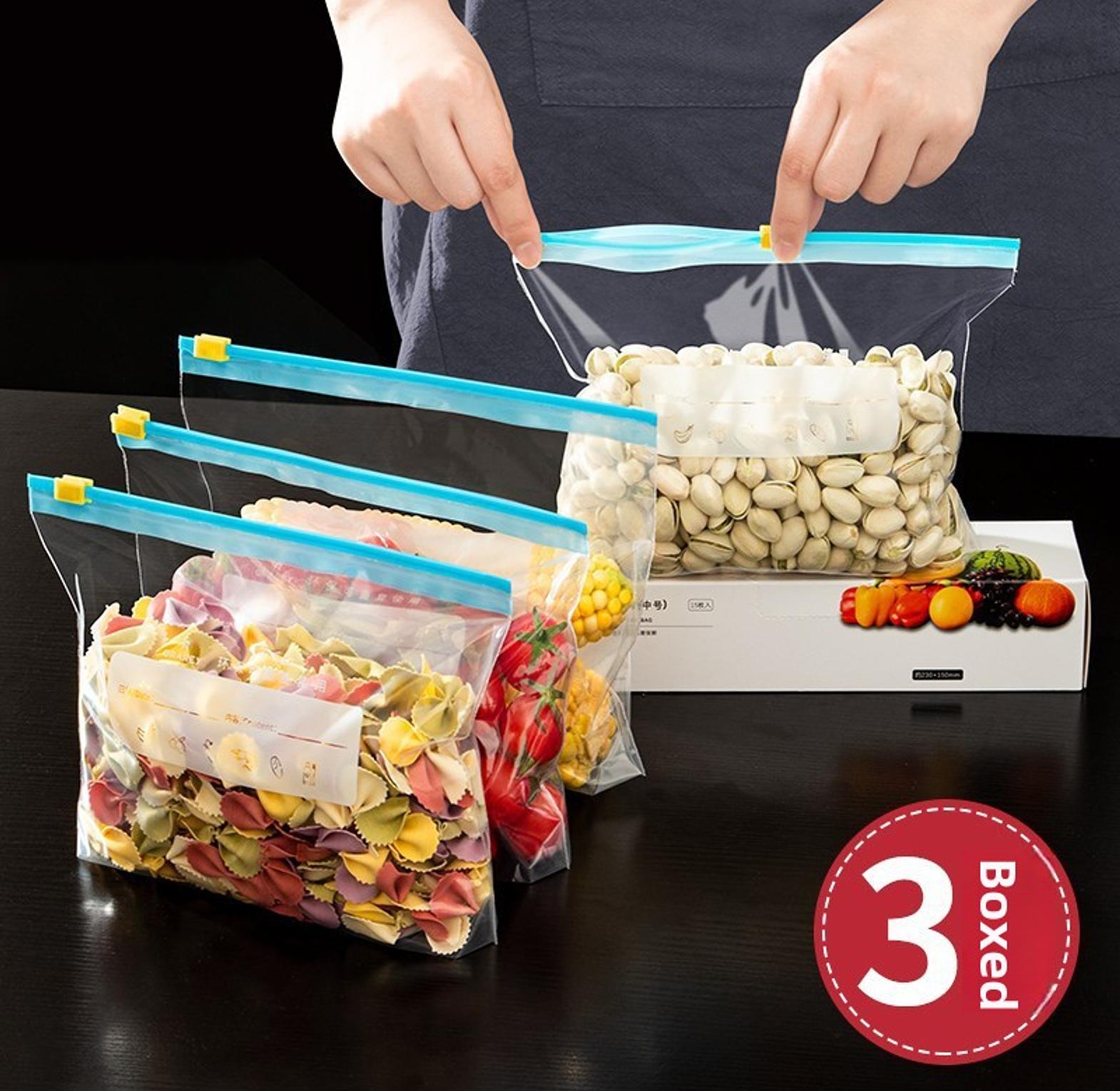 15pc reusable zipper bags, ziplock paper bags reusable fridge bags with zipper and box packing. size 23*16cm(15pc) also available at the same price, size 26*32cm(10pc) 1.high-quality pe material, thick, fresh and durable. 2.double-channel clip chain, suction double-layer clip chain, good sealing. 3.intimate record area, record the name and date of the food. 4.good sealing, waterproof, moisture-proof and leak-proof. wrap plastic ziplock bags food storage bags reusable refrigerator organizer fruit grain fresh-keeping plastic storage container.