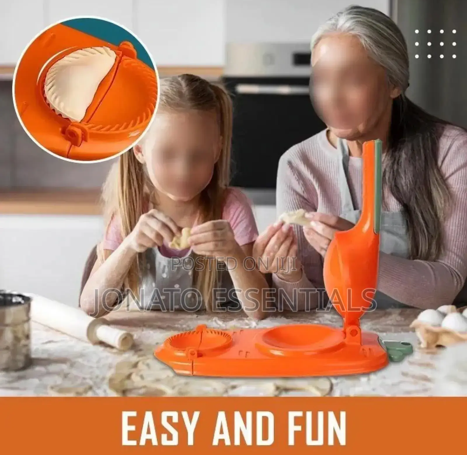 put the dough on the dumpling machine, pull down the handle and press the dumpling skin. put the dough on the surface, add your favorite filling to the dough, then close the mold and press to seal a perfect package.