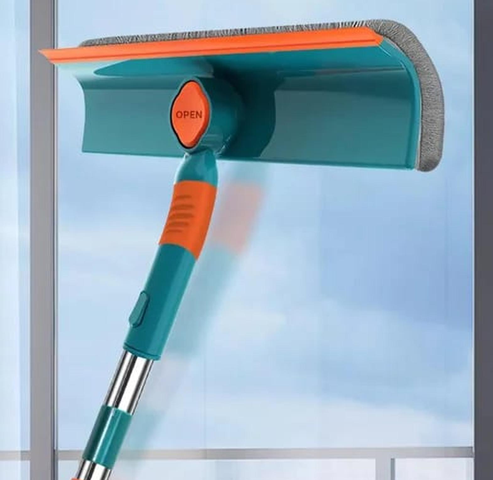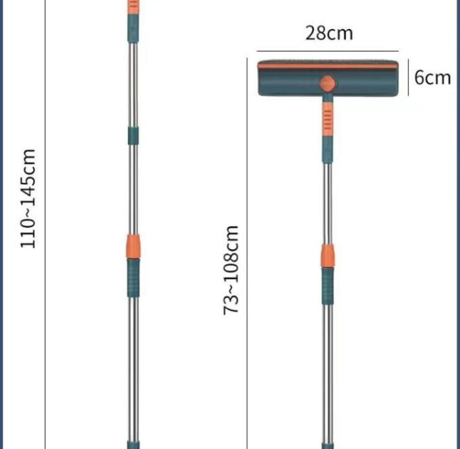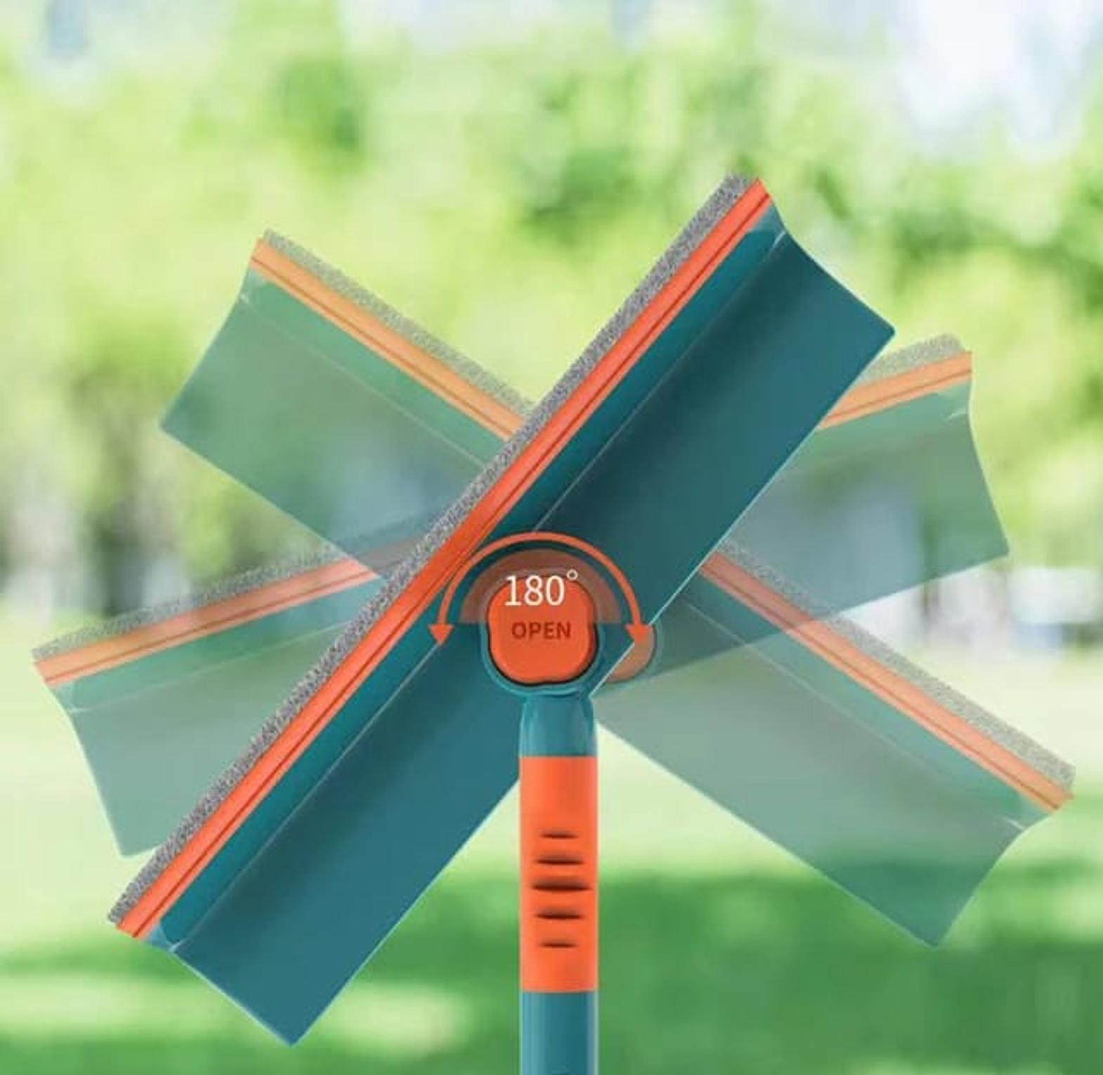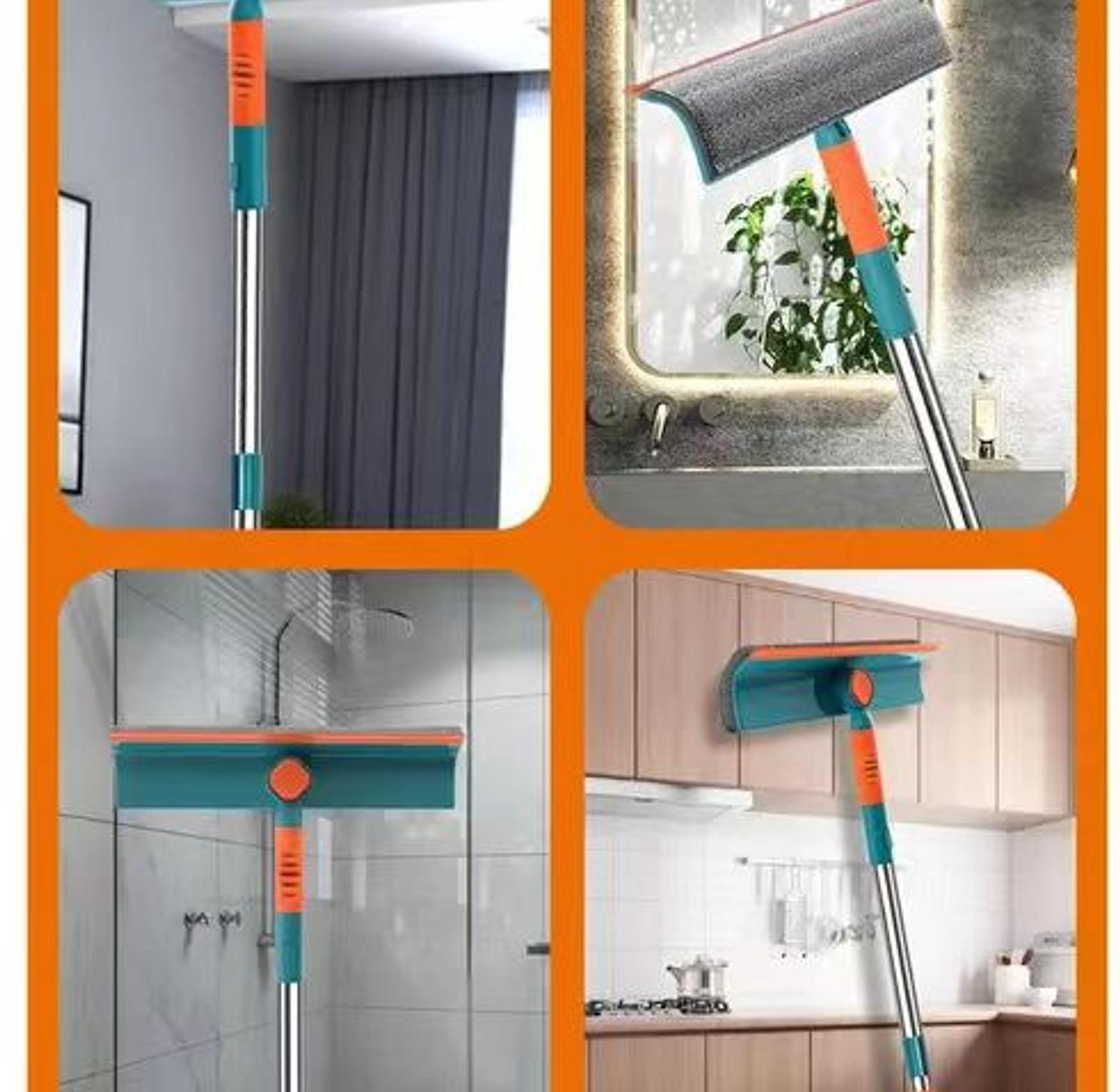 2 in 1 glass window cleaner, cleaning tool 2 in 1 telescopic window cleaner/wall mop natural soft rubber squeegee for gentle, effective cleaning rotatable design for hard to reach areas. ideal for windows, glass doors, vehilcle glass, mirrors, tiles and smooth surfaces. expandable upto 145cm window cleaner with long handle glass cleaning tool with silicone squeegee and microfiber brush, window cleaning kit.