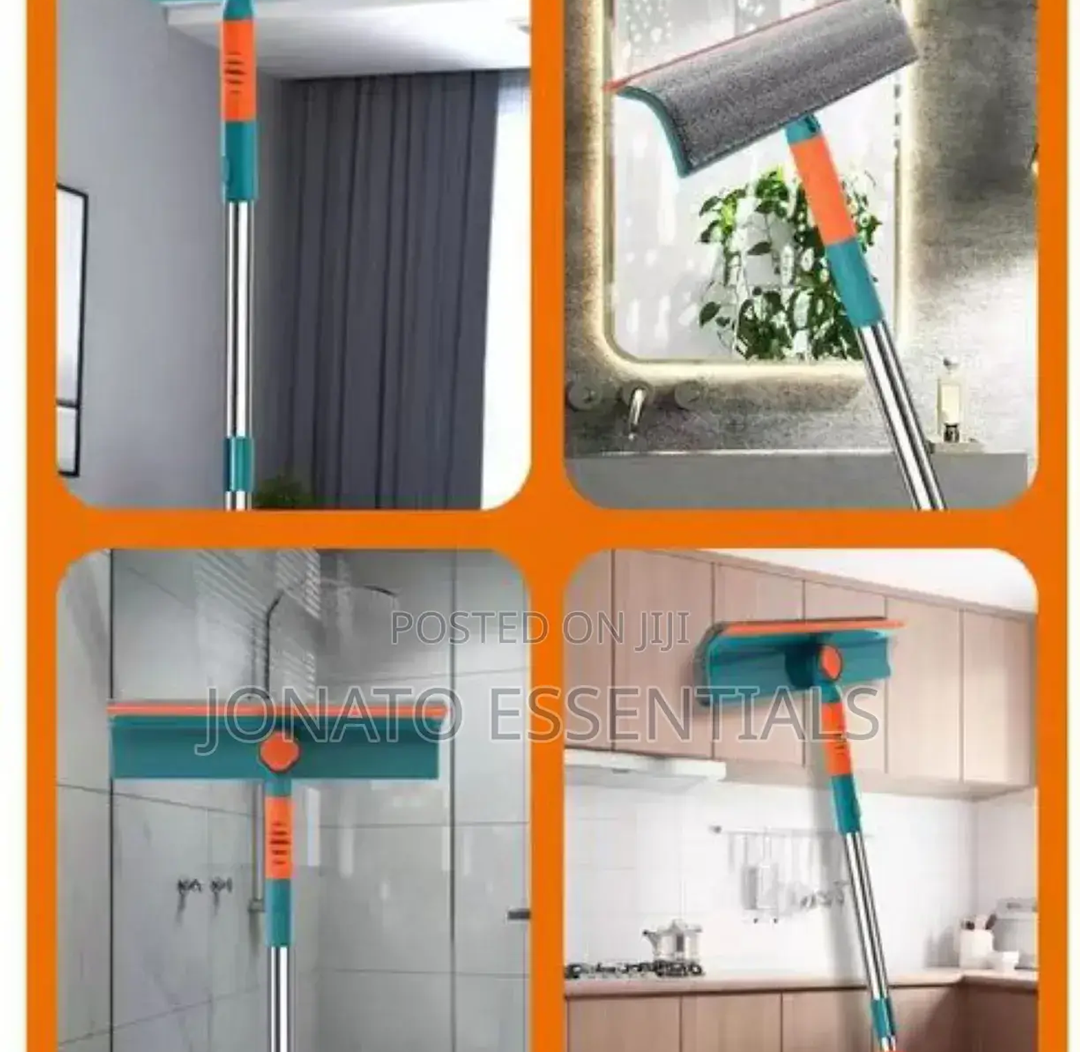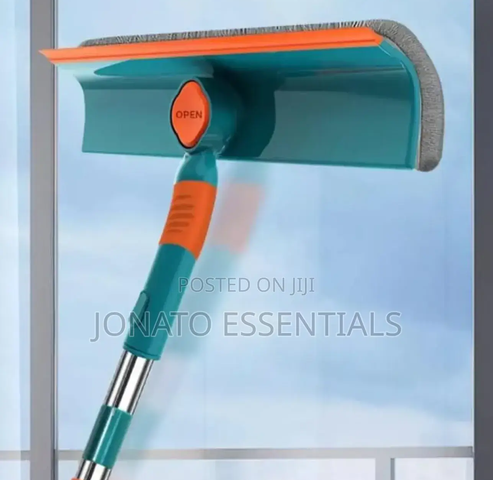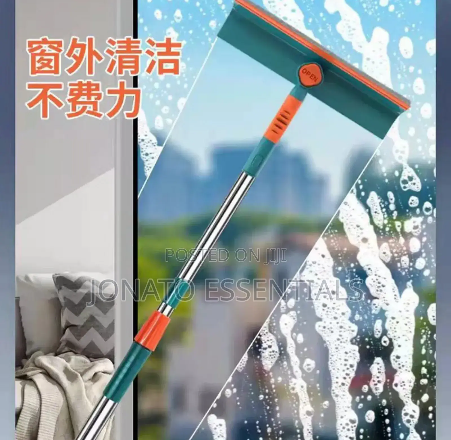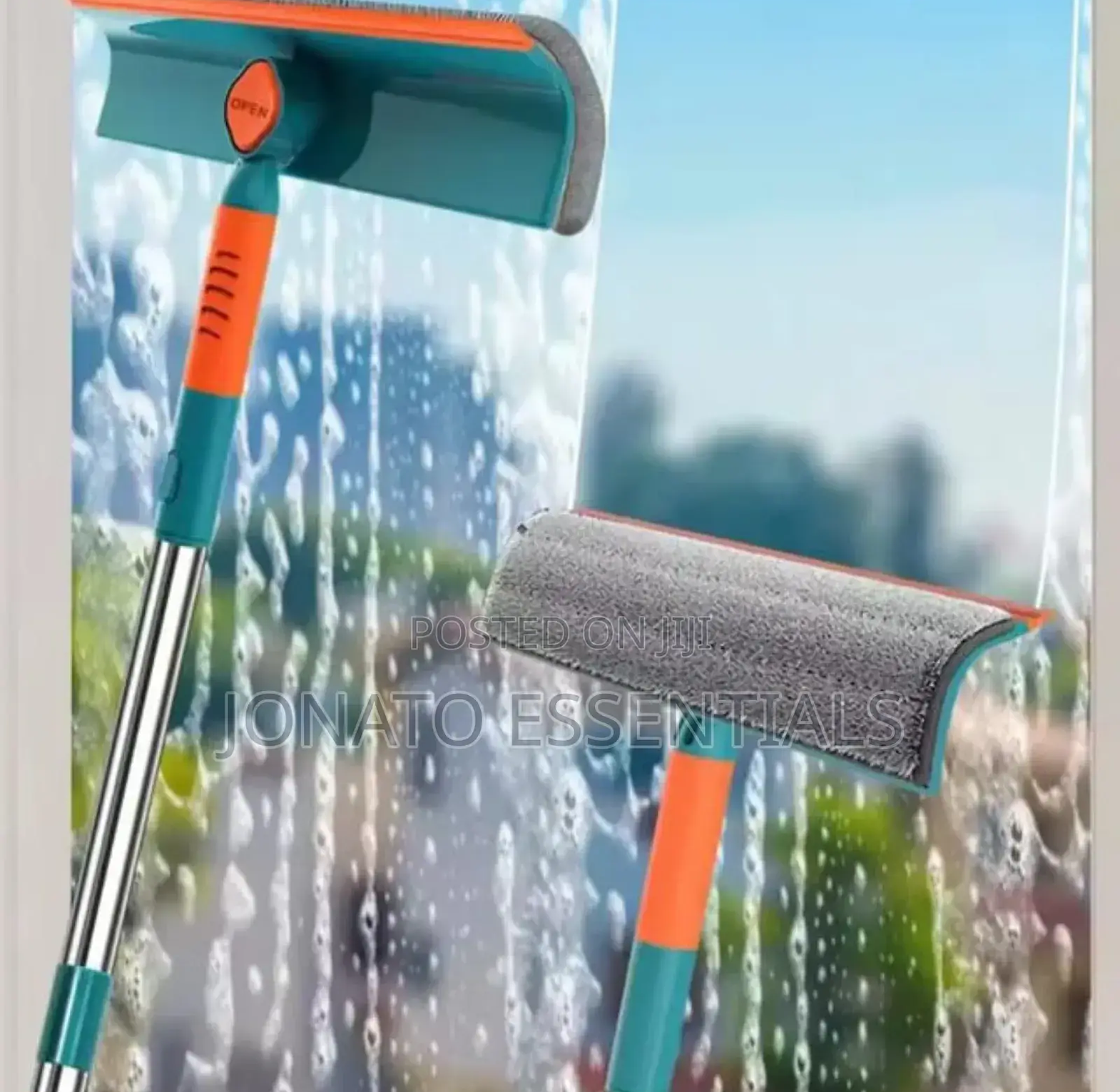2 in 1 glass window cleaner, cleaning tool 2 in 1 telescopic window cleaner/wall mop natural soft rubber squeegee for gentle, effective cleaning rotatable design for hard to reach areas. ideal for windows, glass doors, vehilcle glass, mirrors, tiles and smooth surfaces. expandable upto 145cm window cleaner with long handle glass cleaning tool with silicone squeegee and microfiber brush, window cleaning kit.