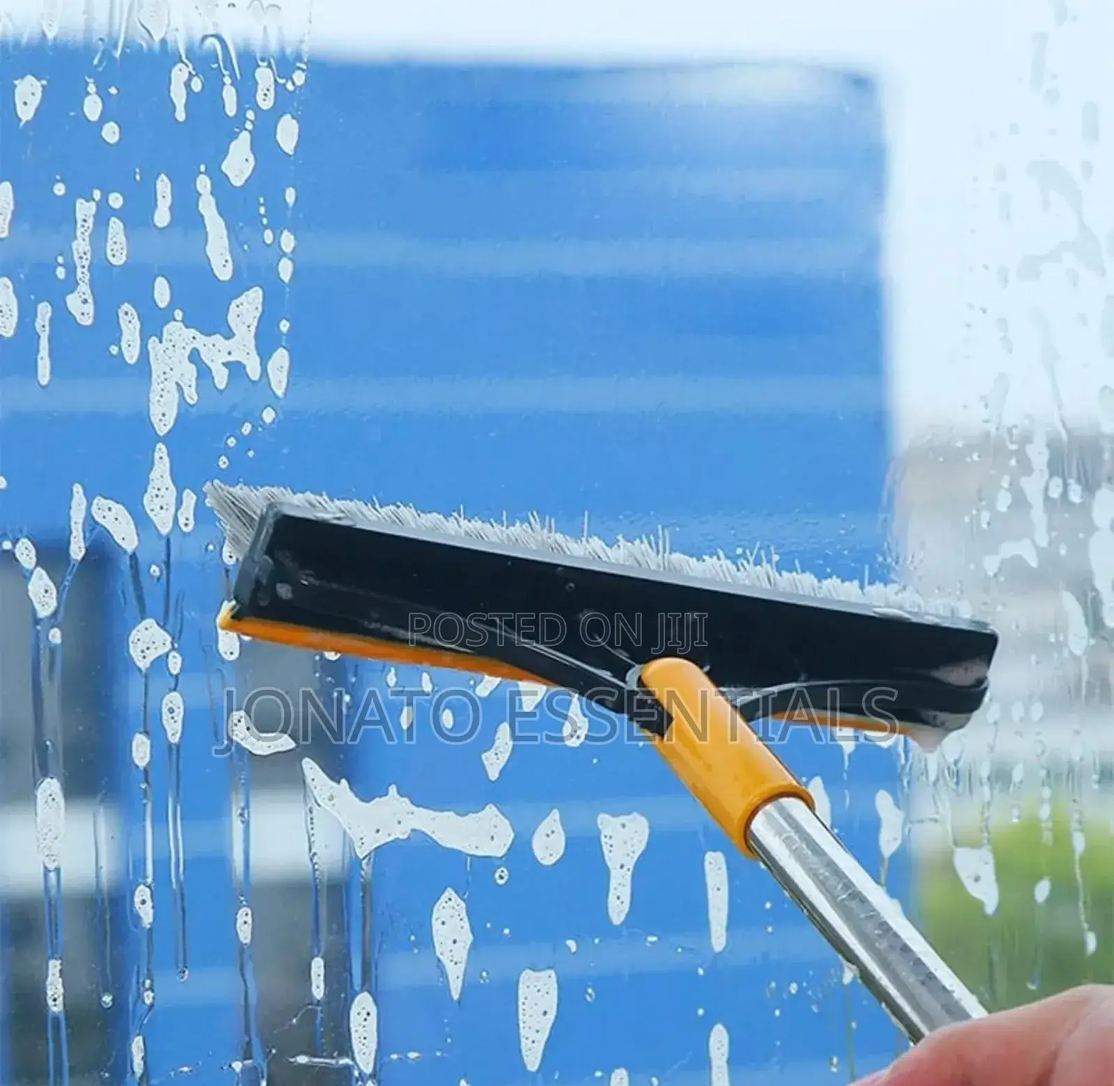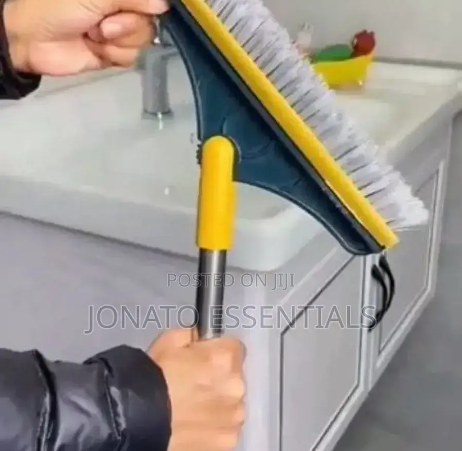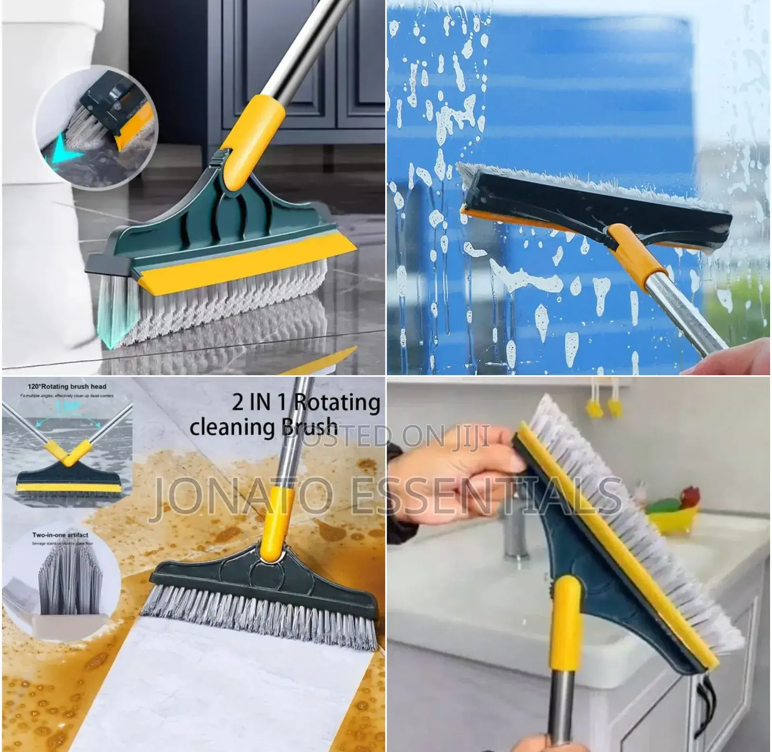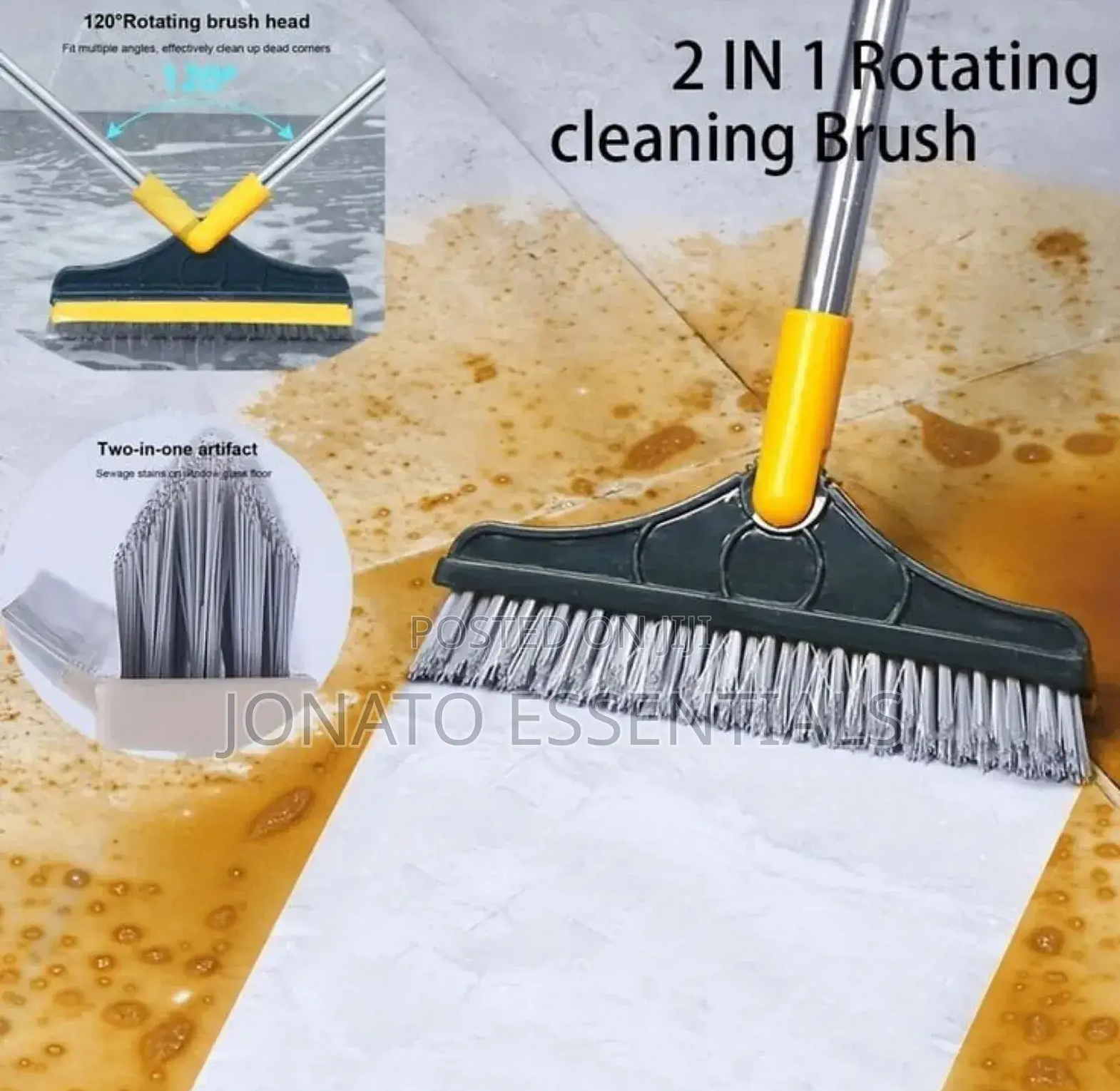rotating floor scrub brush long handle windows squeegee stiff bristle broom mop 2in1 for bathroom kitchen floor crevice cleaning.
