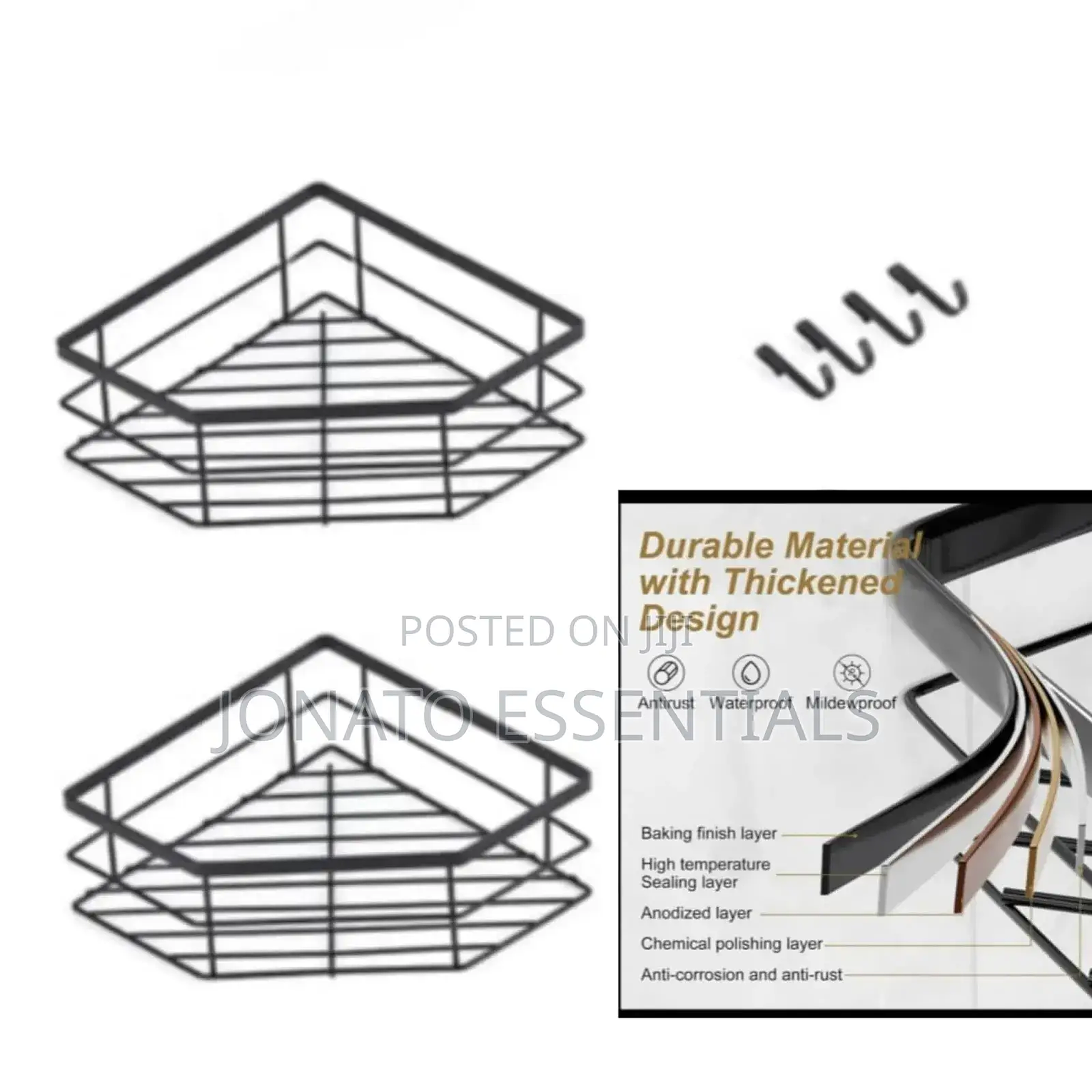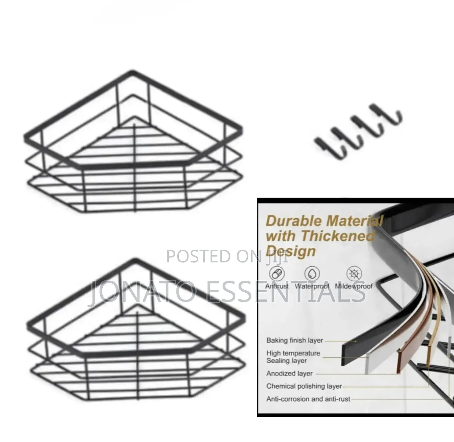 2 pcs bathroom shelf with strong hooks it is wall mounted with adhesive stickers no drilling. simple and elegant design, efficiently creates space and enrichment your home. hollow-out design, convenient for drain water, both great for kitchen and bathroom. the storage rack is perfect hanging on kitchen to storage your kitchen stuffs. also a great bathroom organizer for storage shampoo, shower gel, etc. bathroom shelf wall mounted corner storage shelves shampoo holder cosmetic rack iron shower drain basket bathroom organizer.