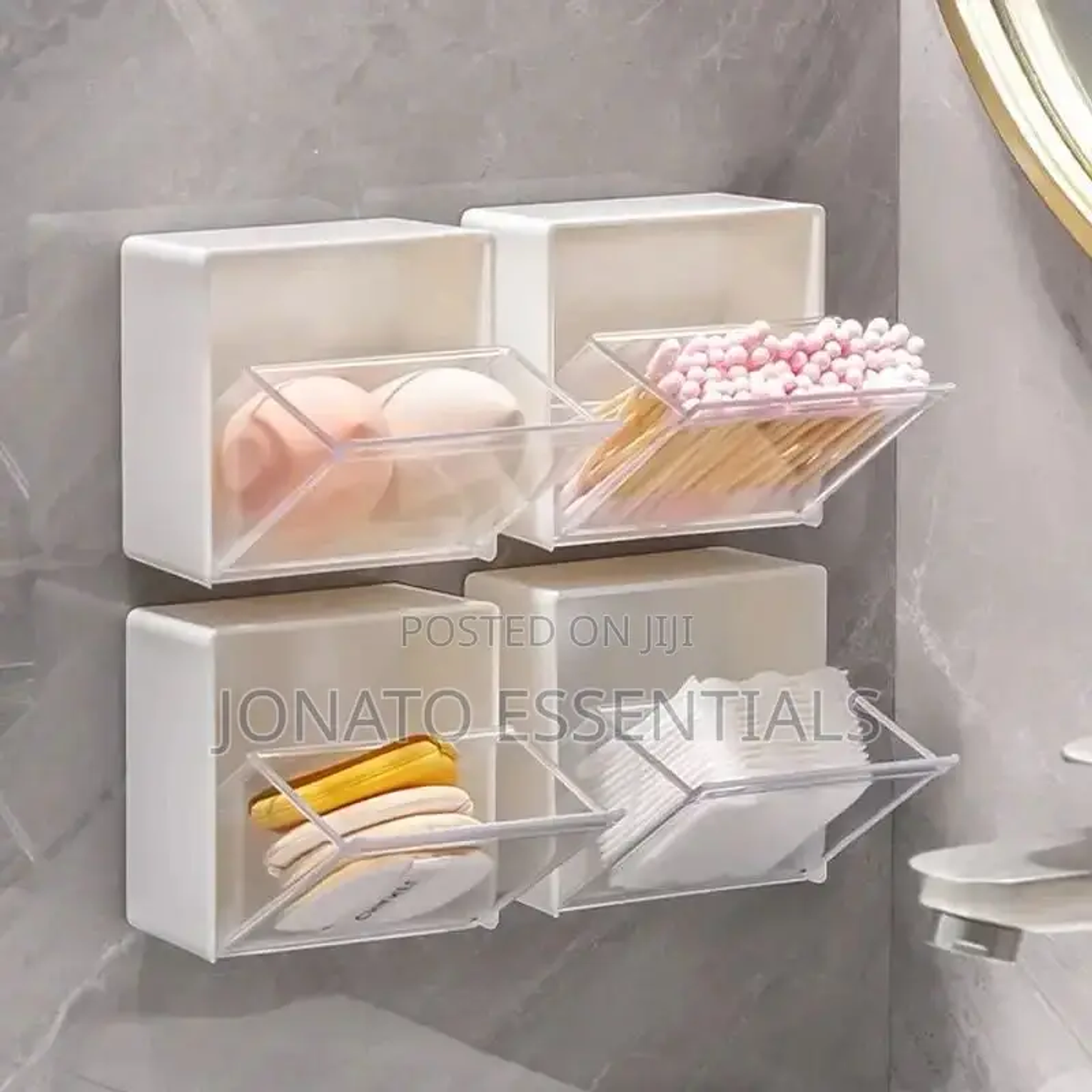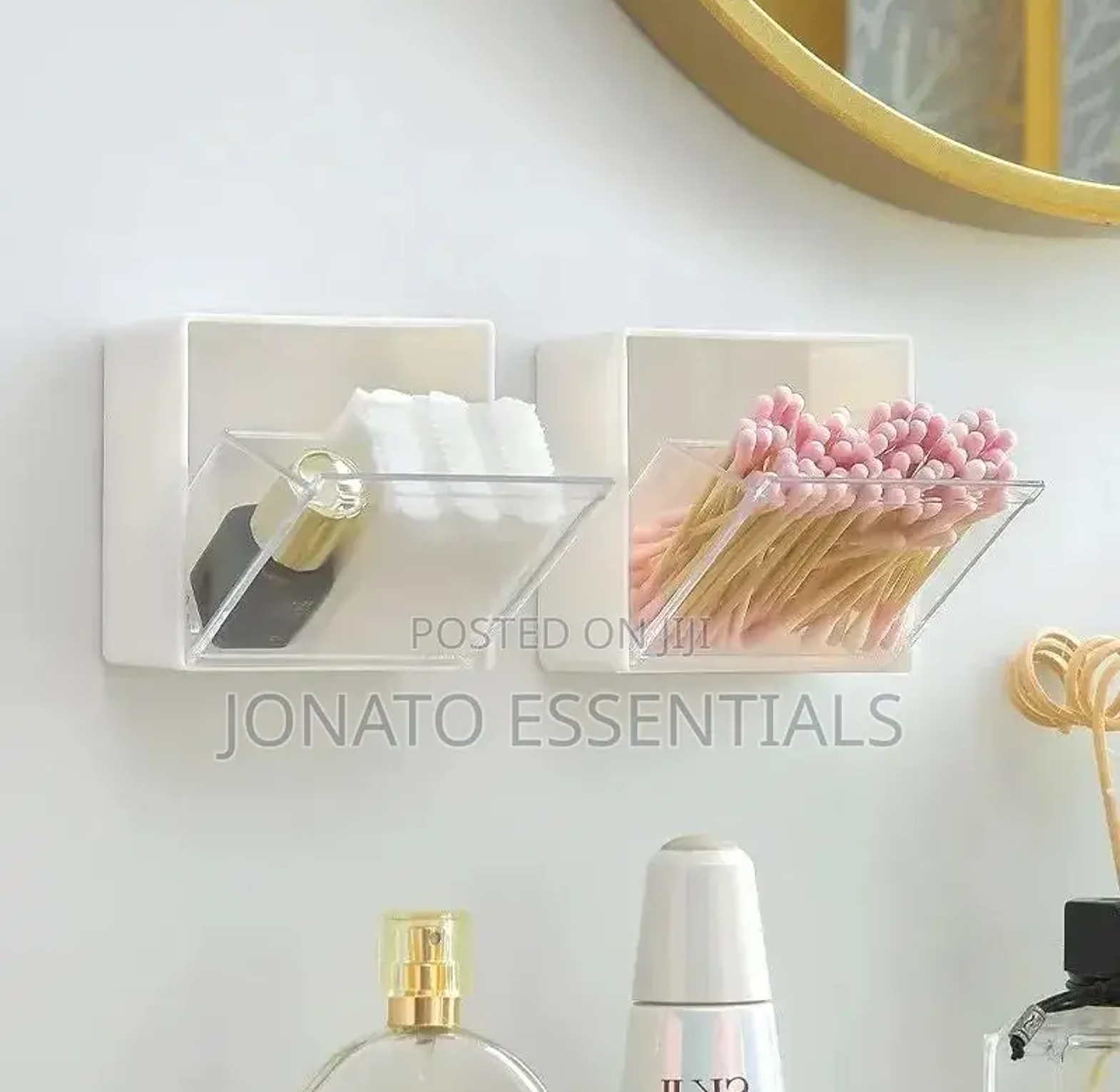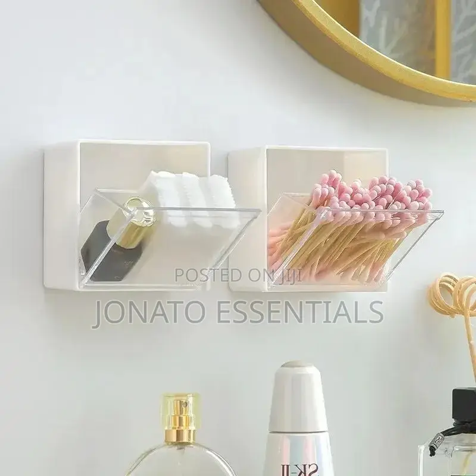 Wall-mounted flip-top storage box 2pcs set plastic wall mounted storage box non-marking strong adhesive, firmly attached to the wall, will not fall off for a long time easy to open and close, transparent design makes it easy to find items. 2pcs set plastic wall mounted storage box dustproof bathroom organizer for cotton swabs cosmetic jewelry self-adhesive holder boxes