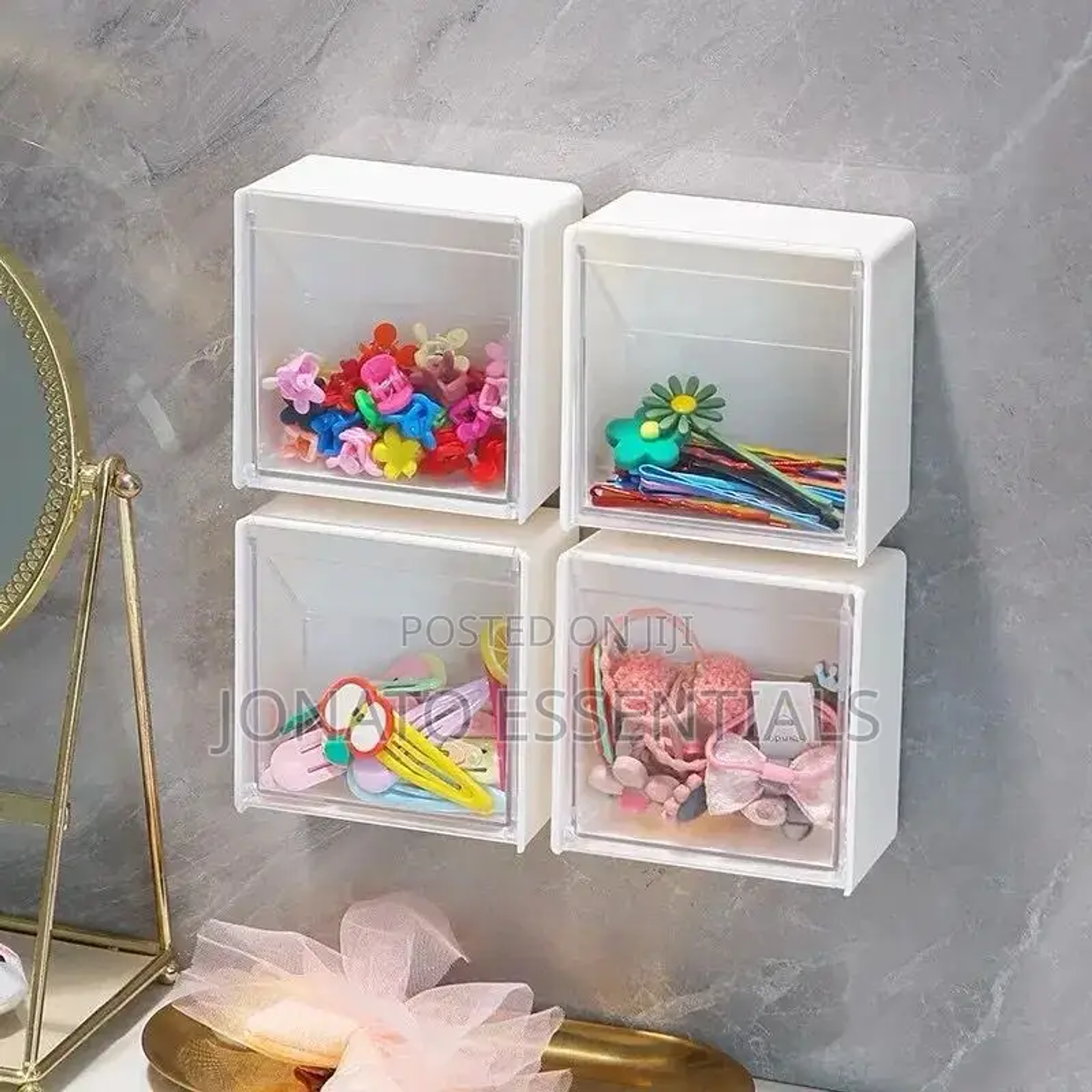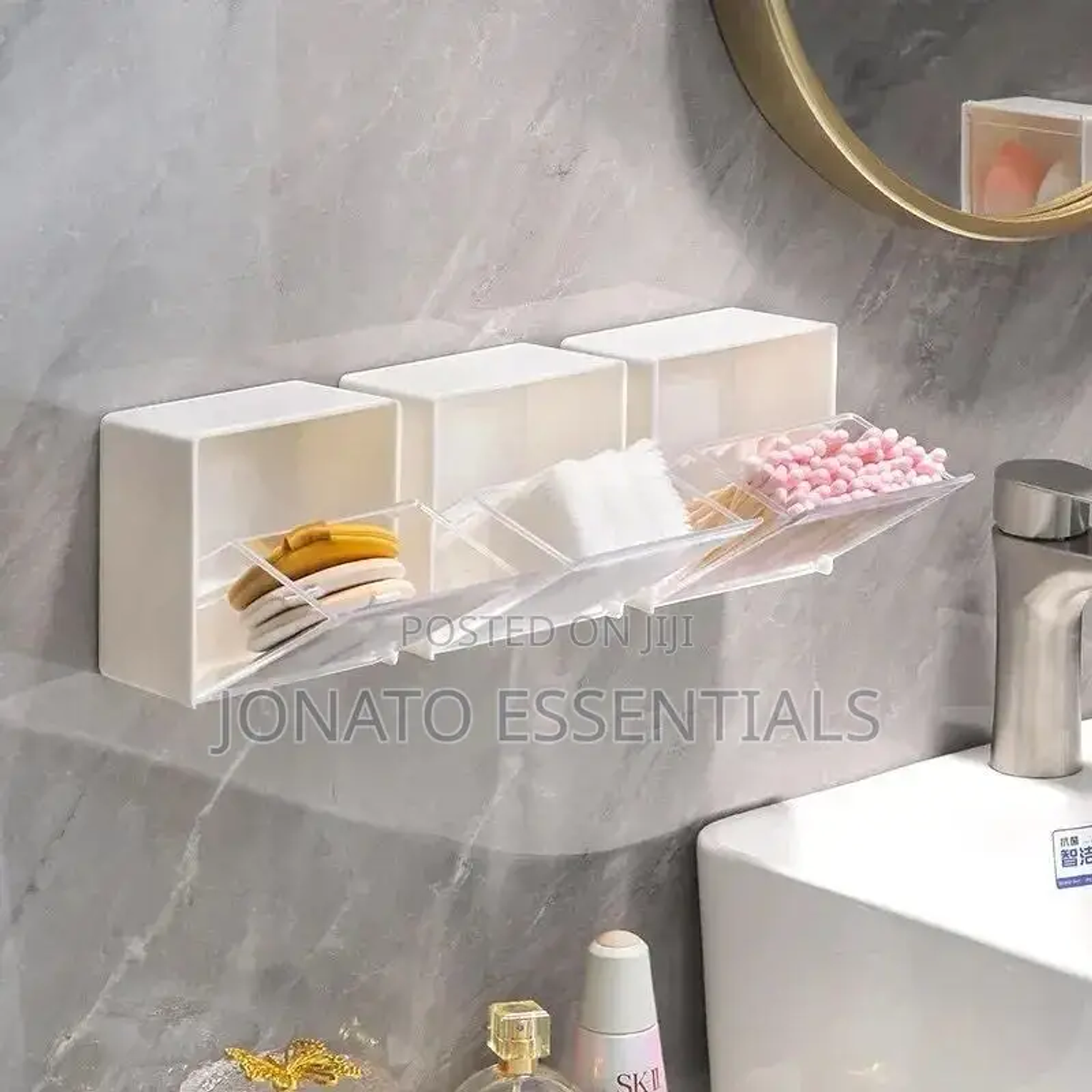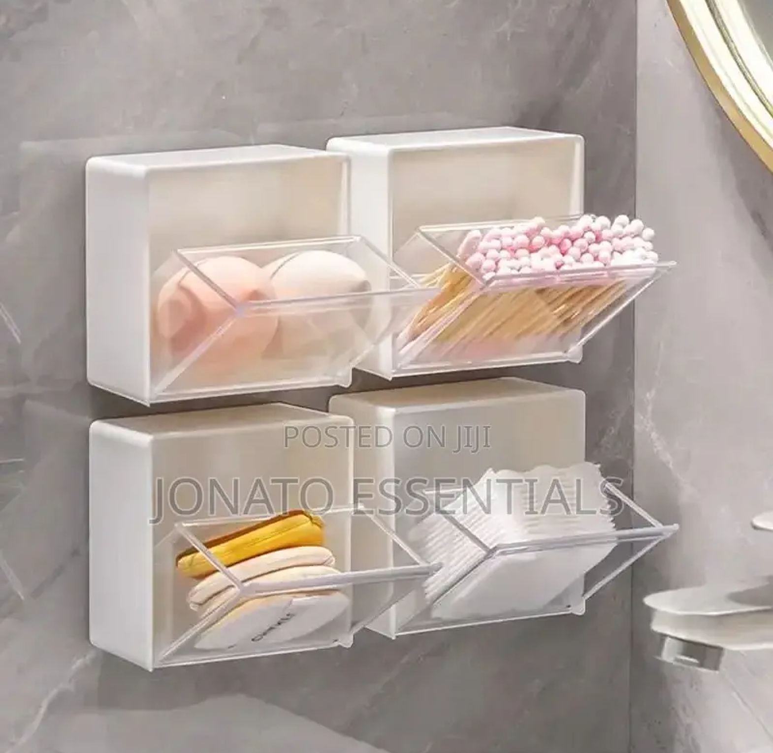 Wall-mounted flip-top storage box 2pcs set plastic wall mounted storage box non-marking strong adhesive, firmly attached to the wall, will not fall off for a long time easy to open and close, transparent design makes it easy to find items. 2pcs set plastic wall mounted storage box dustproof bathroom organizer for cotton swabs cosmetic jewelry self-adhesive holder boxes