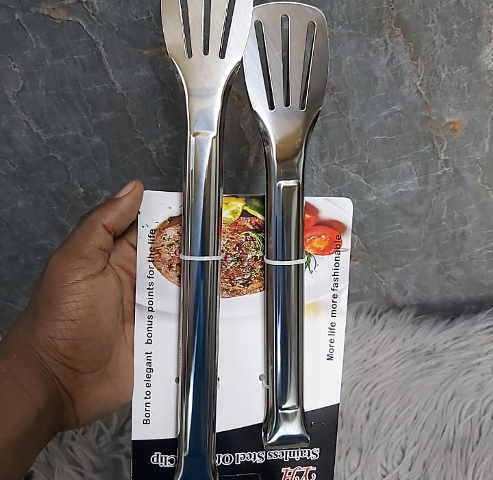 2pcs tongs set with metallic handle big size: 28.5*4.5 cm small size: 24*4.5 cm used in barbeque or bread baking. perfect for home cooks, professional chefs, and bbq enthusiasts, these kitchen tongs are an essential addition to your cooking tools. whether you're flipping burgers, tossing pasta, or plating appetizers, these tongs deliver efficiency and style. stainless steel tongs, kitchen tongs, grilling tools, heat-resistant utensils, bbq tongs, cooking tools, non-slip tongs, food serving tongs