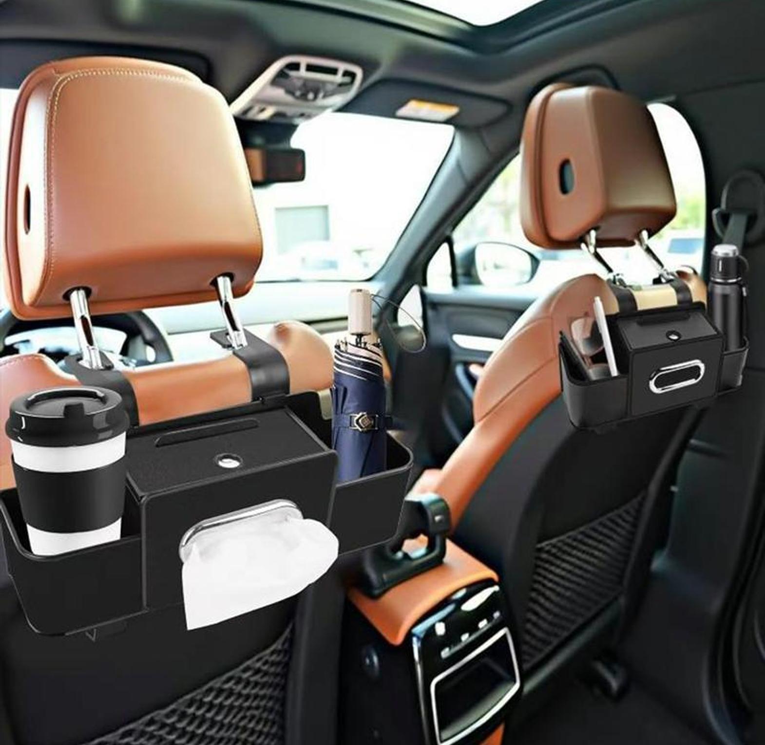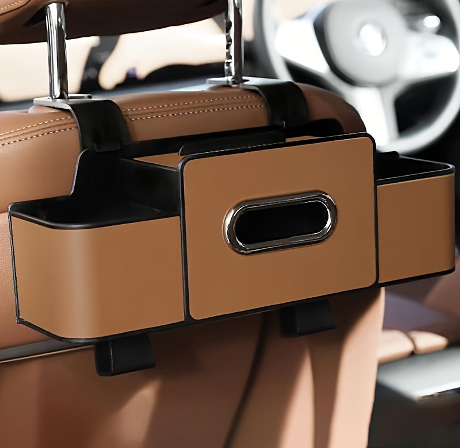 3-in-1 Premium Leather Car Seat Back Storage Box & Tissue Holder Organizer - Universal Fit