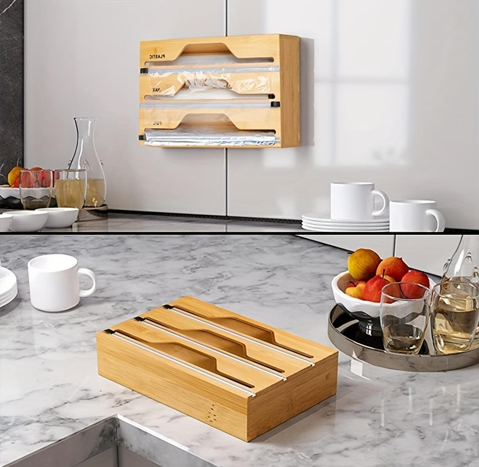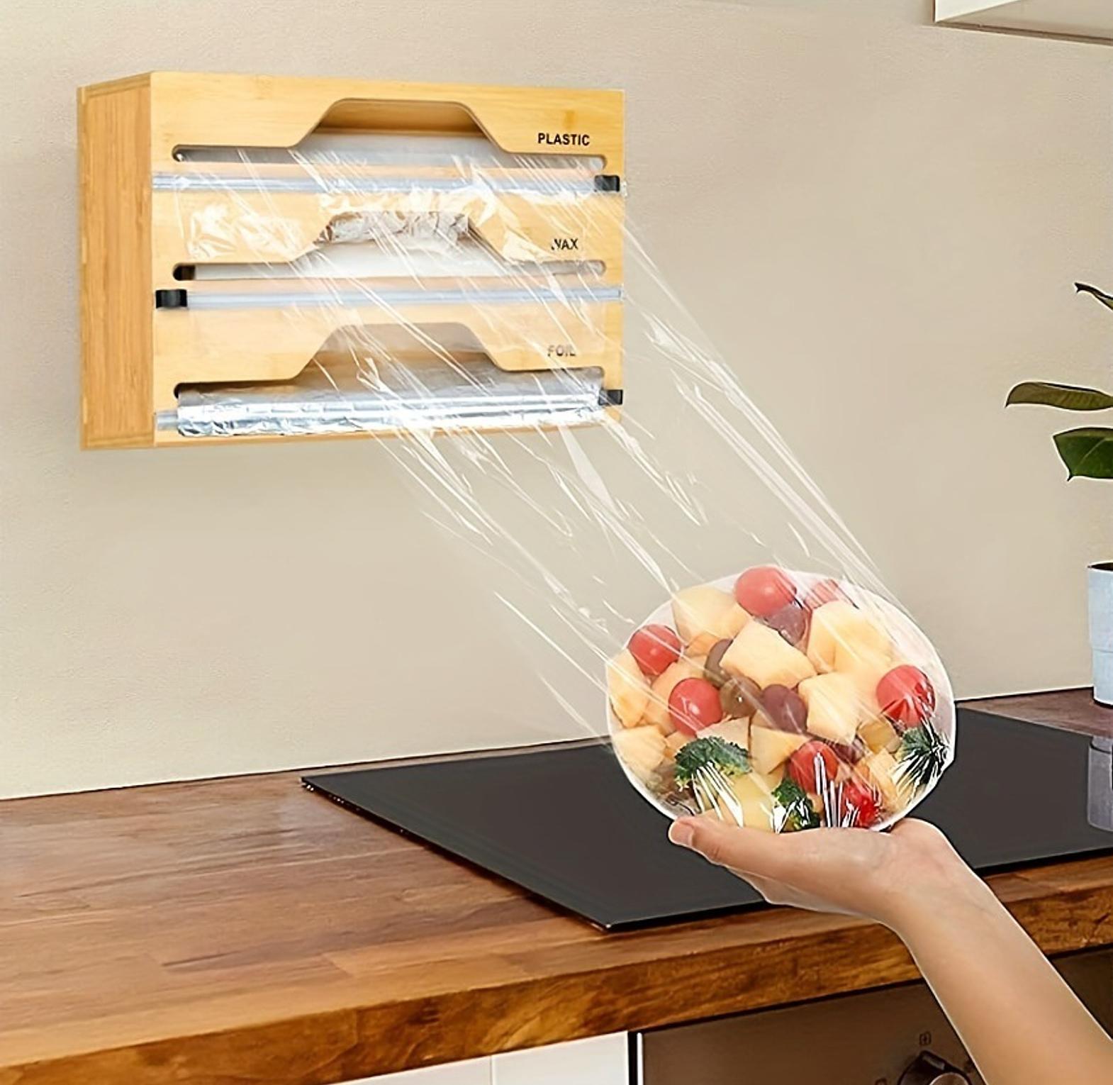 3 layers aluminum foil wrap dispenser can be used to hold or organize film or foil wrap. wood storage box for kitchen drawer easy to cut durable wrap dispenser wooden.