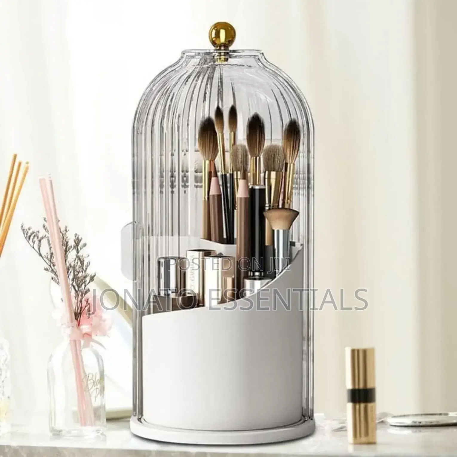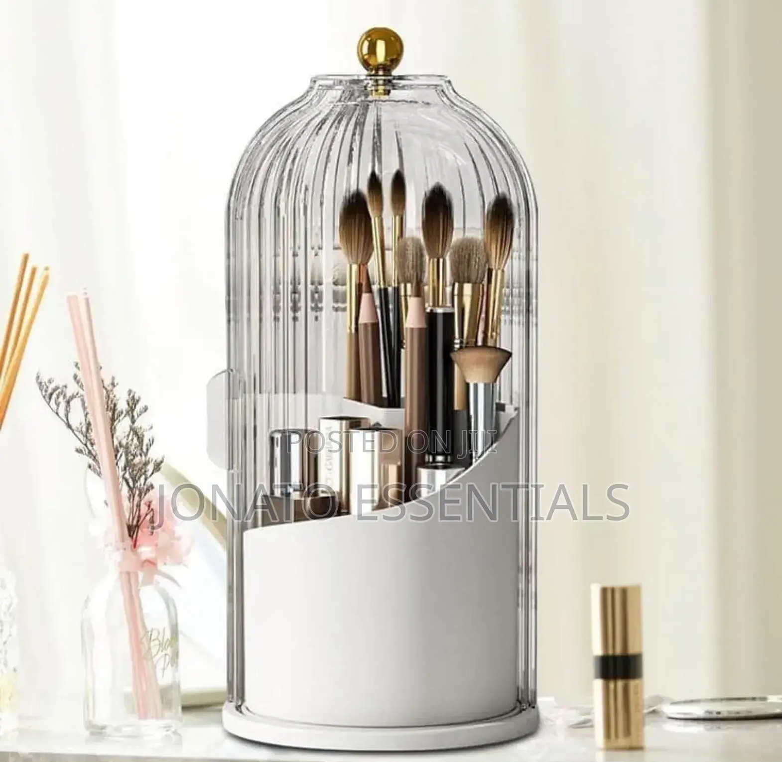 360° rotary makeup brush holder with cover luxury cosmetics lipstick eyebrow pencil holder eye shadow storage box.