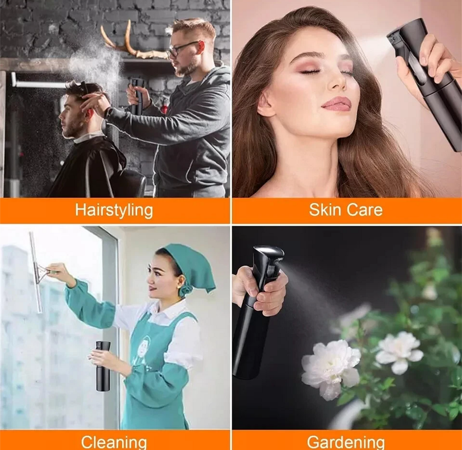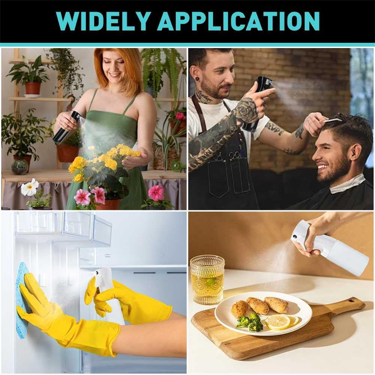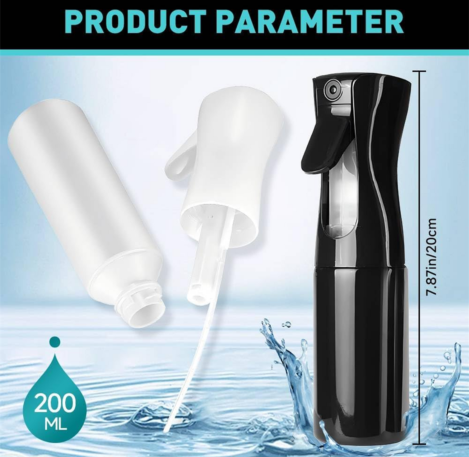 300ml fine mist continuous hair spray bottle perfect for use on human hair. refillable design :as a refillable bottle, it offers convenience and sustainability. you can reuse it again and again, reducing waste and saving money in the long run. semi-automatic feature :the semi-automatic feature of this bottle allows for easy, hands-free operation. simply press the button to activate the continuous fog, making your task simpler and more efficient. gardening disinfection spray bottle beauty hairdressing continuous spray fog bottle semi-automatic continuous fog.