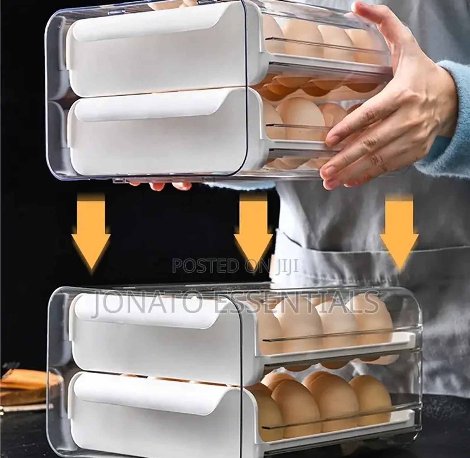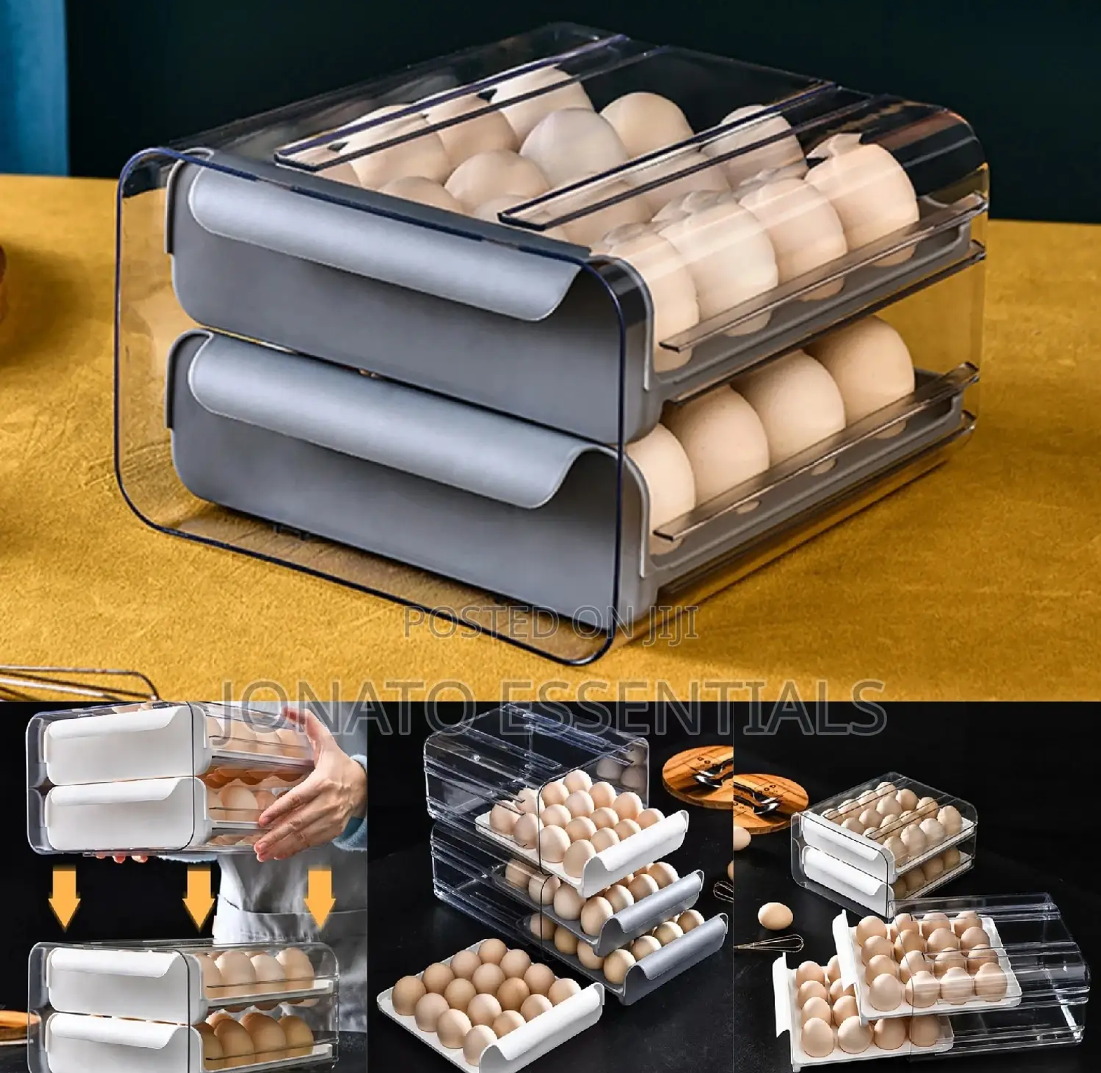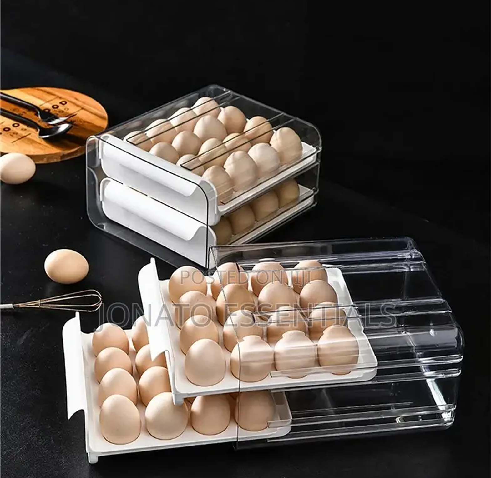 32pcs egg drawer tray, fridge organizer, egg storage box. material :acrylic can hold 32 eggs. egg storage container, double layer egg tray/box.