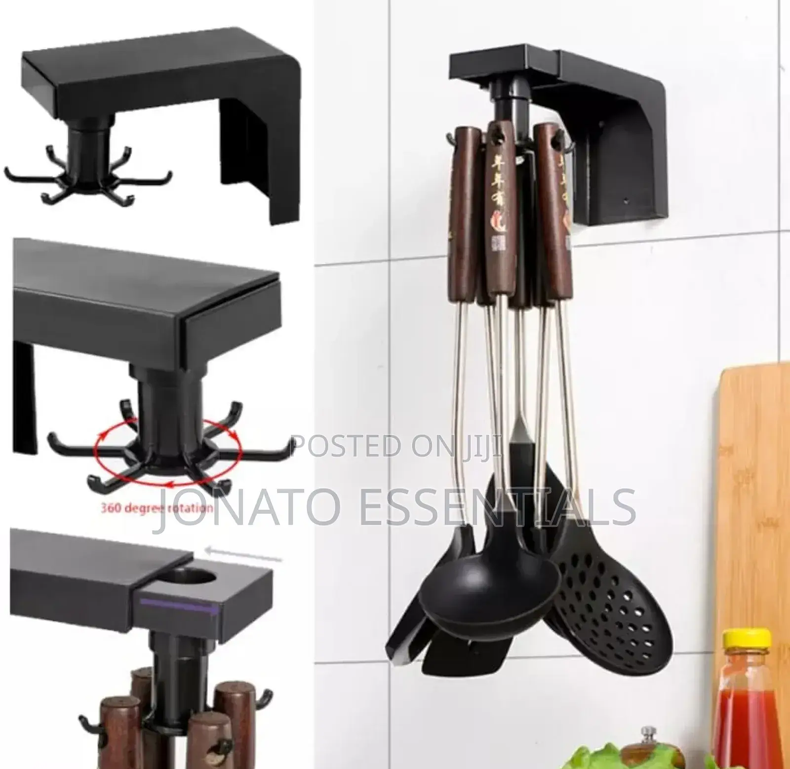 transform your kitchen with this clever rotating utensil hanger. it is the perfect space-saving solution for your spoons, ladles, and spatulas, making them easy to access. the strong, adhesive design sticks firmly to your wall, cabinet, or counter, no drilling needed. this sleek, modern organizer declutters your cooking area and keeps everything within reach. ideal for any kenyan home seeking a neater, more efficient kitchen.
