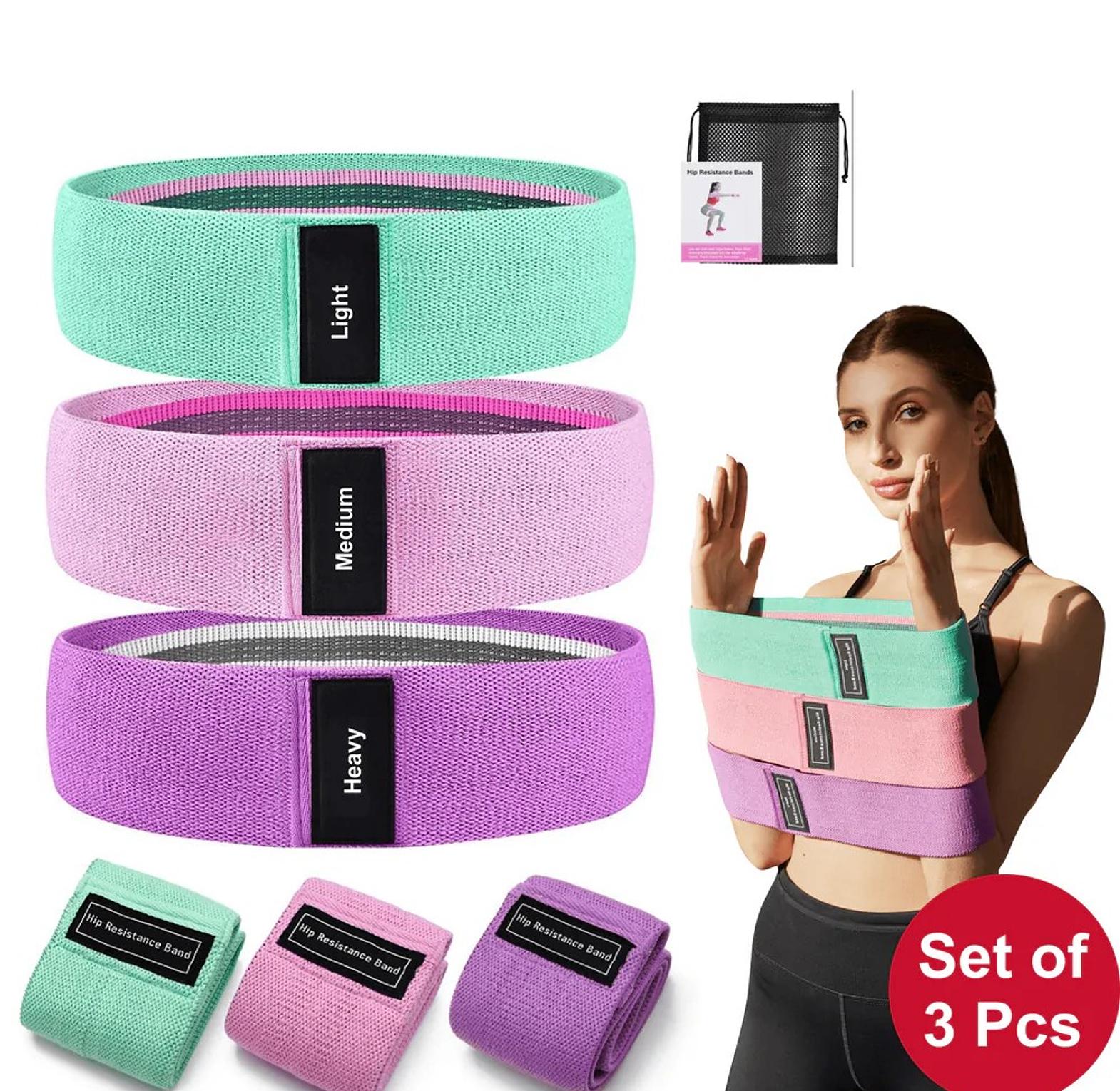 3pc resistance bands, exercise elastic bands set of 3 resistance bands for legs and butt. exercise bands set.booty bands, hip bands ,wide workout bands (pink, teal, purple) perfect for all workout program. each band with a different resistance level elastic bands elastic sports resistance bands workout exercise loop home outdoor gym fitness equipment training stretch bands