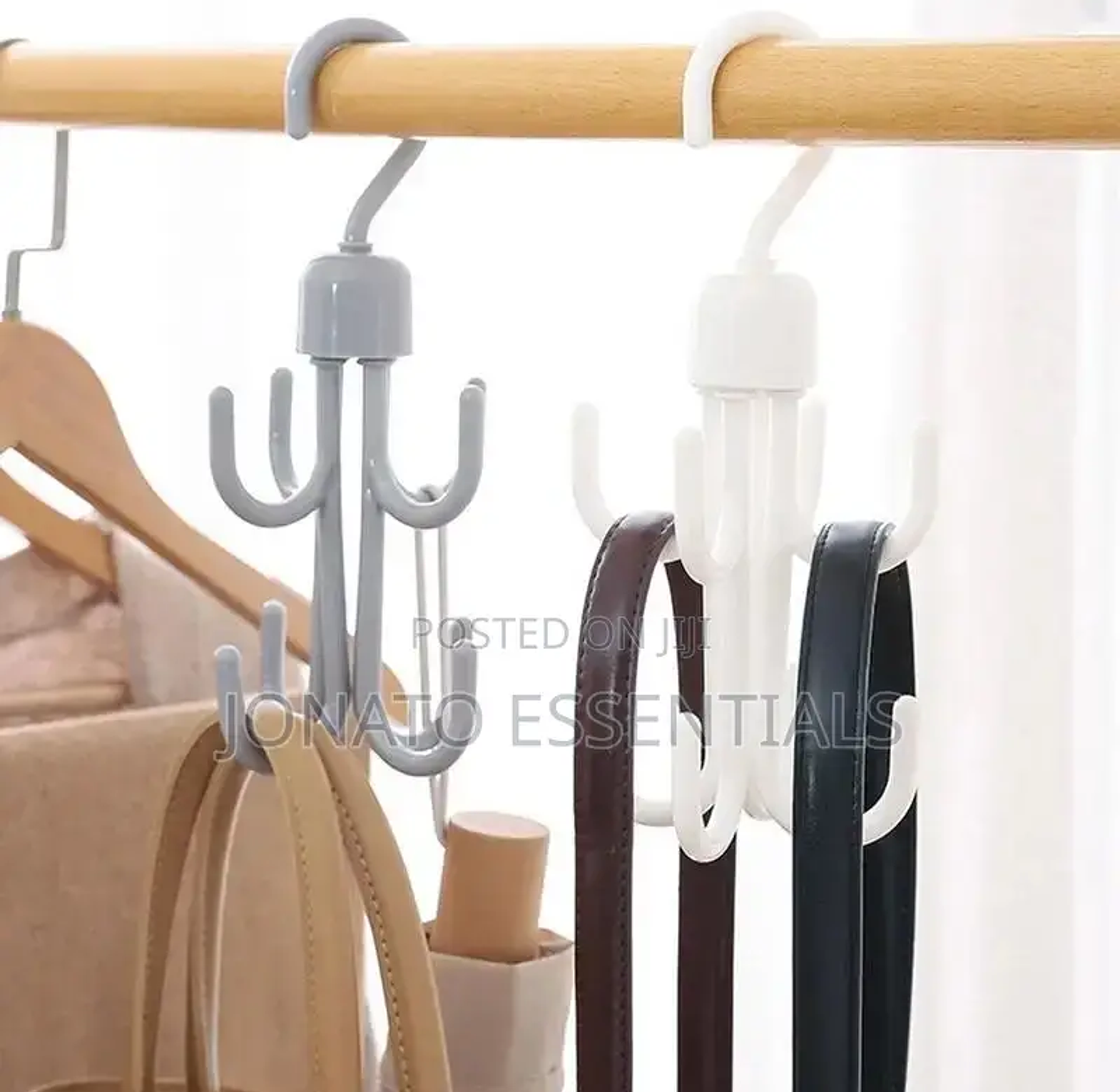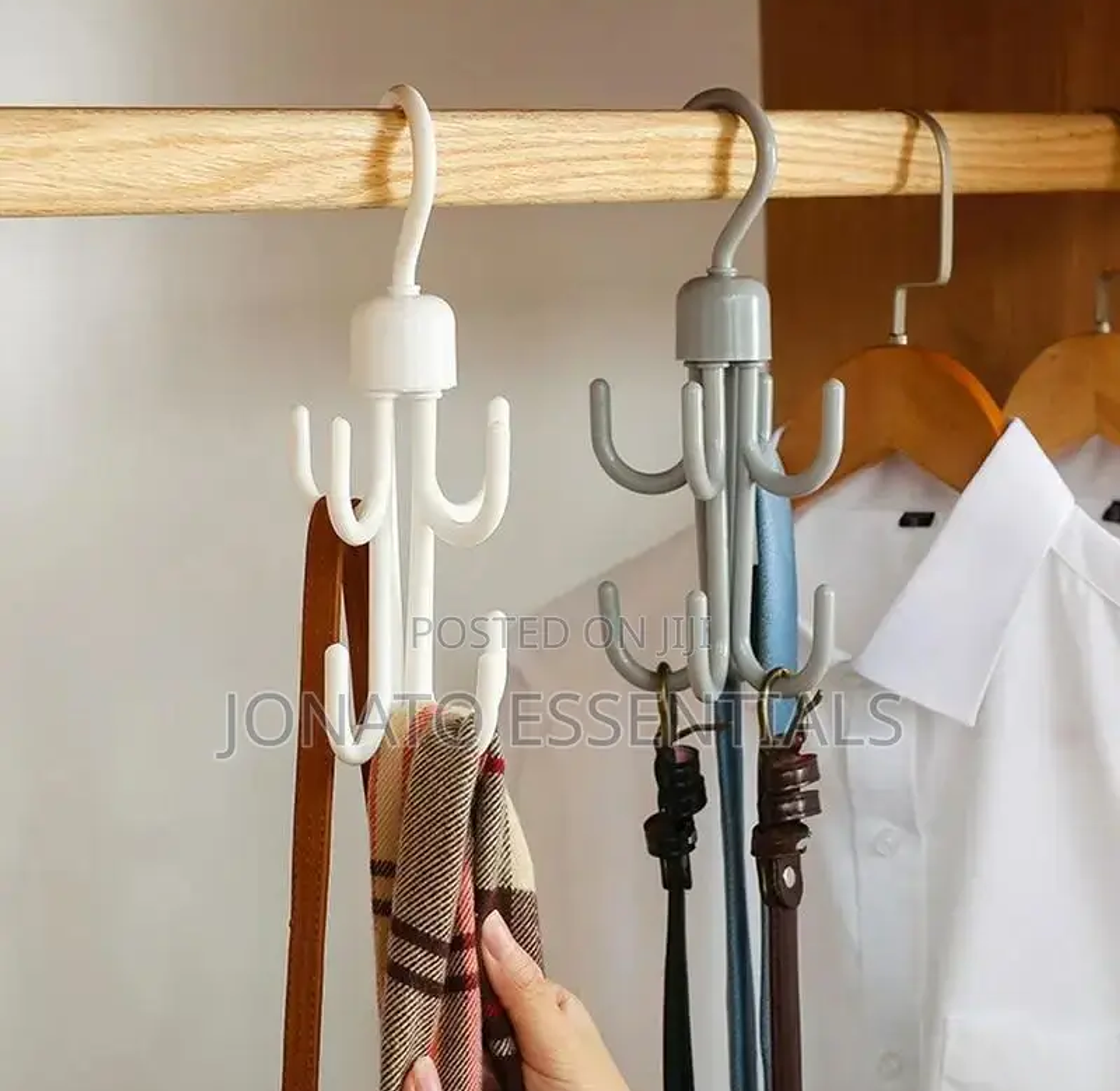 4 claws rotating tie and belt hanger u shaped hanger extensive usage: this belt hanger for closet can store not only belts, but also scarves, jewelry, hats, backpacks, ties and more. it is lightweight and compact, keeping your clothes organized. saving space: this belt hanger for closet has a 4 claws design that can hold belts or other small objects. you can also use it for outdoor drying or indoor storage. 4 claws rotating tie and belt hanger plastic purse hanger closet organizer holder for belts, ties, bag, purse, scarf, clothing