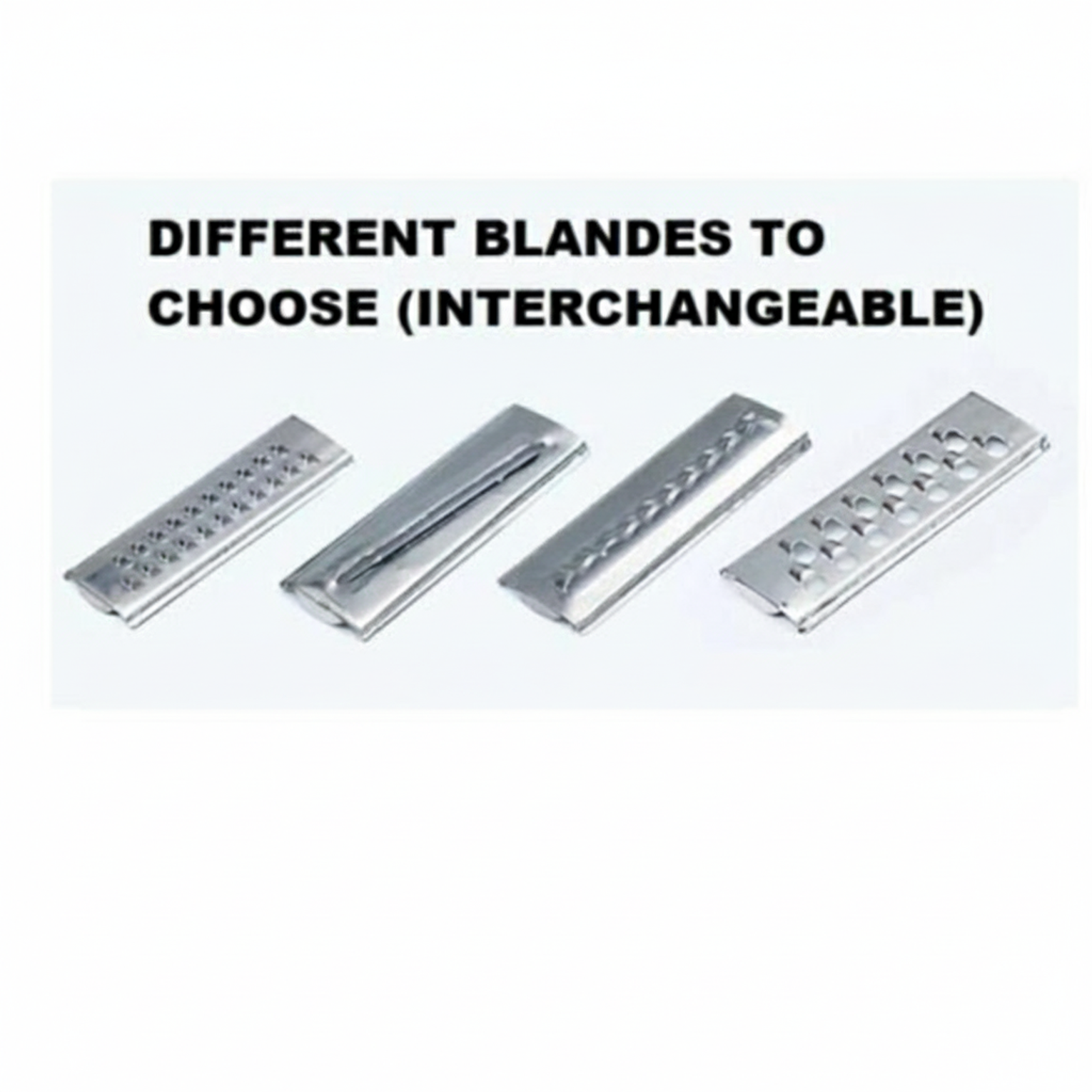 4 in 1 multifunctional fruit vegetable manual slicer grinder suction-base cheese grater for grating cheeses, nuts, breadcrumbs and chocolates and shredding vegetables. suction base grips clean, smooth surfaces securely for effortless operation; drums install and change out easily easy to use; simply insert food into the hopper and turn handle to grate or shred; use the safety pusher to guide food through the grater includes suction-base grater, 5 stainless steel drums easy to clean with warm, soapy water. 4 in 1 multifunctional fruit and vegetable slider manual slicer grinder.