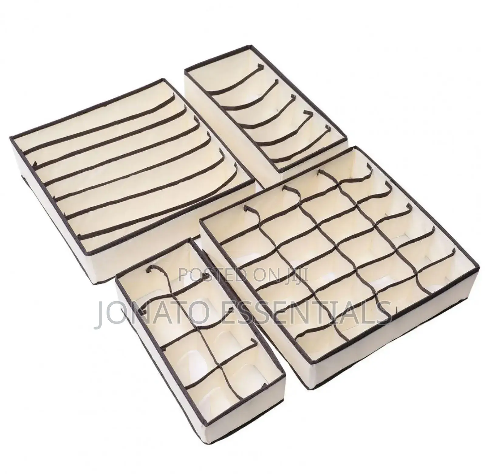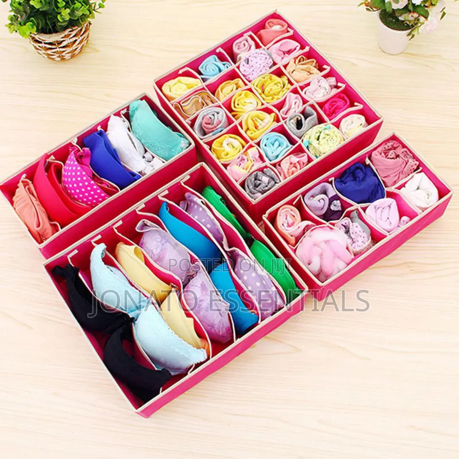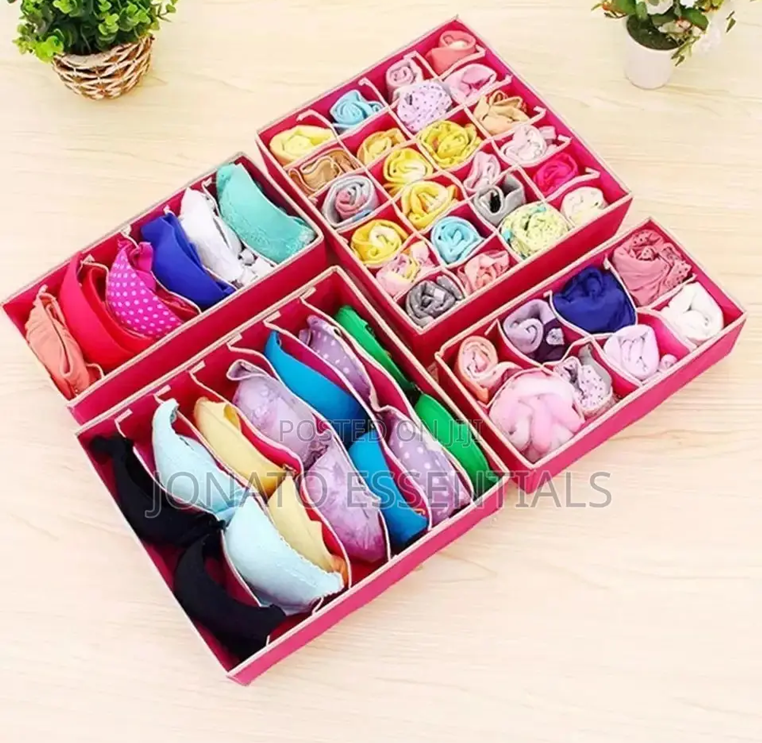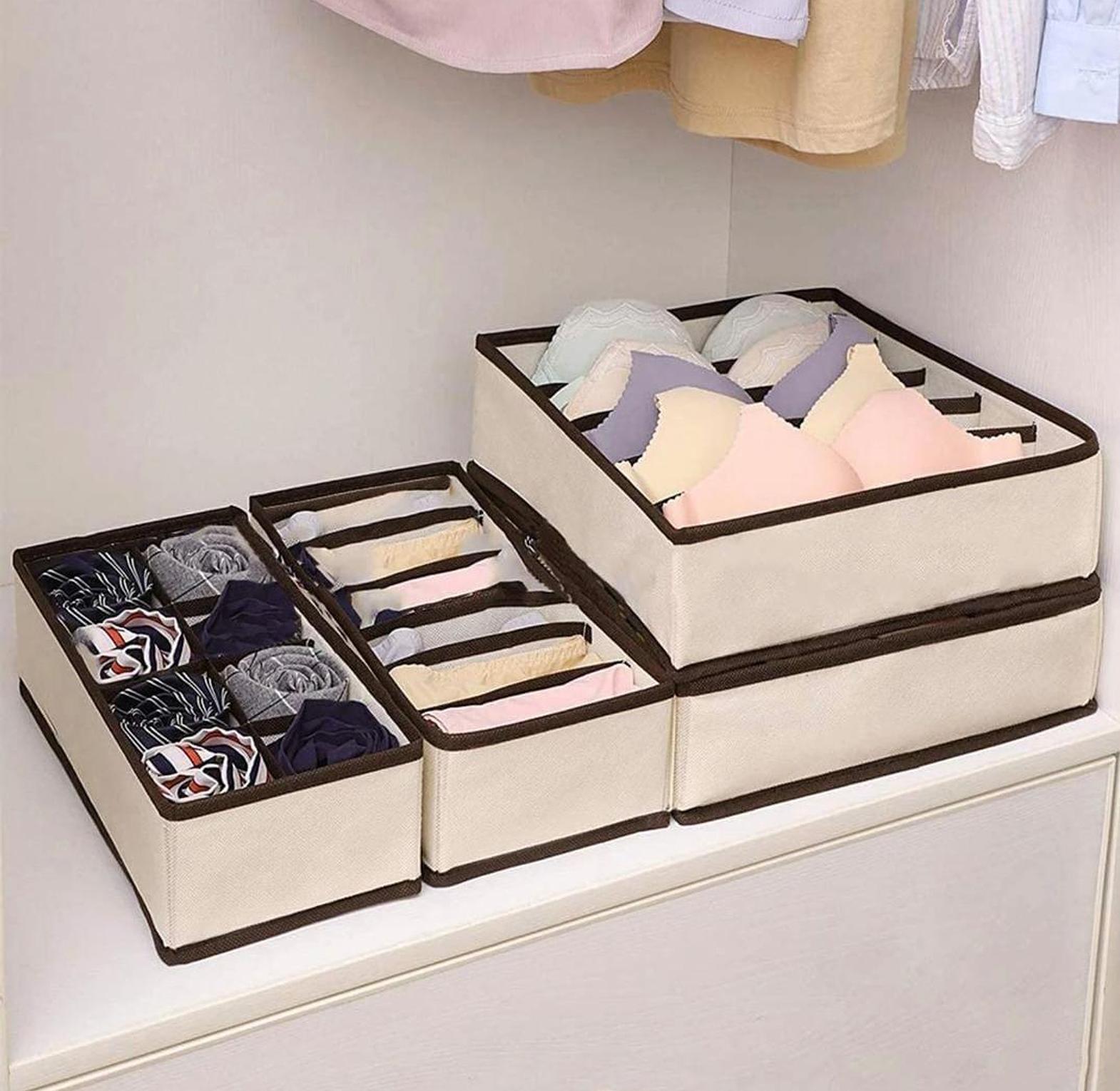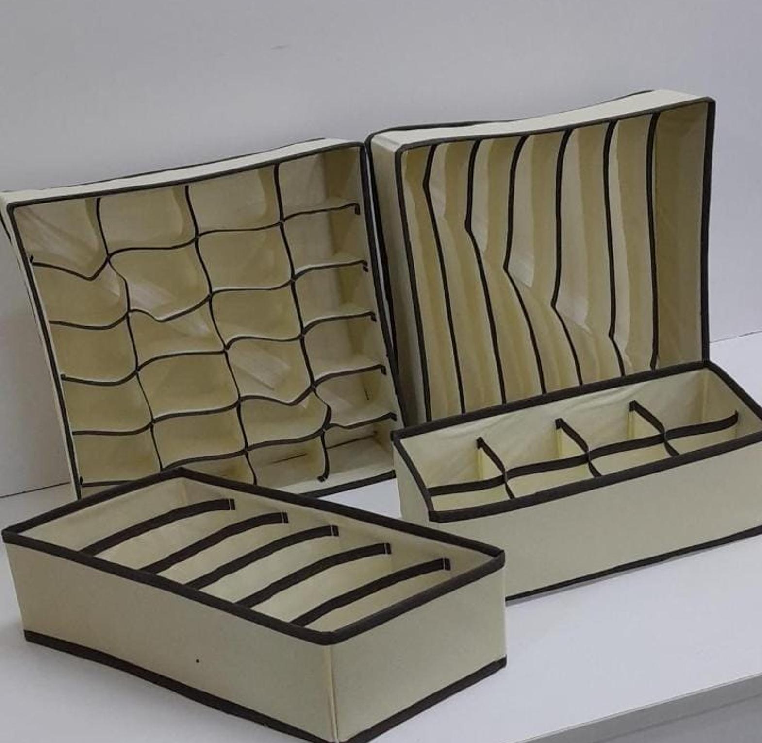 4 in 1 under garments organizer, bras socks ties organizer, underwear organizer collapsible drawer organiser set of 4 for socks, underwear,bra & panties this organizer is used to organize small undergarments like bras, socks, ties, underwear/pants etc undergarments organizer, drawer organizer, bra storage, panty organizer, sock holder, closet organization, wardrobe storage, space-saving storage, travel organizer, multipurpose organizer, fabric organizer, small accessories storage, compact storage solution.