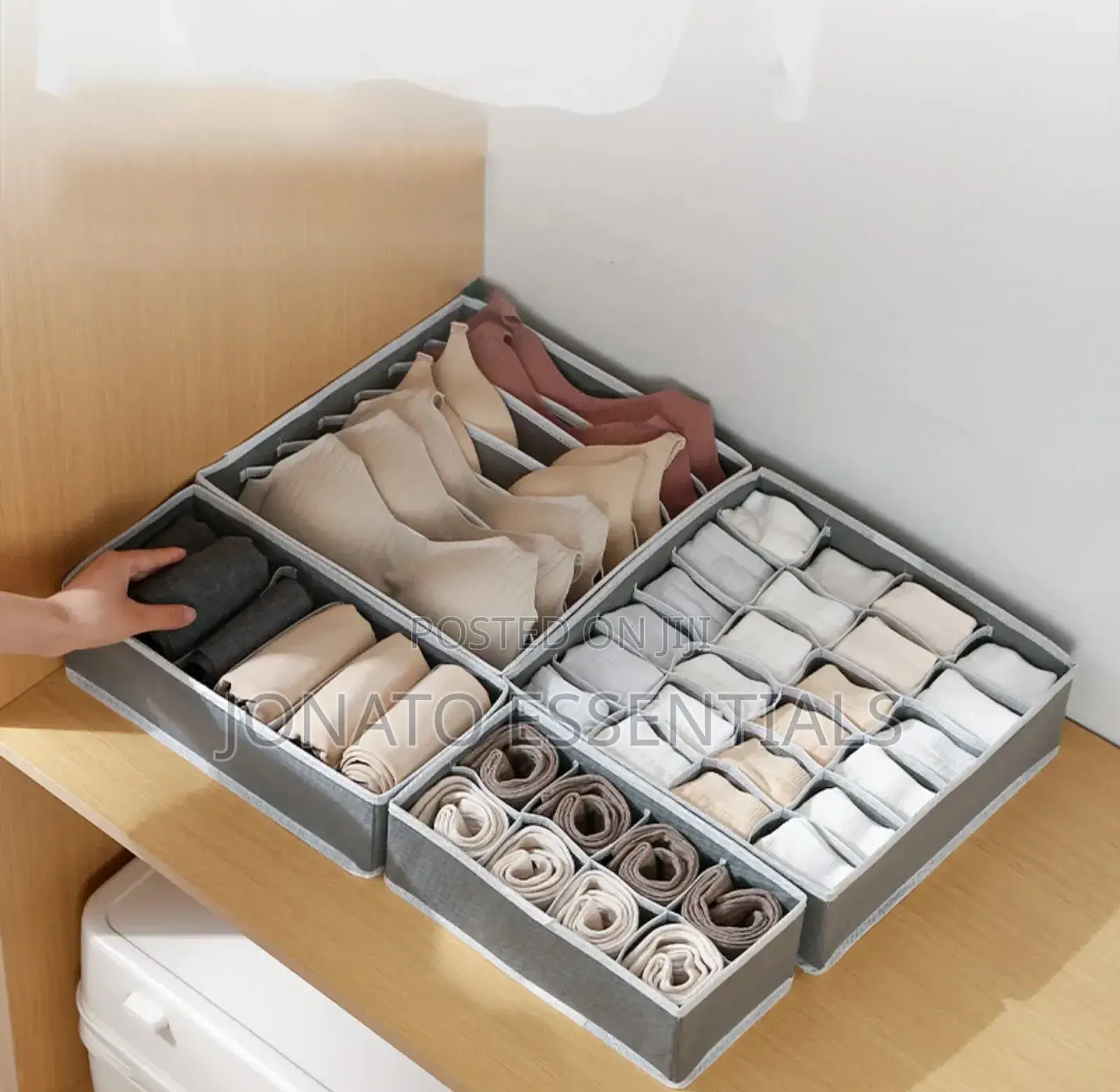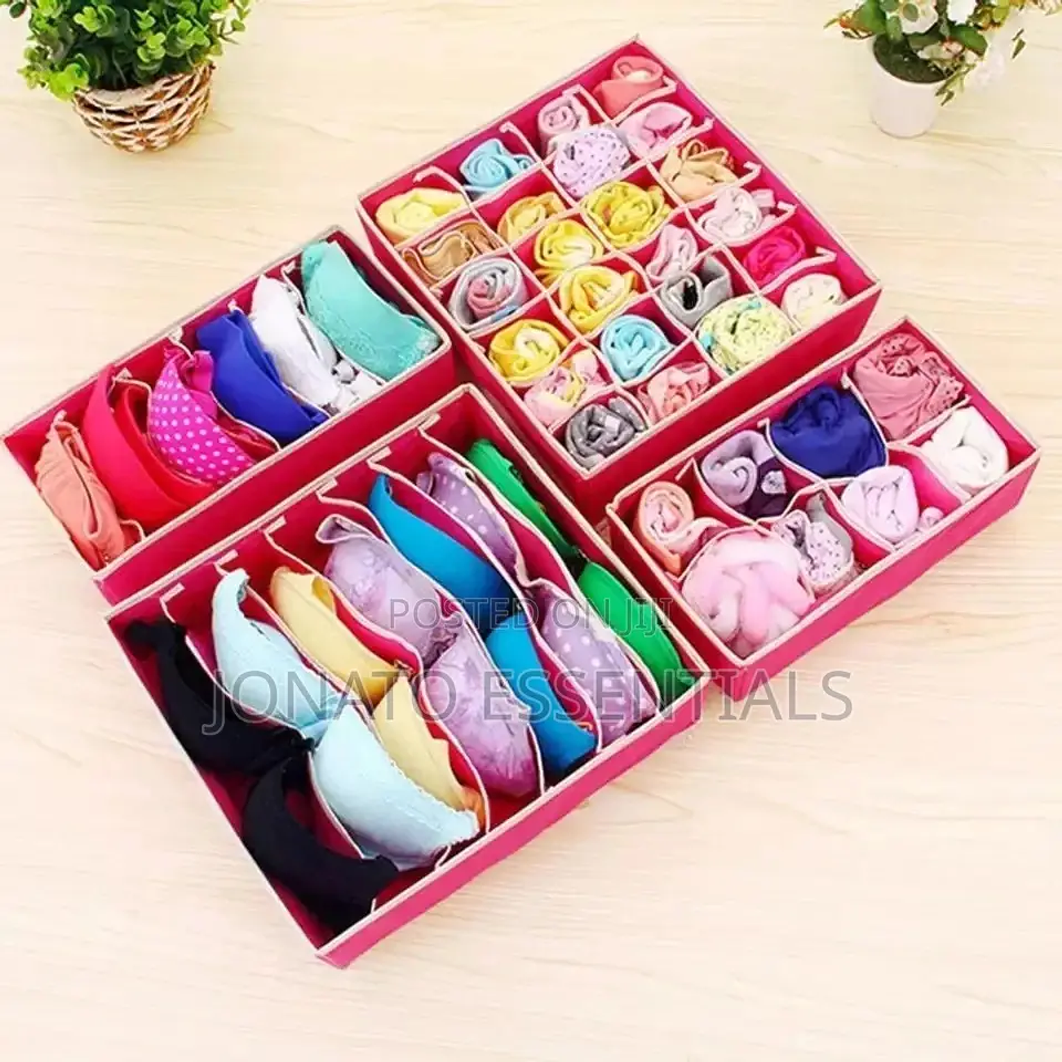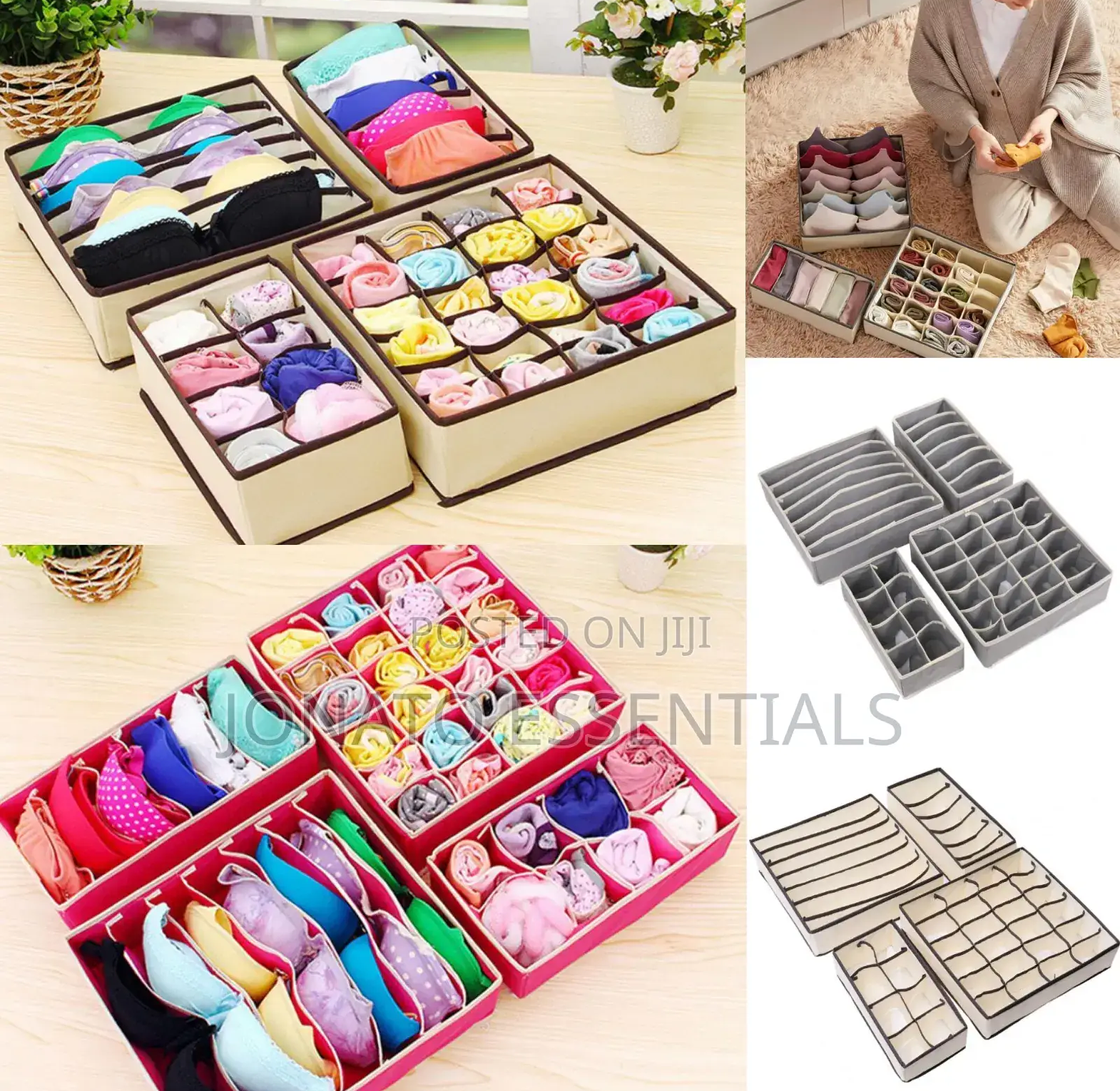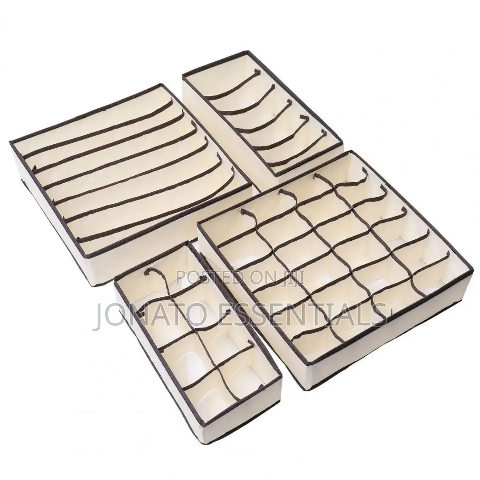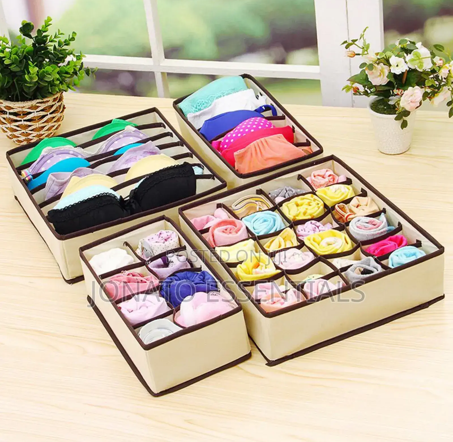 4 in 1 under garments organizer, bras socks ties organizer, underwear organizer collapsible drawer organiser set of 4 for socks, underwear,bra & panties this organizer is used to organize small undergarments like bras, socks, ties, underwear/pants etc undergarments organizer, drawer organizer, bra storage, panty organizer, sock holder, closet organization, wardrobe storage, space-saving storage, travel organizer, multipurpose organizer, fabric organizer, small accessories storage, compact storage solution.