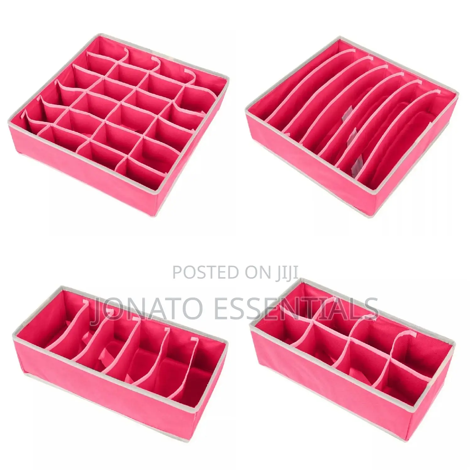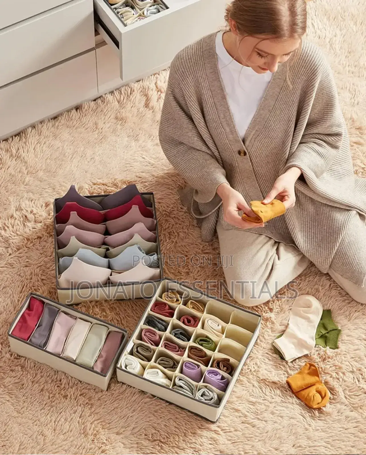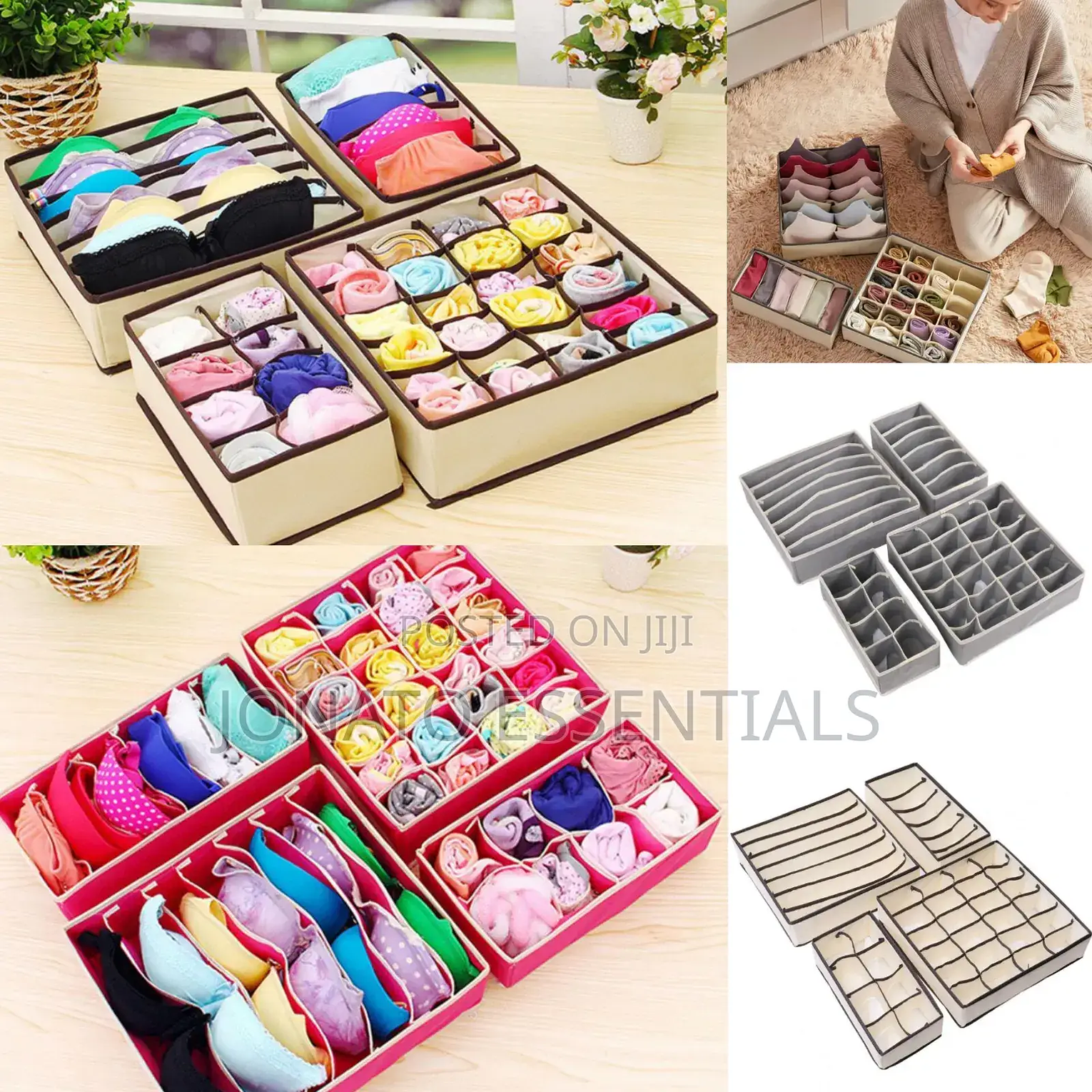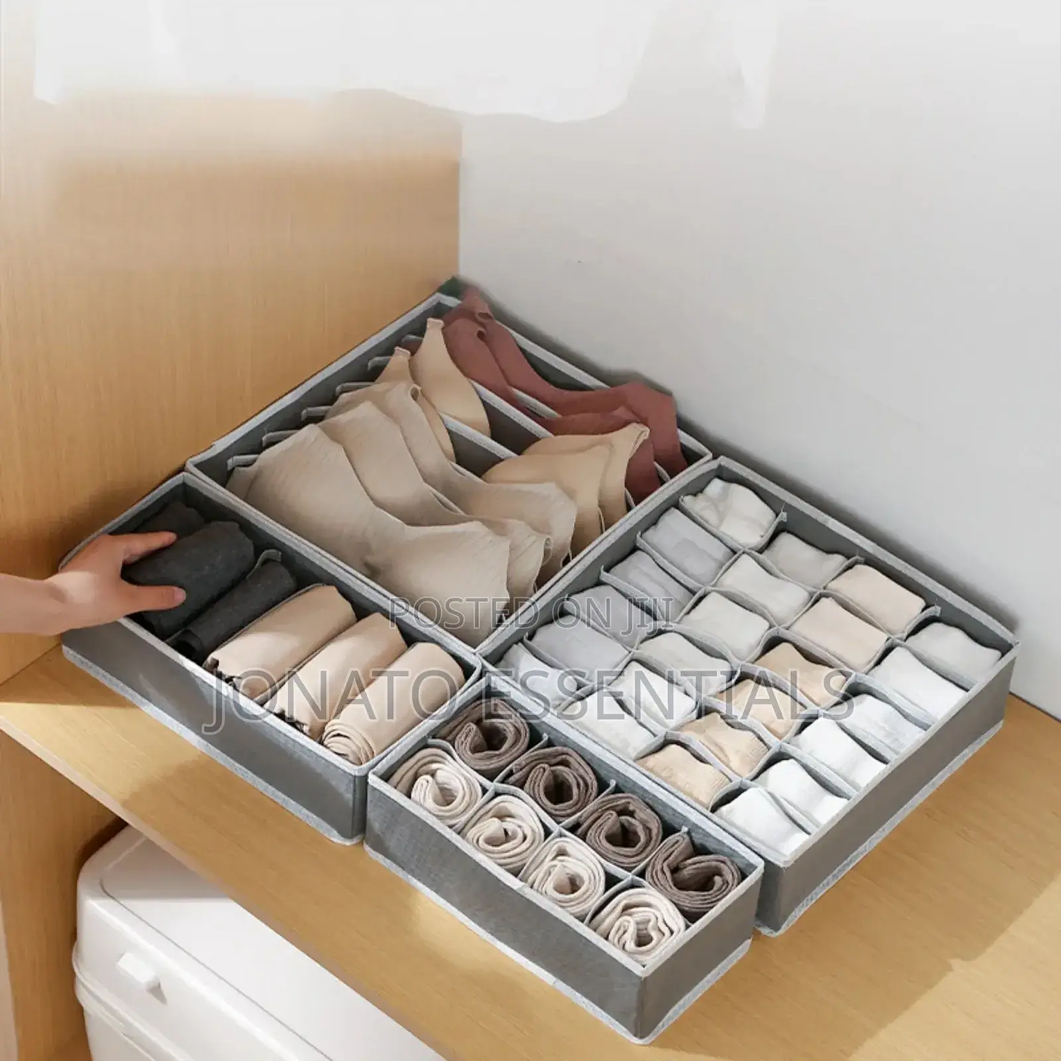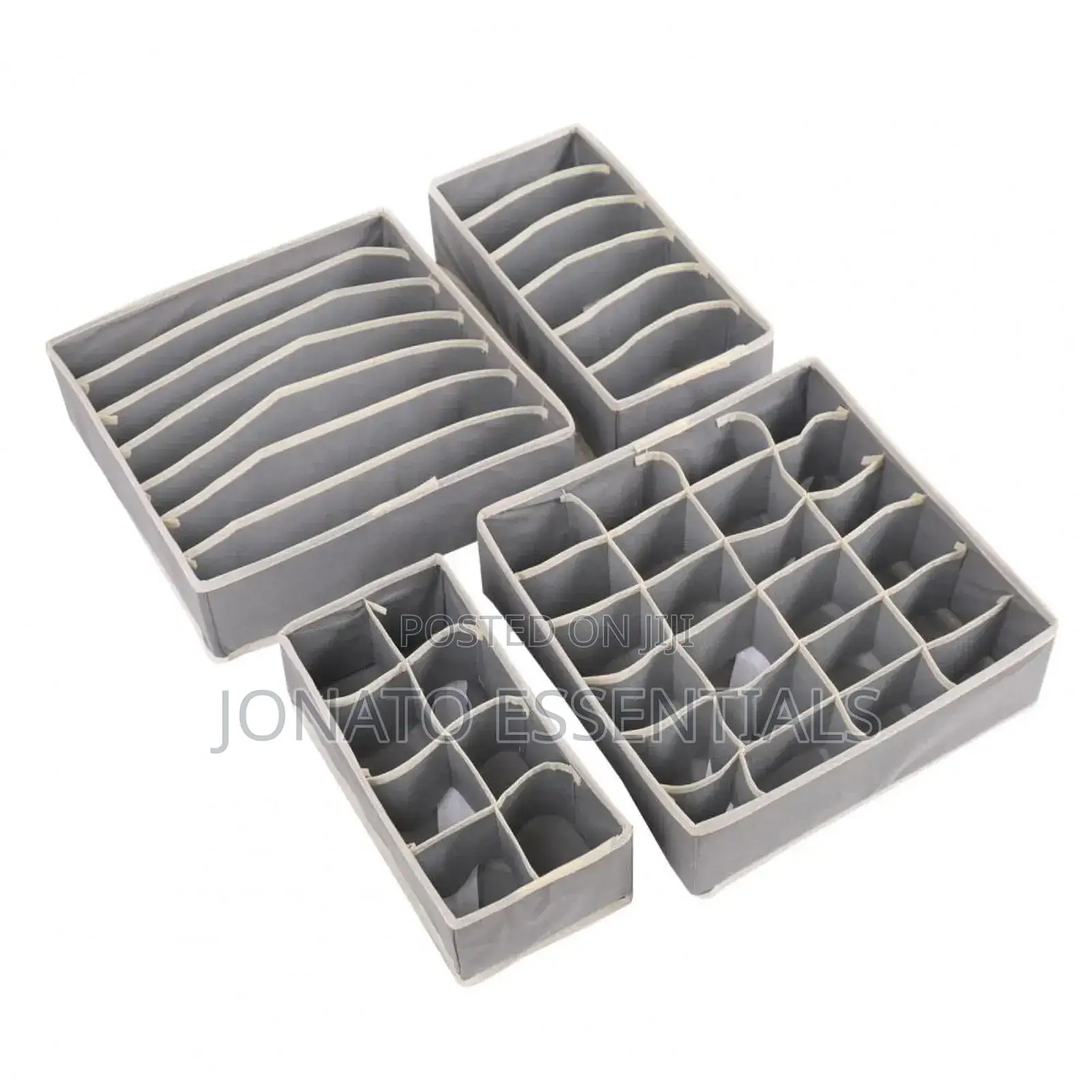 4 in 1 under garments organizer, bras socks ties organizer, underwear organizer collapsible drawer organiser set of 4 for socks, underwear,bra & panties this organizer is used to organize small undergarments like bras, socks, ties, underwear/pants etc undergarments organizer, drawer organizer, bra storage, panty organizer, sock holder, closet organization, wardrobe storage, space-saving storage, travel organizer, multipurpose organizer, fabric organizer, small accessories storage, compact storage solution.