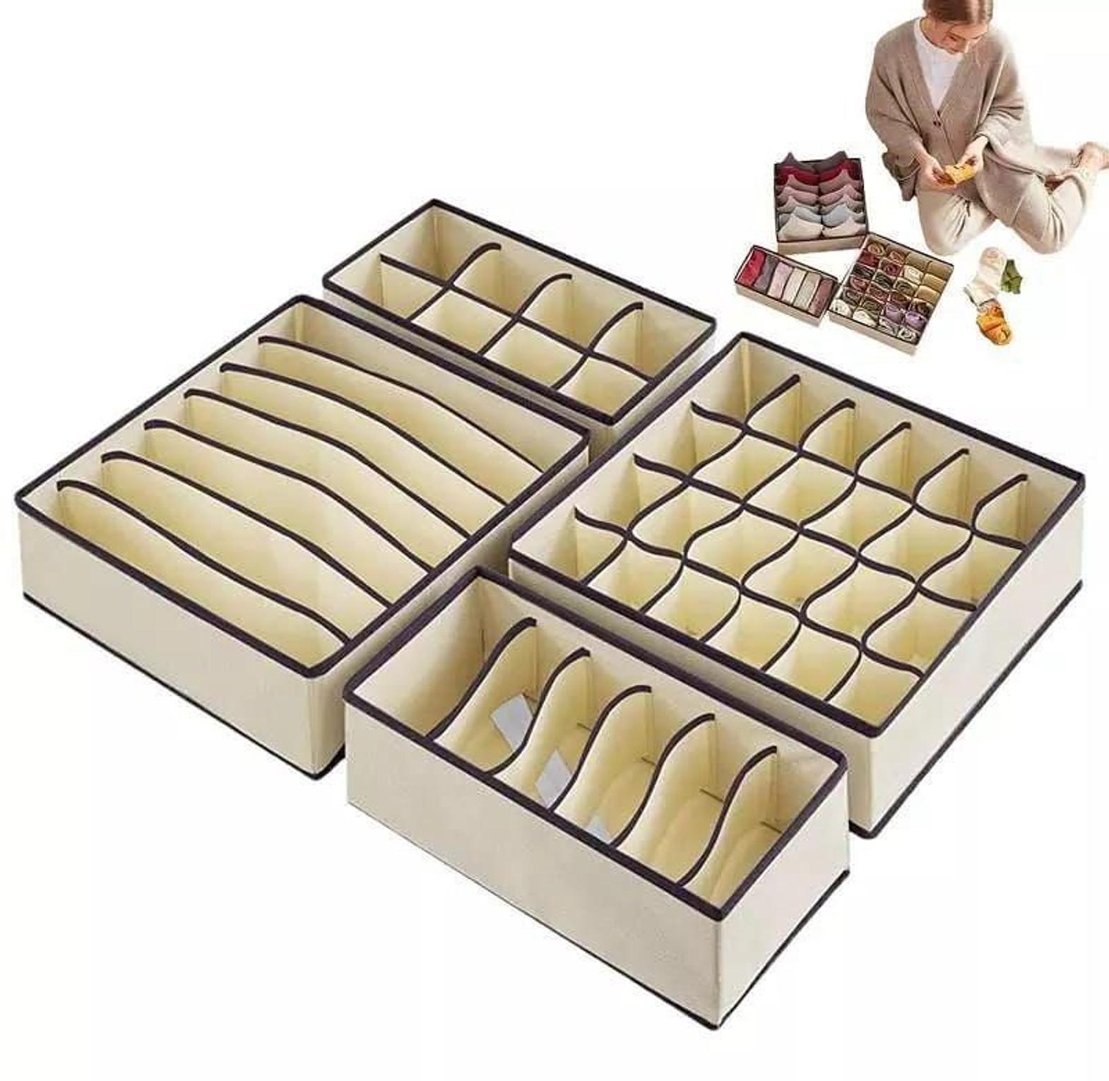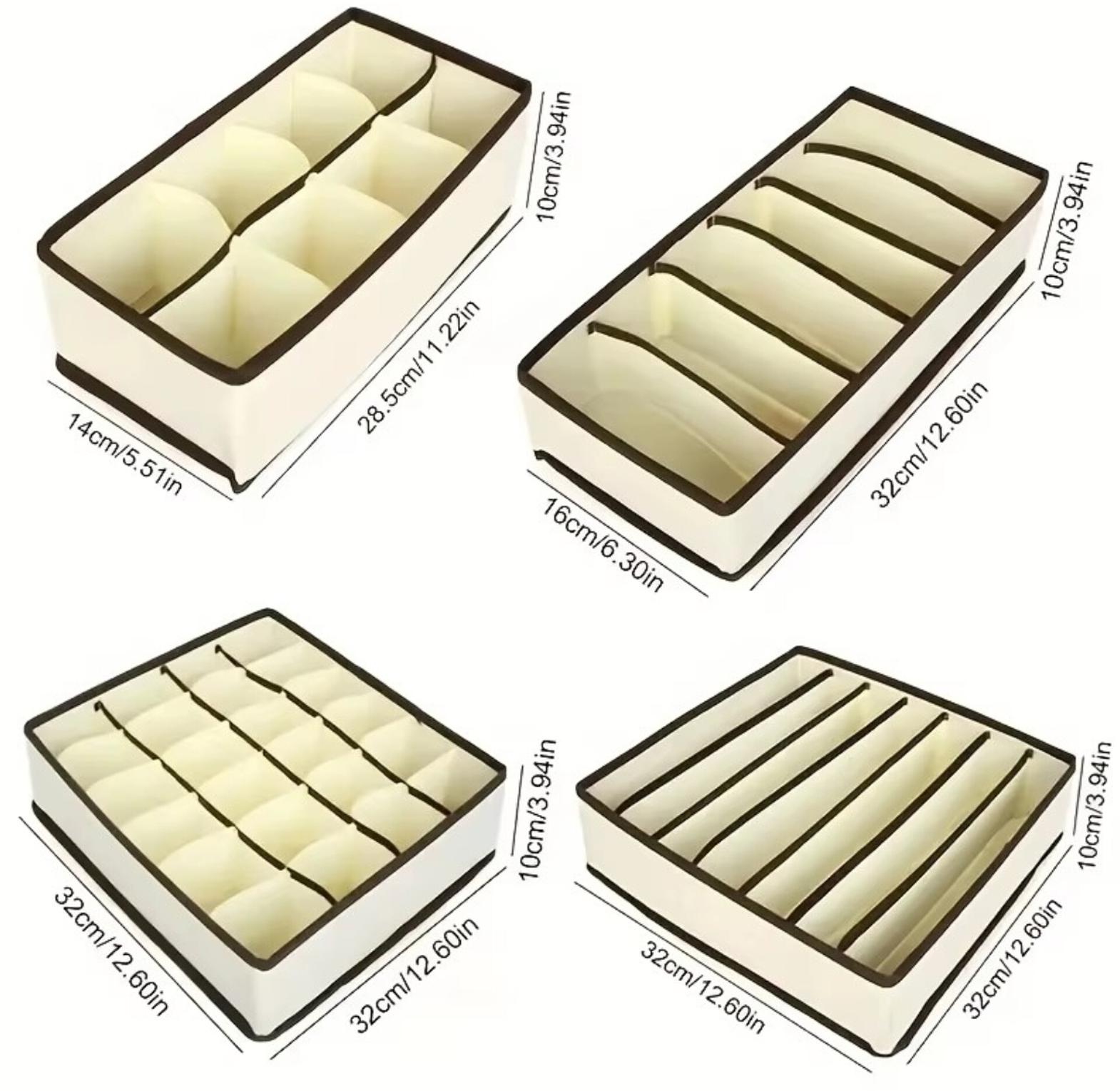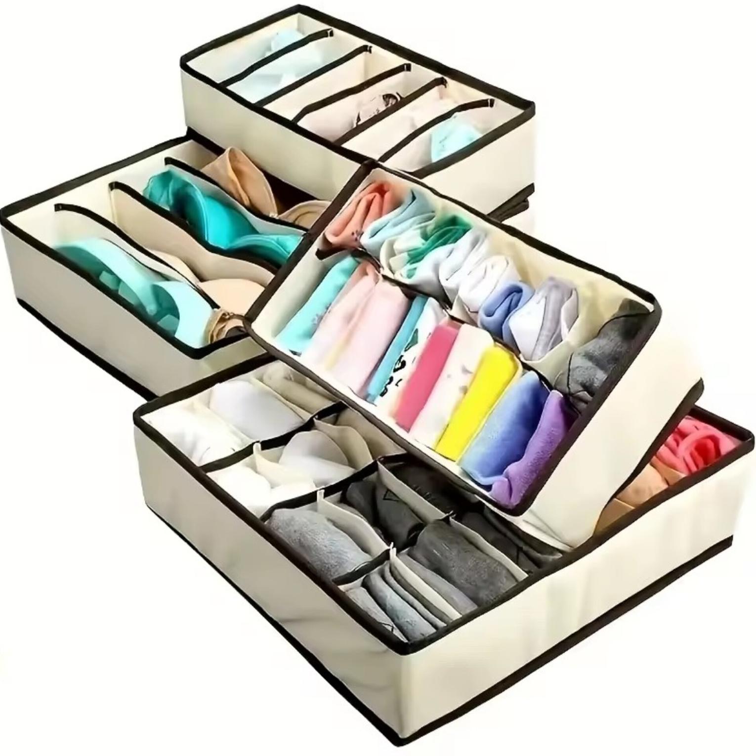 Organizing your closet doesn't have to be expensive. This set includes four different sized bins specifically designed for bras, panties, socks, and neckties. Unlike bulky storage boxes, these fabric dividers are lightweight and can be folded flat when not in use, making them perfect for those who move frequently or have limited space.