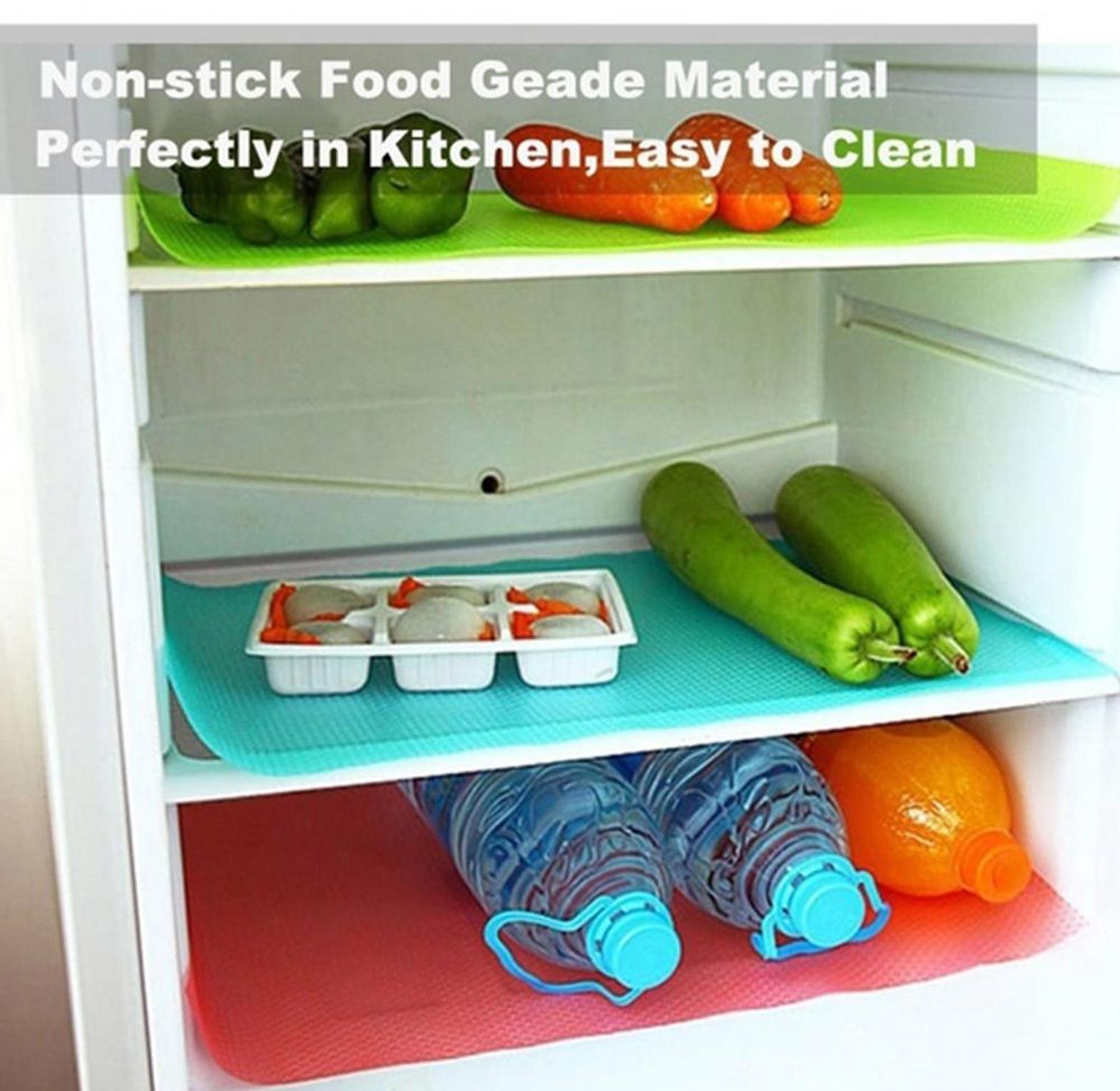 4 piece fridge mats. keep your fridge clean - protect your fridge shelves against those annoying spills. our refrigerator liners are made to keep your fridge in pristine condition and protect it against spills, drips and food getting stuck on your fridge shelves, saving you time and effort spent cleaning your fridge. multifunction refrigerator mat fridge fouling frost waterproof pad kitchen cleaning accessories keeps your fridge dry 4pcs refrigerator pad waterproof antifouling moisture absorption non-slip mat tailorable pad refrigerator mats fridge waterproof
