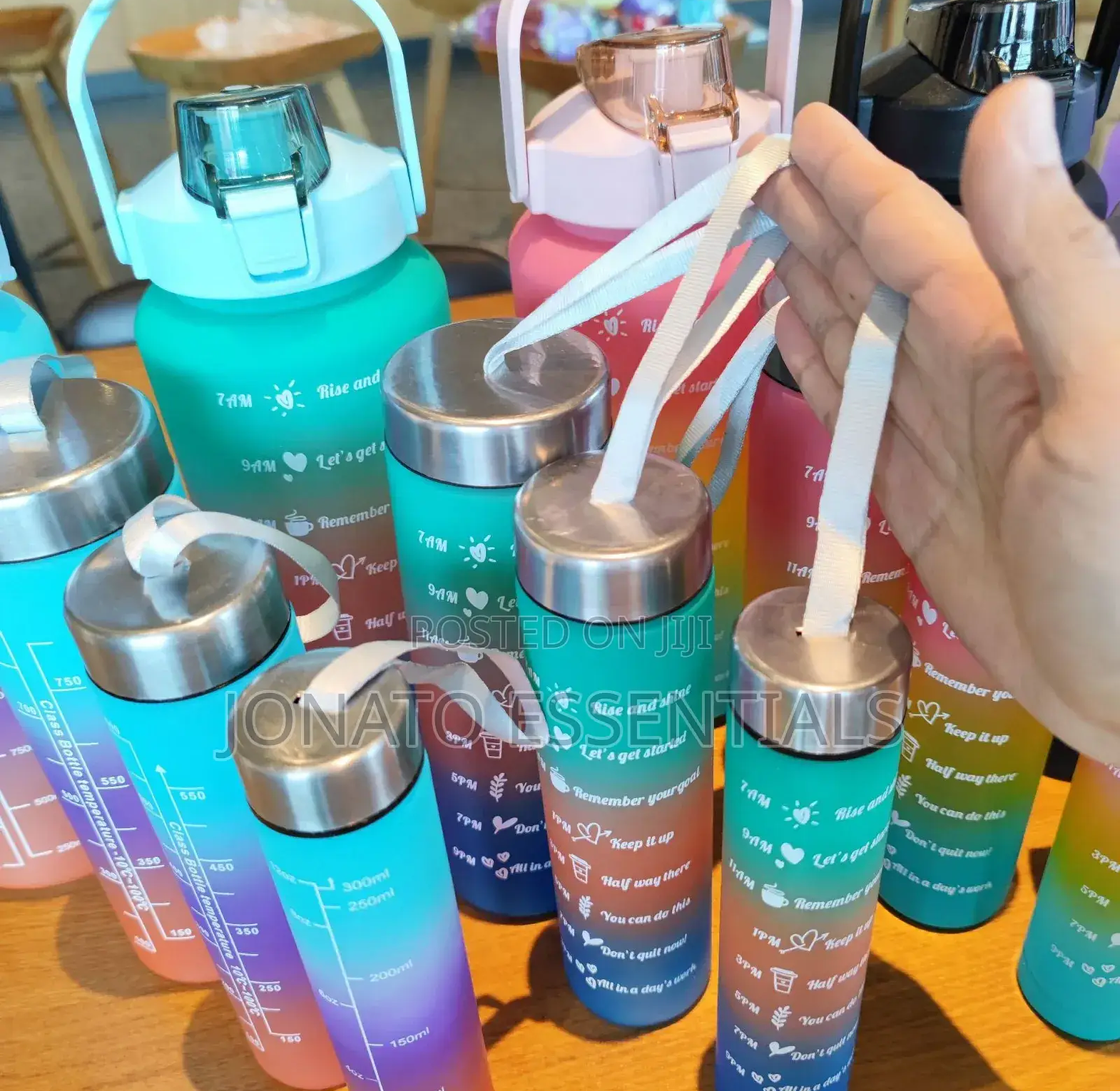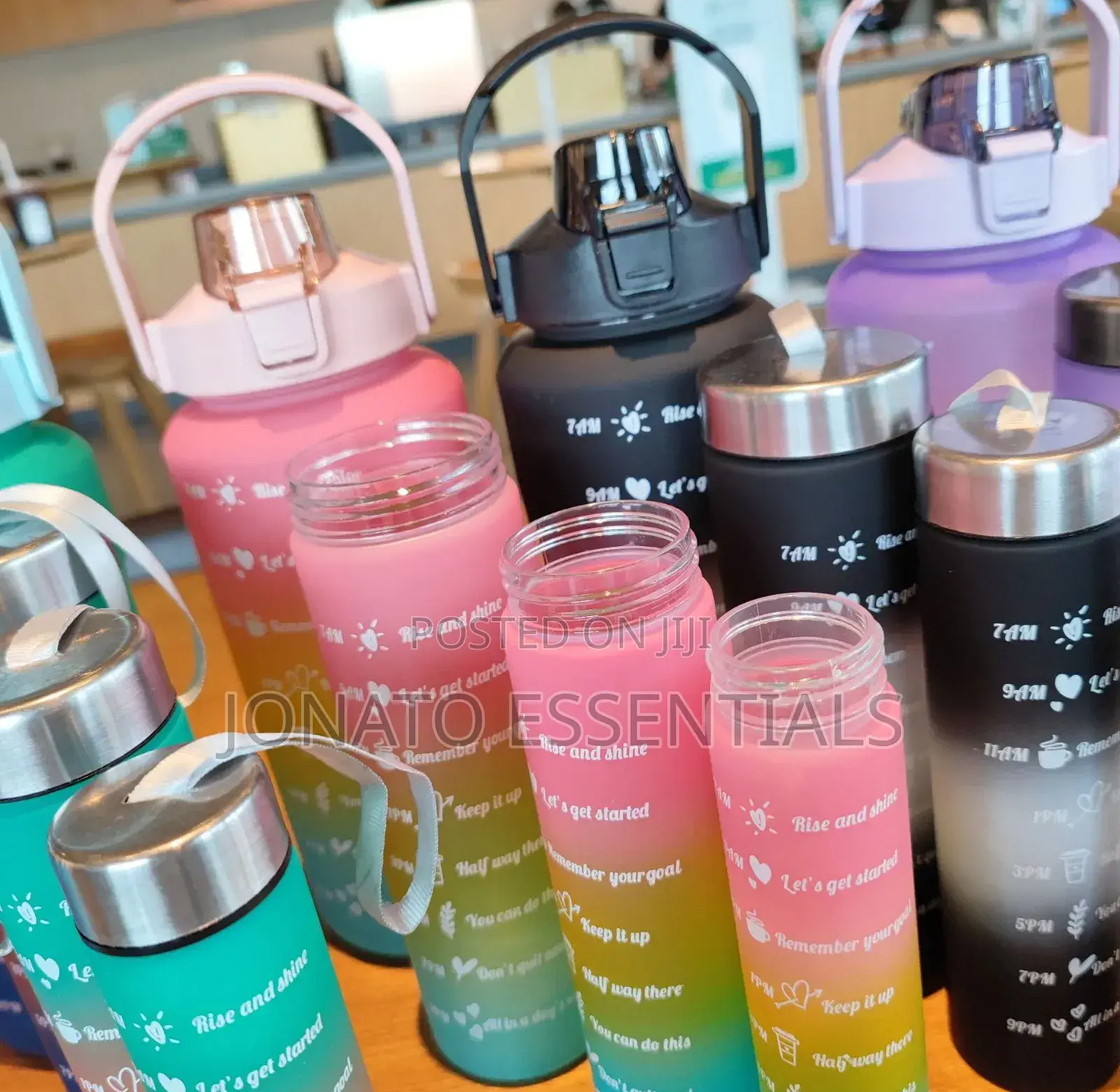 stay hydrated and motivated with our vibrant gradient water bottles! featuring inspirational quotes and convenient time markers from 7 am to 9 pm, these leakproof, bpa-free bottles help you track daily water intake. available in multiple sizes and colors like pink, purple, black, and teal, with durable handles or sleek designs. perfect for fitness, gym, office, travel, and everyday use. ideal for men, women, and kids seeking stylish, functional hydration. search terms: large capacity, insulated, portable, reusable, sport bottle, fitness tracker, gym accessory, healthy lifestyle, gift idea.