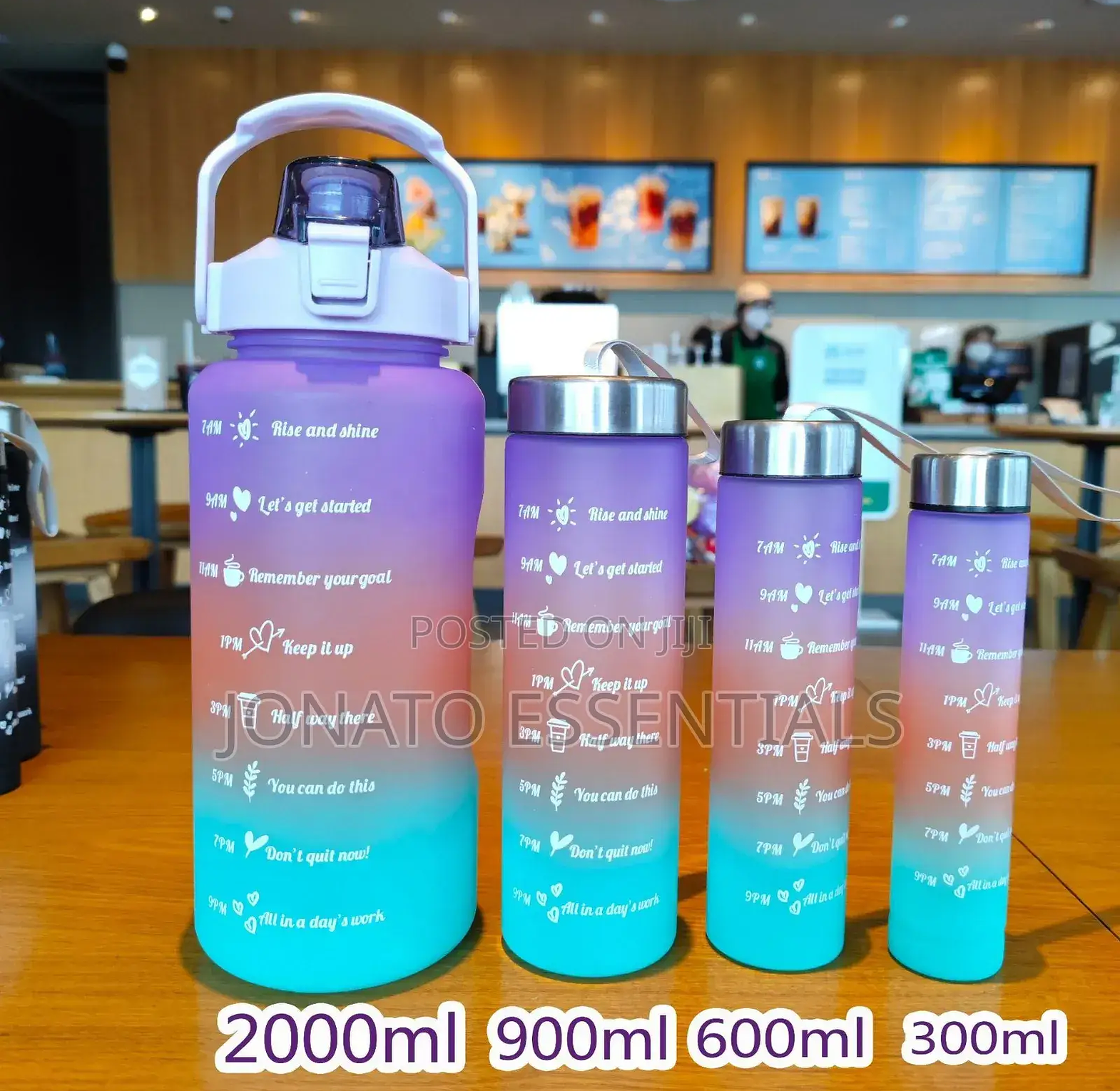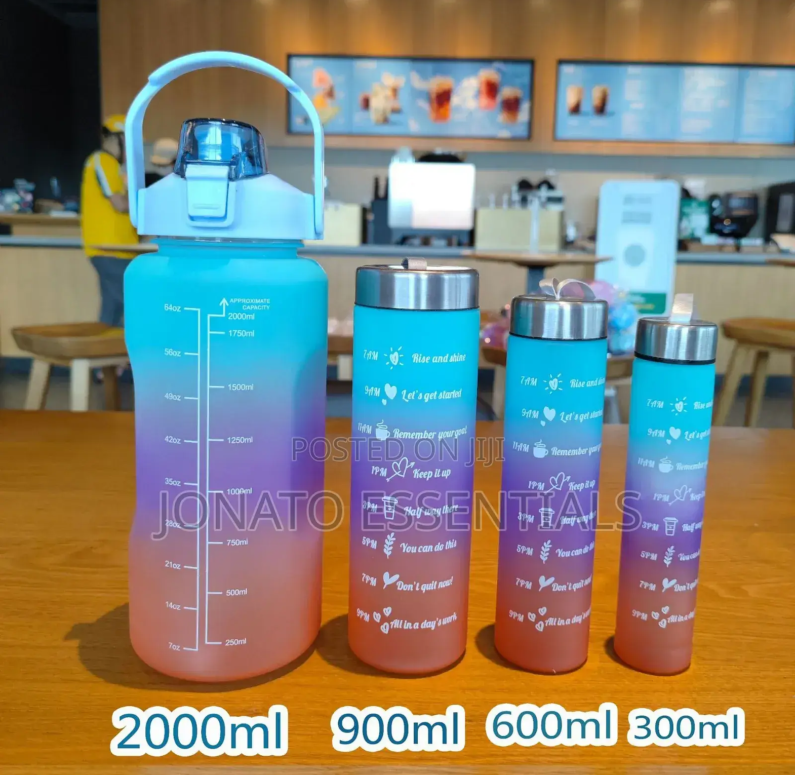 4 in1 motivation water bottle capacity:-2000ml,900ml,600ml, 300ml