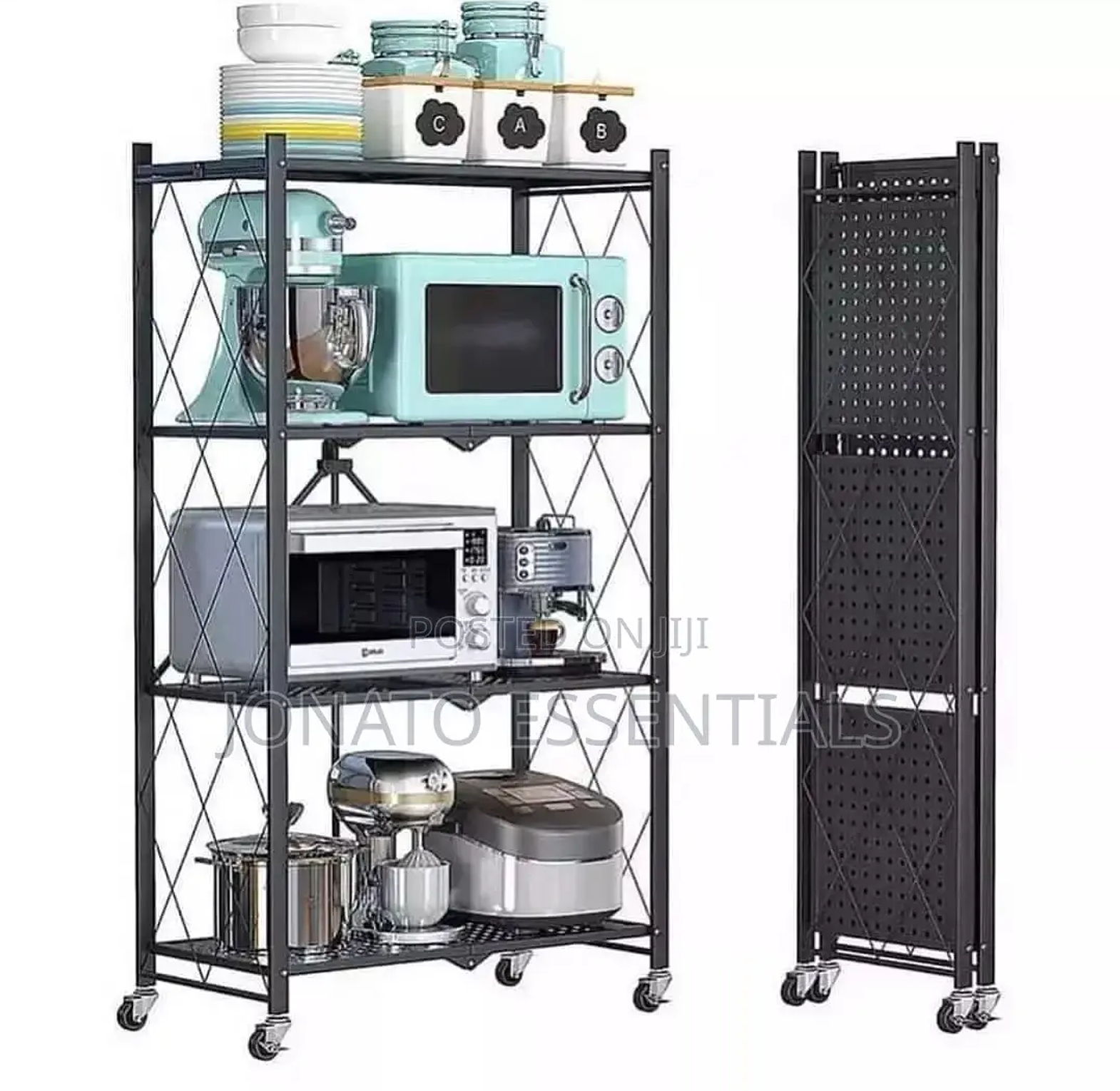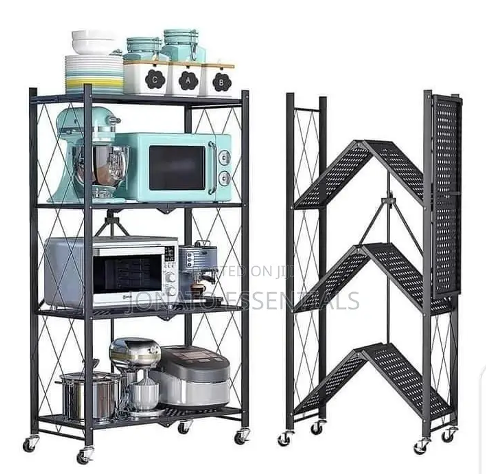 Foldable movable metallic storage rack 4 tier rack 5 layer 9000 stainless steel rack no installation required unfolding in one second movable, strong storage, high flexibility sturdy and durable. a good product for family storage