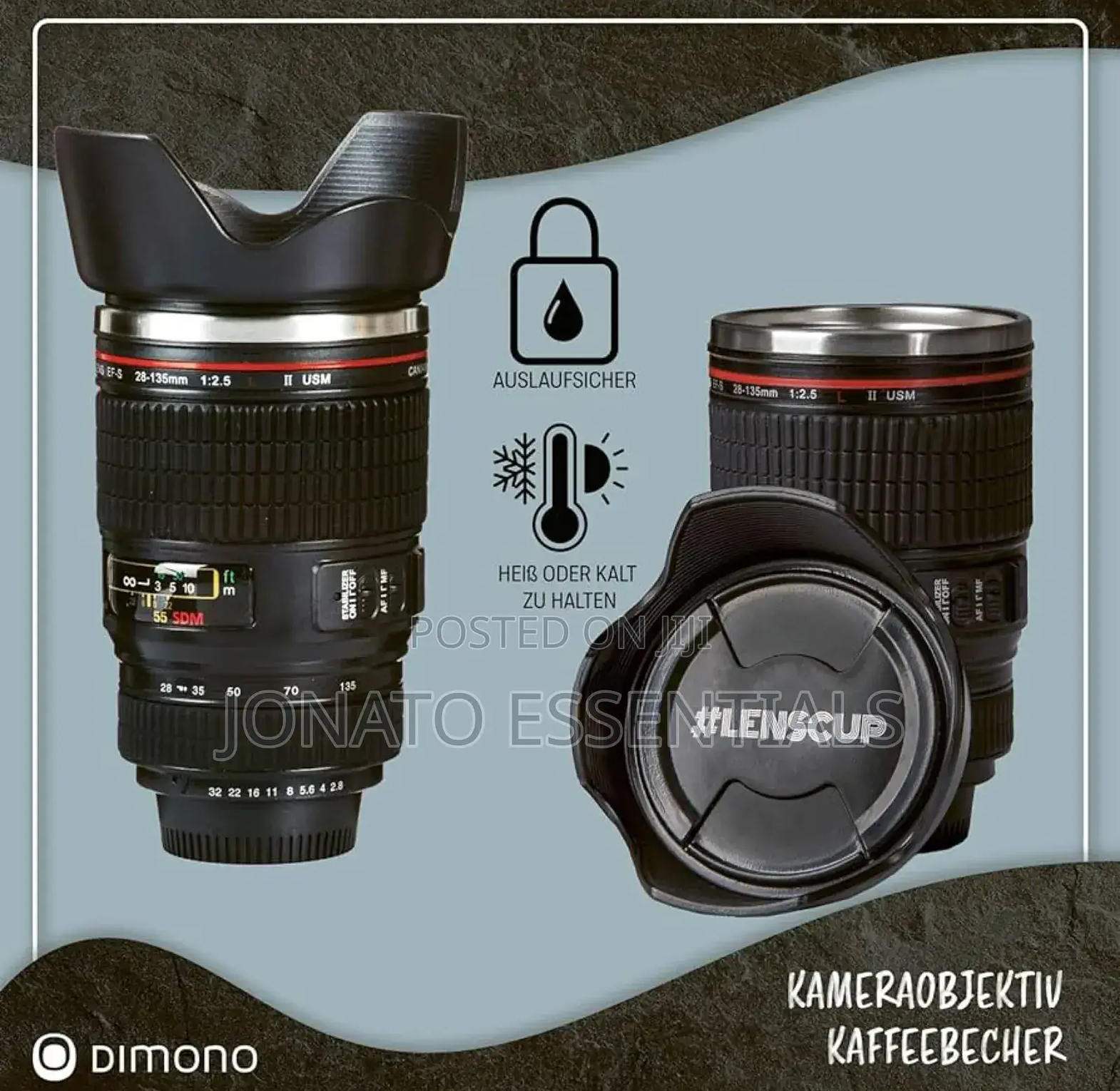 400ml camera lens tea or coffee cup, travel mug capacity :400ml great gift ideal to be used in home, office and outdoor the cup lid can be used as a snack placement. fancy yourself as a bit of a photographer well you can now feel like a photo fanatics with this brilliantly quirky new mug which looks exactly like a real camera lens and will soon become an essential part of your photographers kit bag!! stylish cup use to drink tea, coffee and your favourable drink made from food grade plastic, safe to use for drinking camera lens stainless steel leakproof cup coffee tea travel stainles mug with lid drinkware thermos.