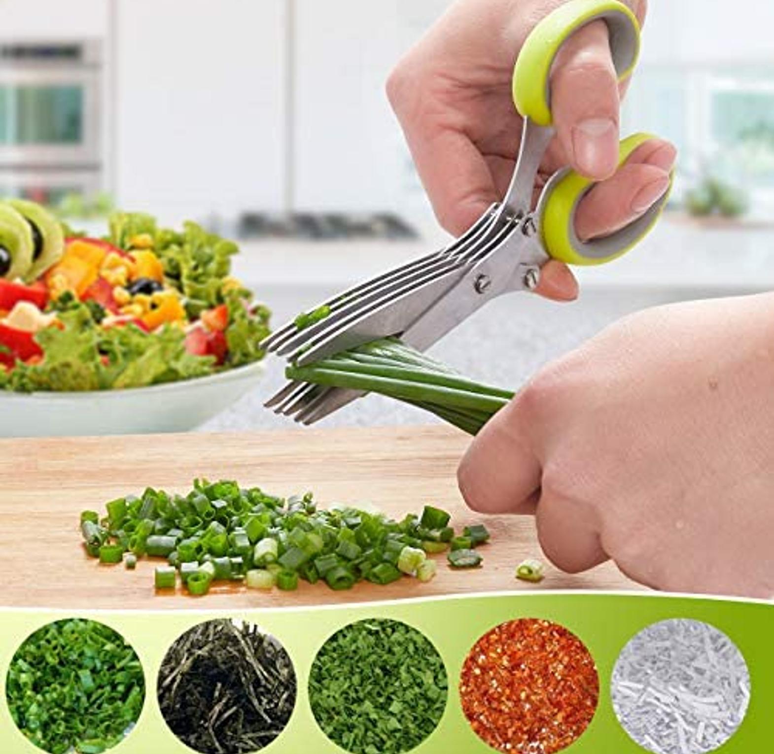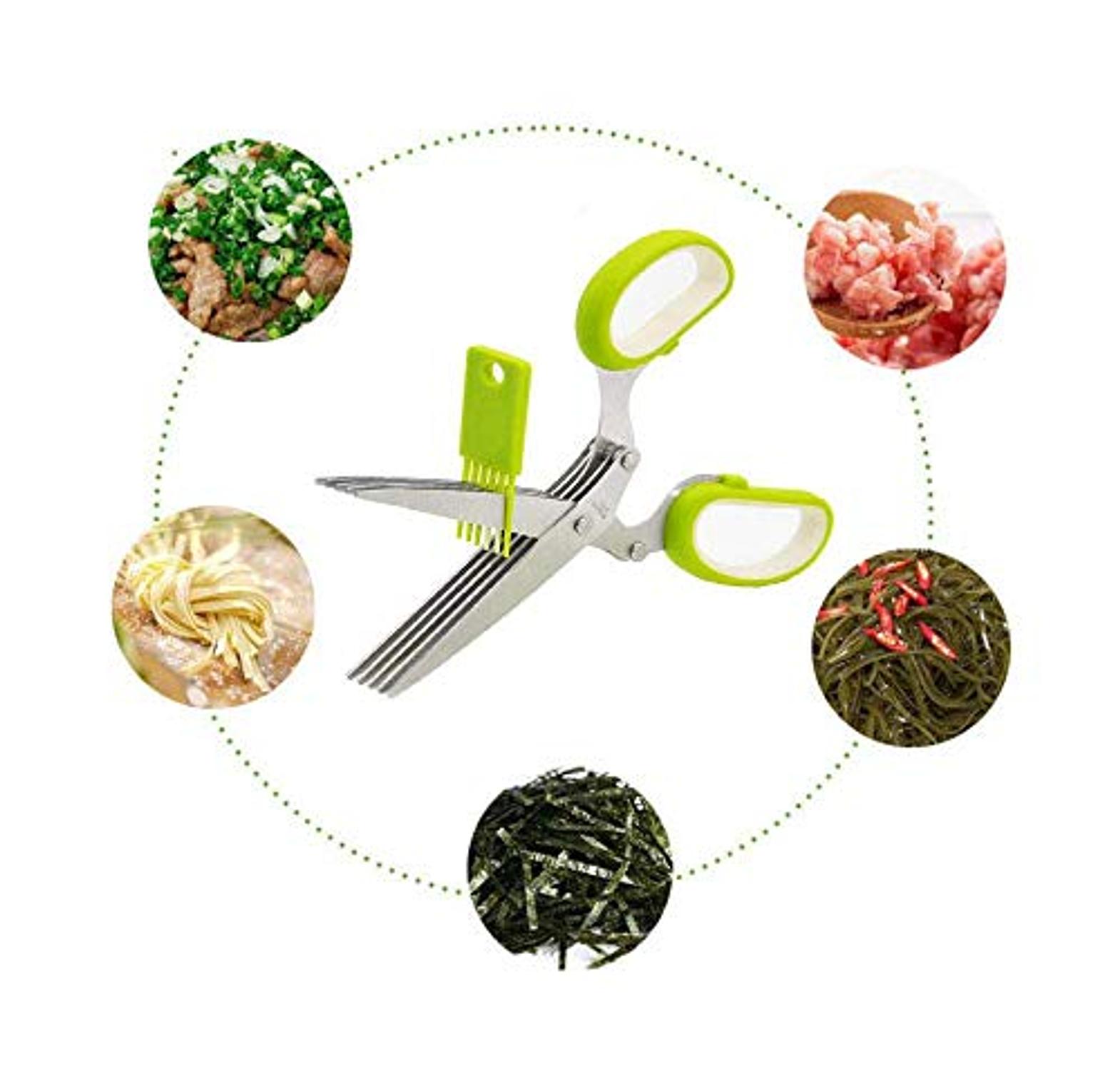 5 blade kitchen herb scissors this set of knives is designed for versatility, with features that include scallion cutting, herb laver, spices, and onion cooking cut. it's a must-have for any kitchen. multifunctional muti layers stainless steel knives kitchen scissors scallion cutter herb laver spices onion cook cut scissor.