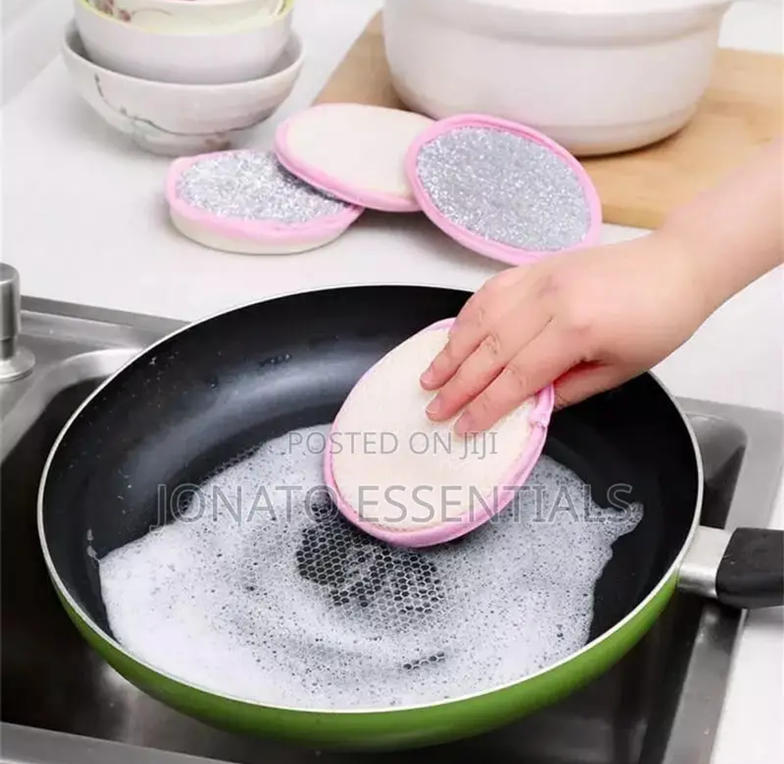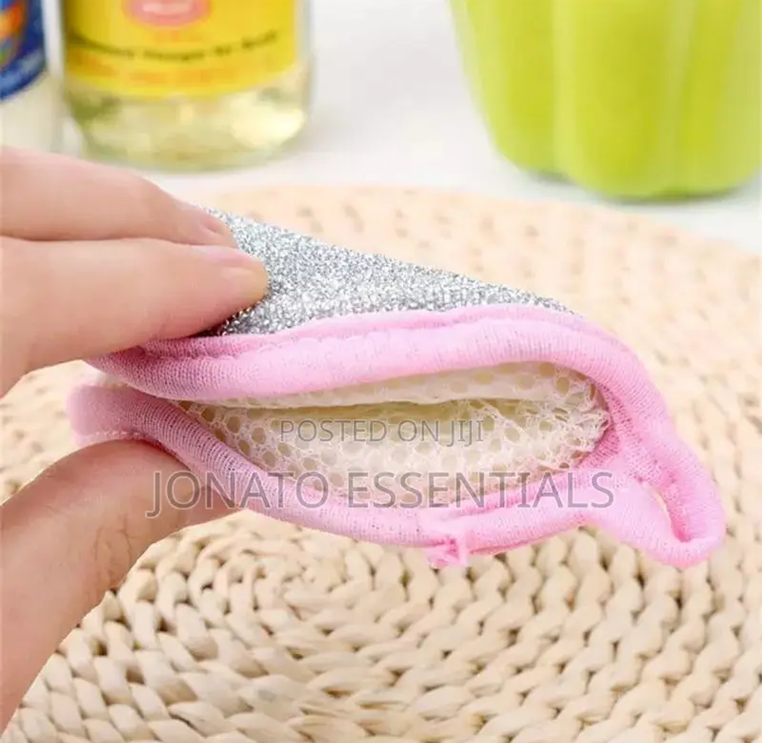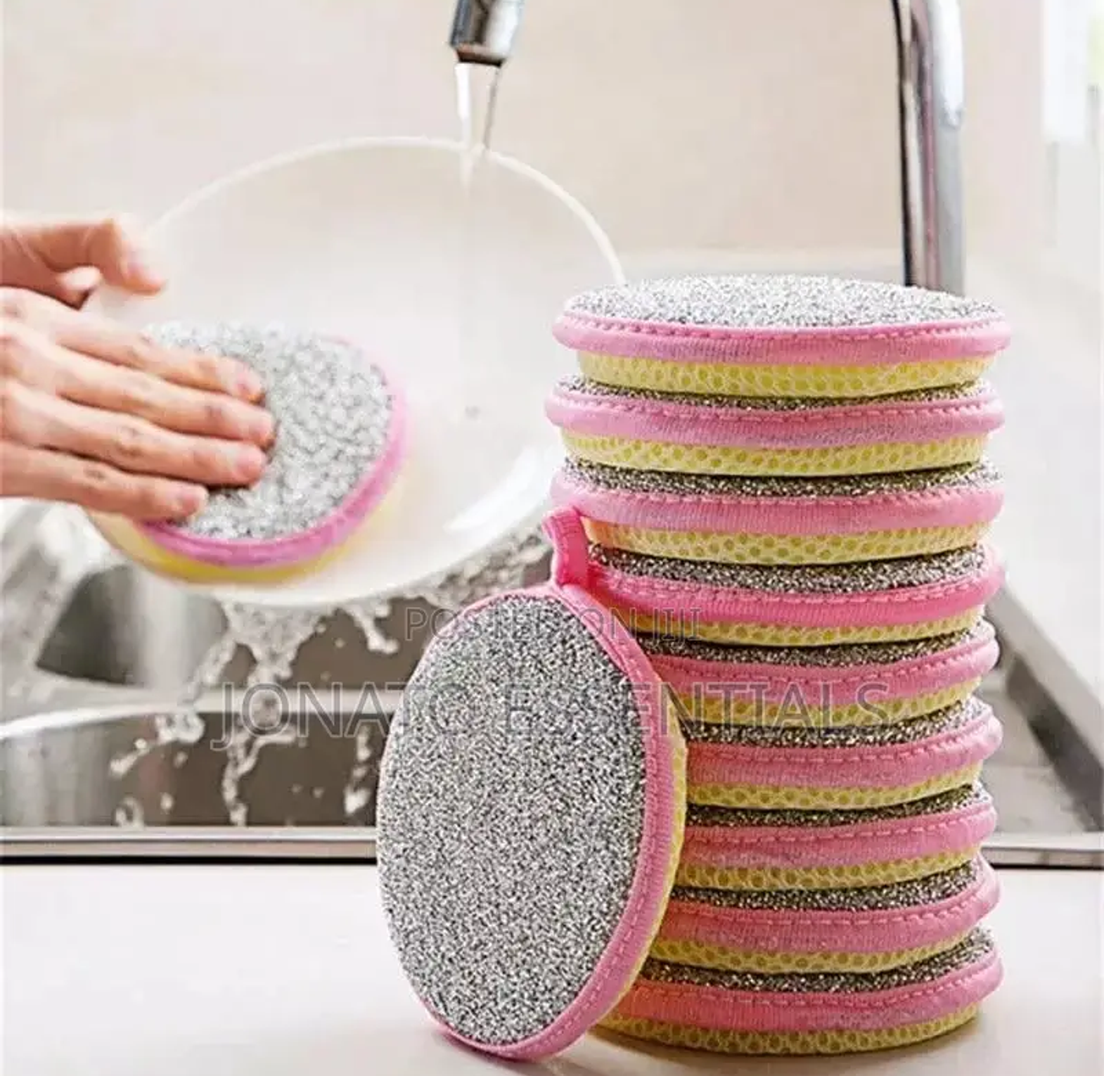 5 piece double sided dish washing sponge double-sided material, one side is a high-density sponge screen, which is soft and easy to foam; the other side is nylon yarn, which is a little harder, and powerfully removes stubborn stains. no oil, no damage to the pot, no shrinkage hanging hole design does not occupy desktop space. 5pcs double side dishwashing sponge dish washing brush pan pot dish wash sponges household cleaning kitchen tools