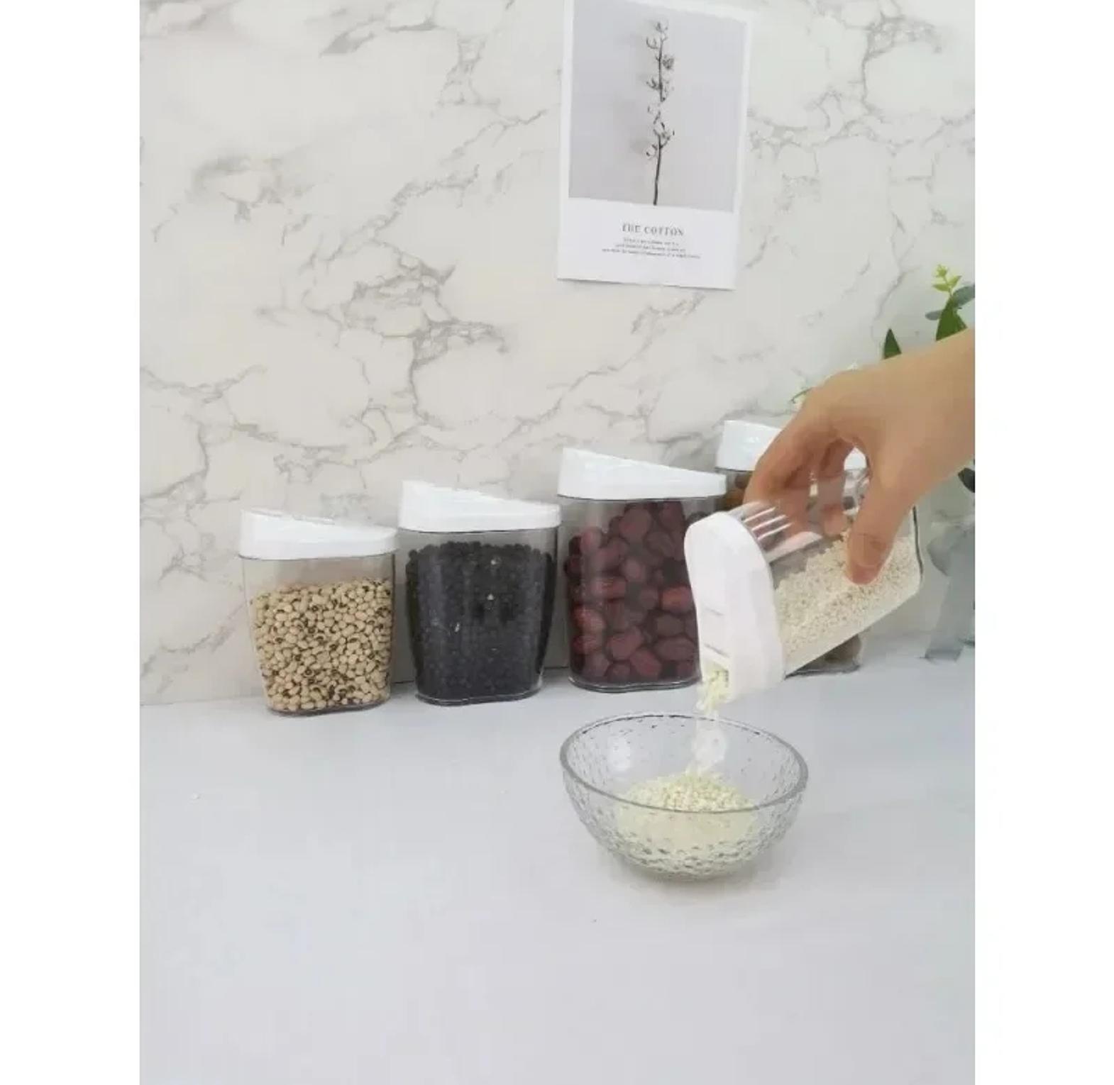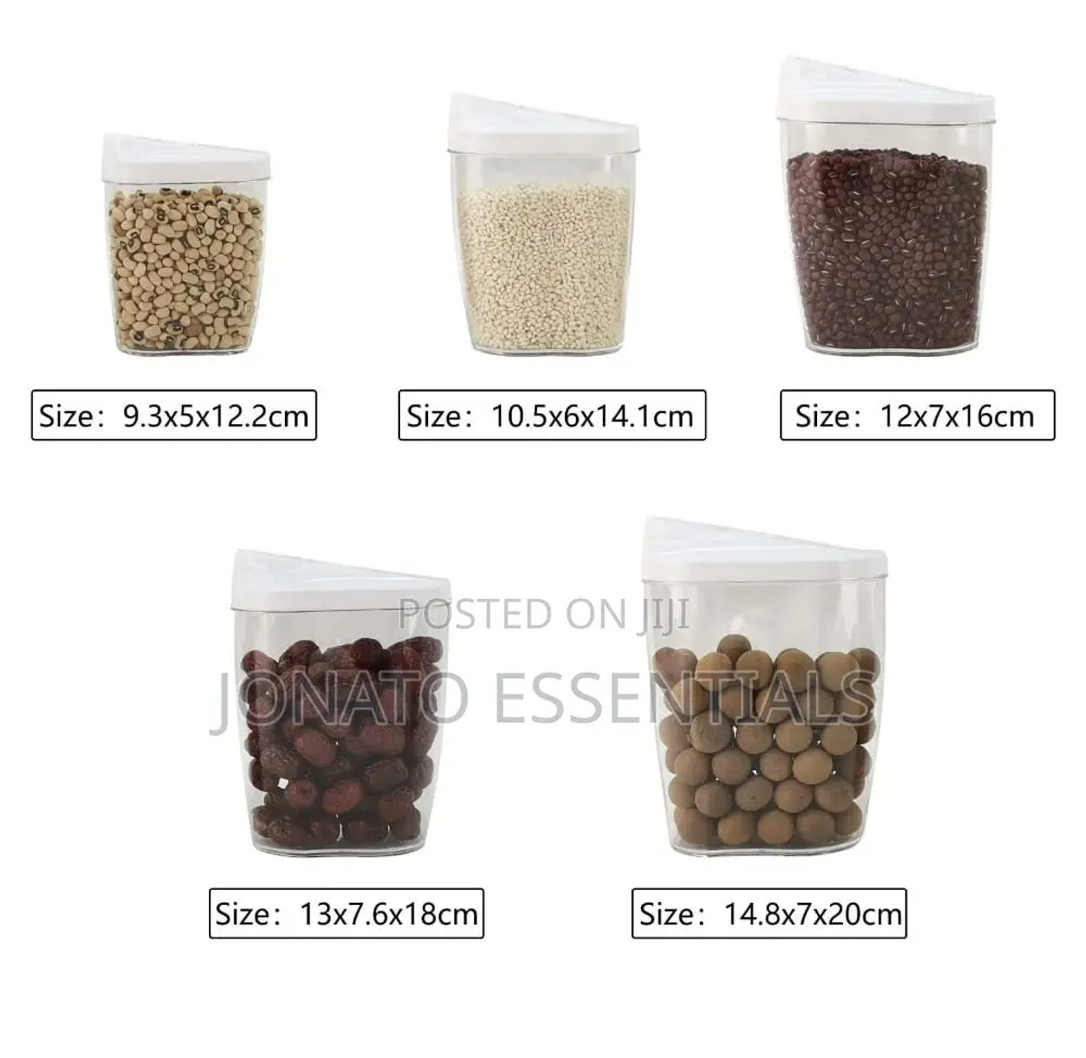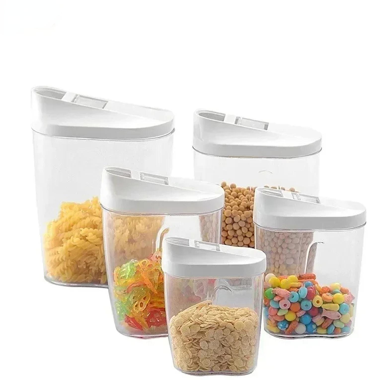 5pcs food cereal snack container storage set with easy pour lids kitchen storage & organizer acrylic clear see through store spices, pastas, cereal , snacks & more keeps food fresh and insect free sizes:1-1440ml 8", 1-960ml 7.25", 1-720ml 6.25" ,1-480ml 5.5", 1-300ml 4.75" ergonomic design for easy pouring.