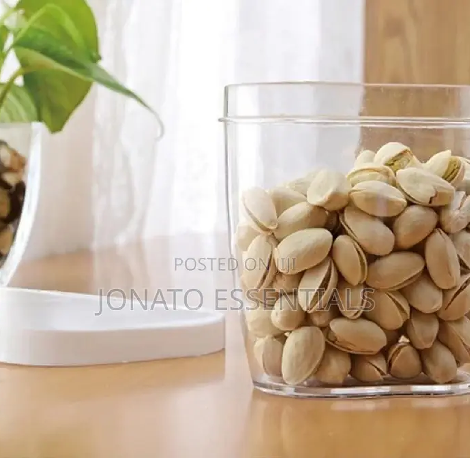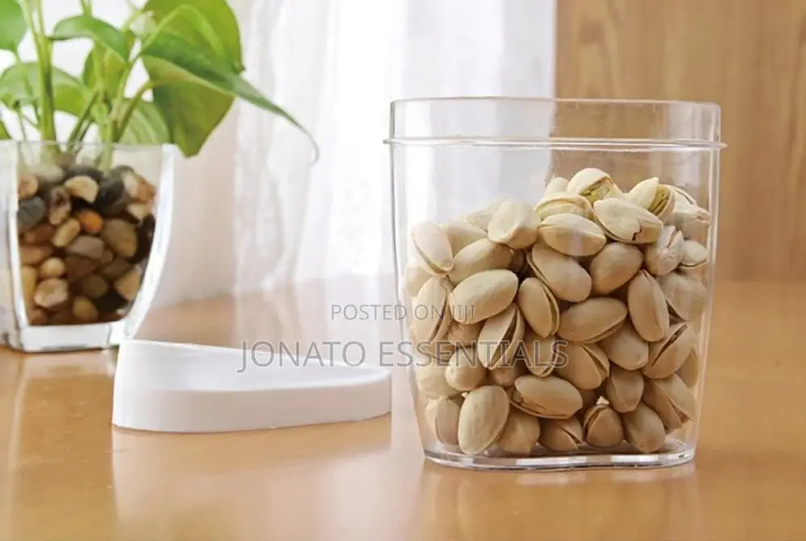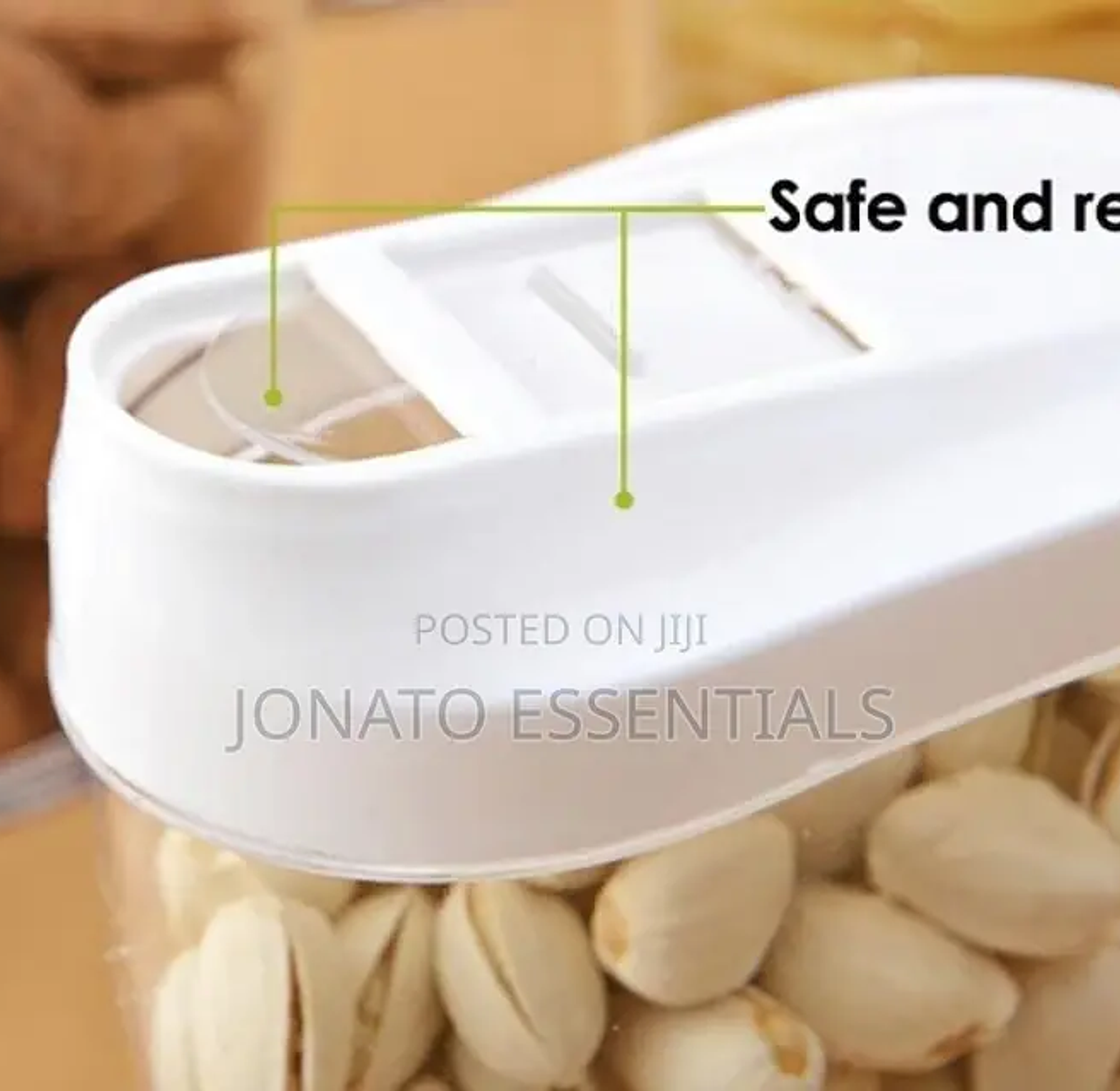 5pcs food cereal snack container storage set with easy pour lids kitchen storage & organizer acrylic clear see through store spices, pastas, cereal , snacks & more keeps food fresh and insect free sizes:1-1440ml 8", 1-960ml 7.25", 1-720ml 6.25" ,1-480ml 5.5", 1-300ml 4.75" ergonomic design for easy pouring.