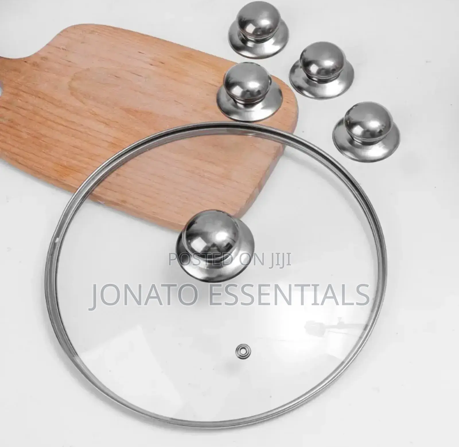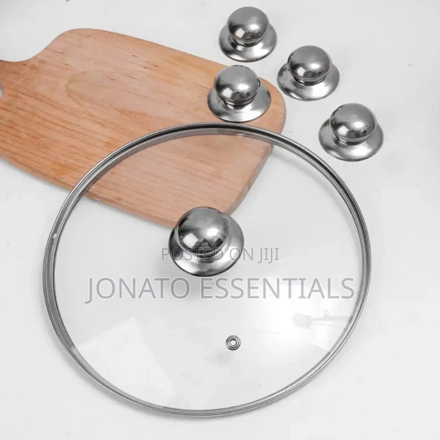 5 piece sufuria glass lid knob replacement potlids replacement handle comes as a set of 5. this is a knob or holder that is on the lid of a sufuria or pot. the pot cover and anti scald handle are made of stainless steel material protect your hands from harm tightly buckled and not easily detached, suitable for a wide range of applications set universal replacement kitchen cookware pot pan lid hand grip knob handle cover pan lid handle kitchen accessories.