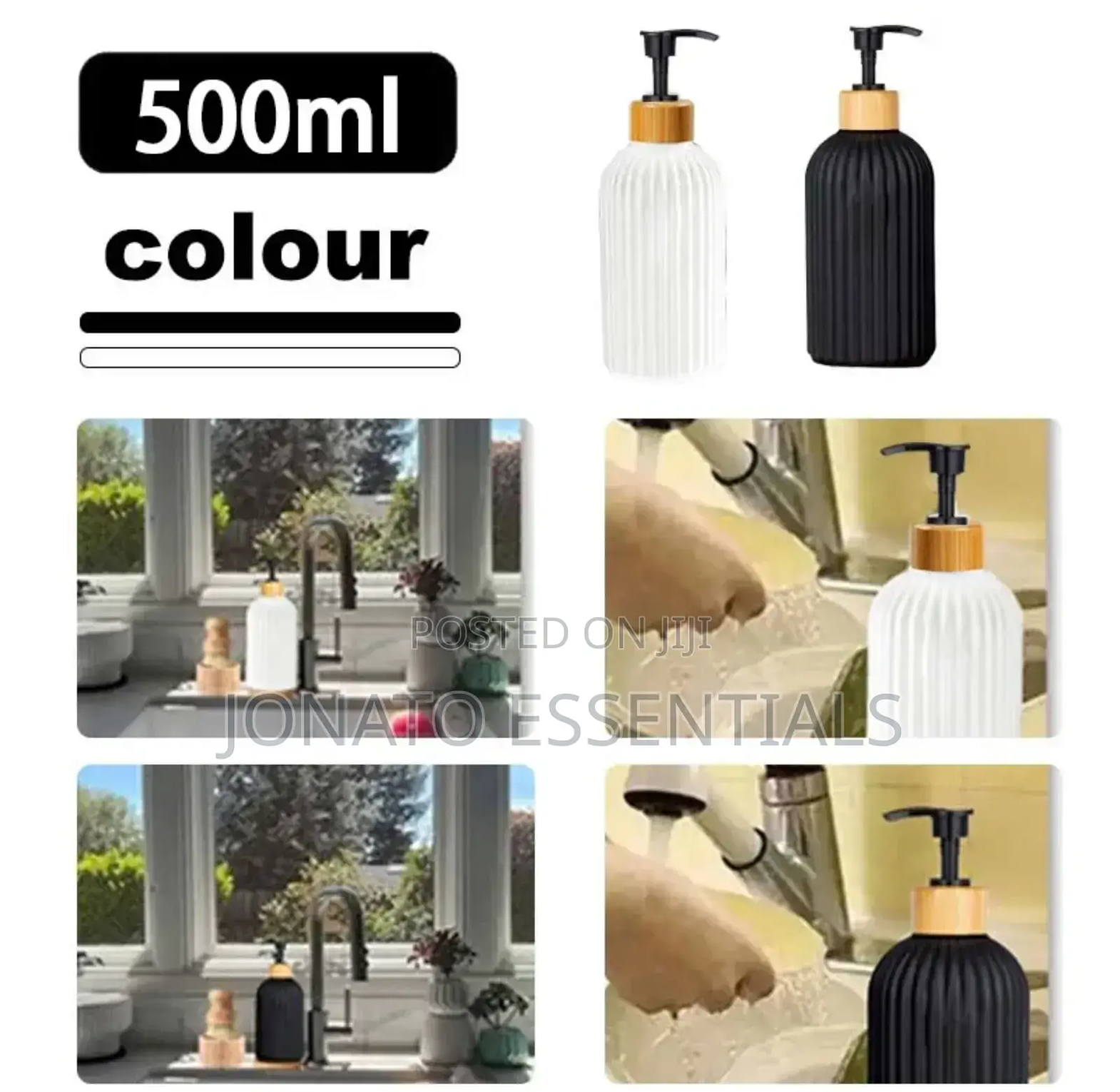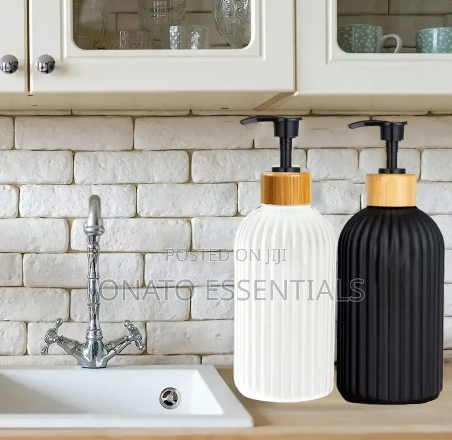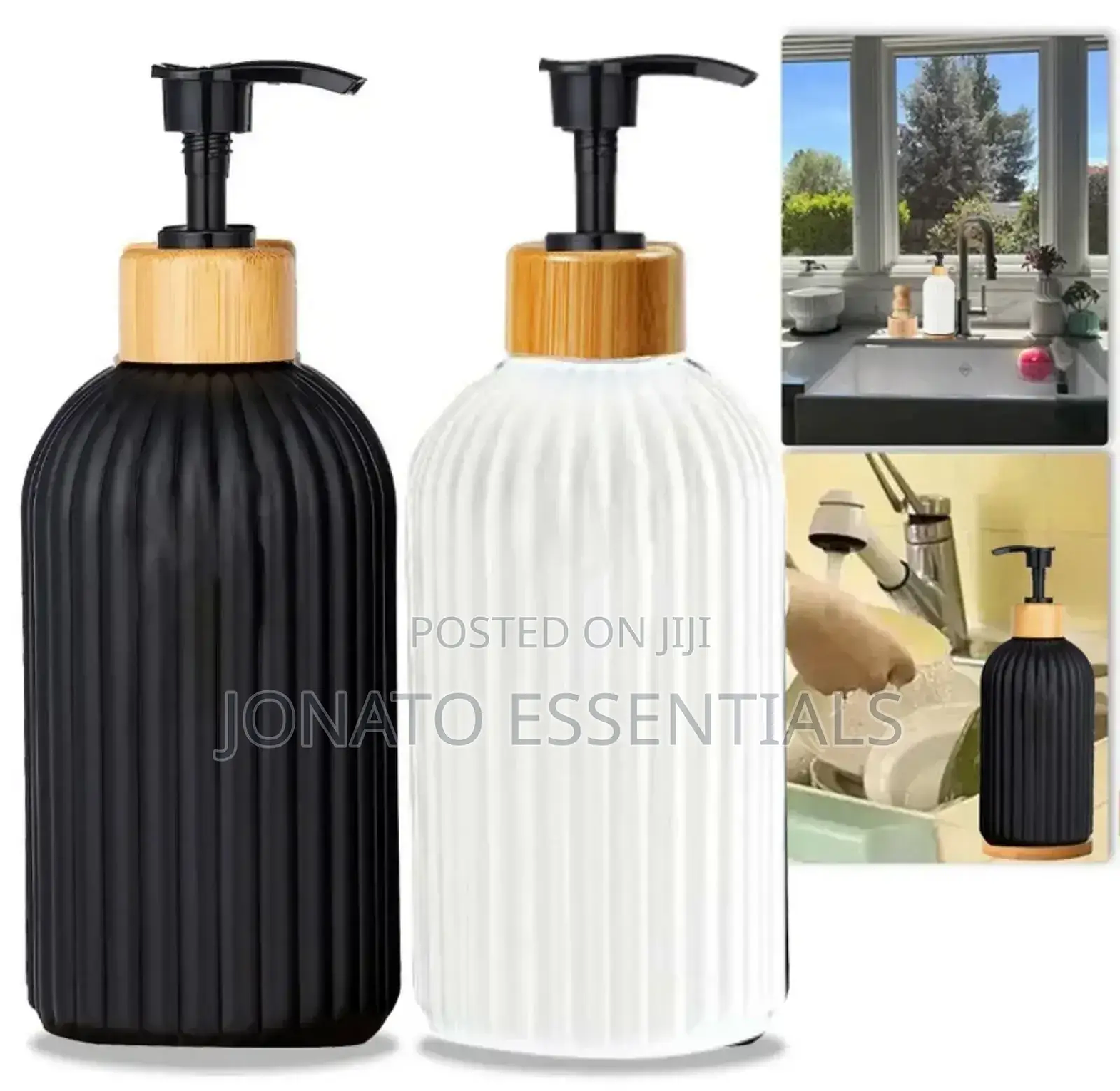500ml strip soap dispenser with bamboo pump refillable bottle shampoo conditioner lotion body wash empty container for bathroom