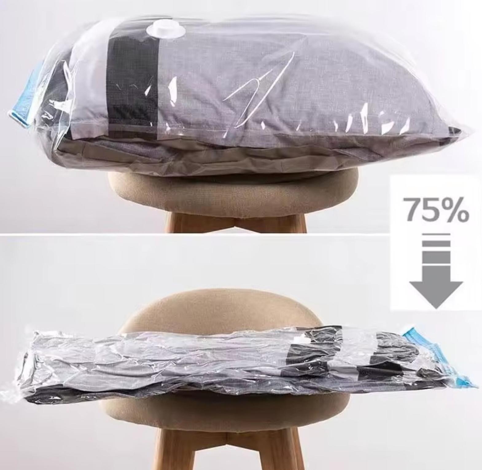 5pcs vacuum clothes storage bags with pump set for clothes blankets comforters sweaters pillows home compression seal bags space saver bags. set contains:- 1: 50cm x70cm 2pcs 2: 80 cm x 60cm 2pcs 3: 80cmx100cm 1pc 4.hand pump 1pc vacuum storage bags for clothes pillows bedding blanket more space save compression travel bags bedding home organizer.