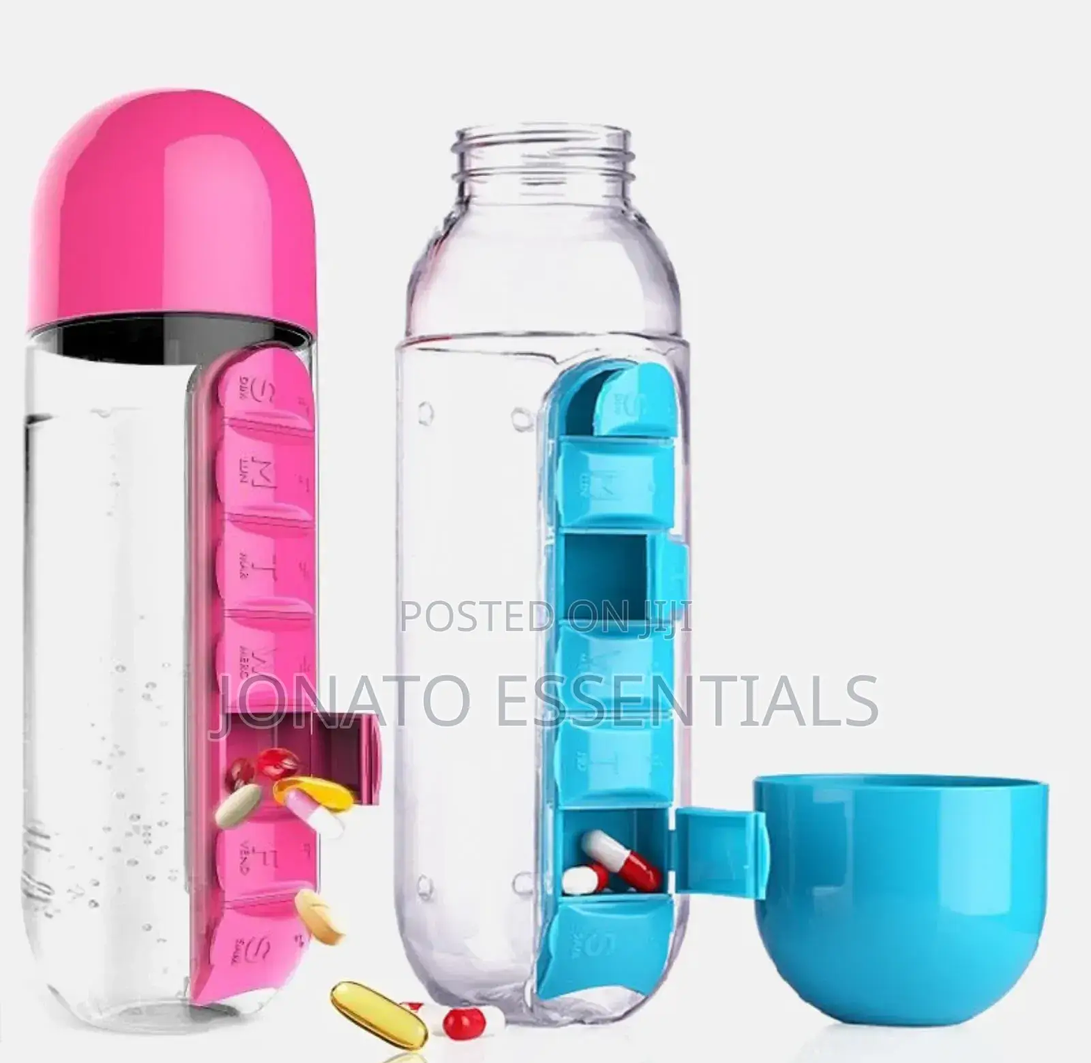 600ml Bottle With 7 Grid Pill or Medicine Box and Organizer
