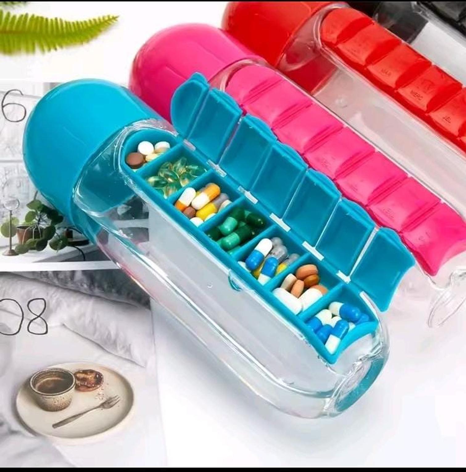 600ml bottle with 7 grid pill or medicine box and organizer pill organizer bottle new material eco-friendly storage with bpa free. there are 7 pill boxes on the bottle which can carry some pills if necessary good for hiking or outdoor camping and so on. spray perfect combination with drink. 2 in 1 600ml 7 grids medicine box water cup sports plastic water bottle combine daily pill boxes organizer drinking bottles.