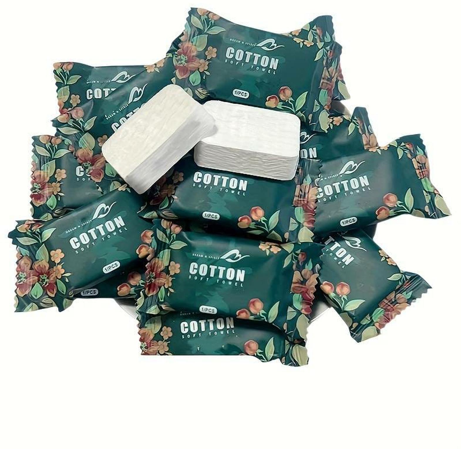 30*60cm 6pcs Disposable Compressed Towel, Travel Portable Package Face Towel, Female Portable Pure Cotton Thickened Candy Cleansing Towel, Compressed Small Square Towel Travel Accessories Bathroom Accessories.