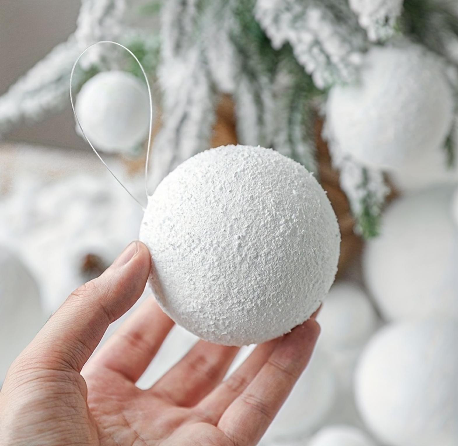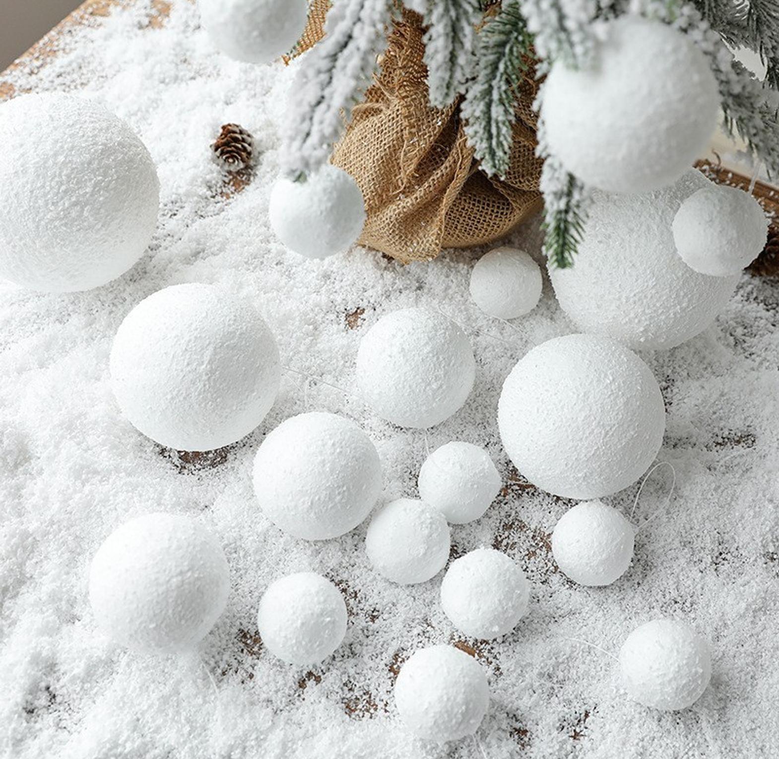 Christmas White Foam Balls Ornaments for Xmas Tree Hanging Pendant Ball Holiday New Year Wedding Party Home Decoration Supplies.