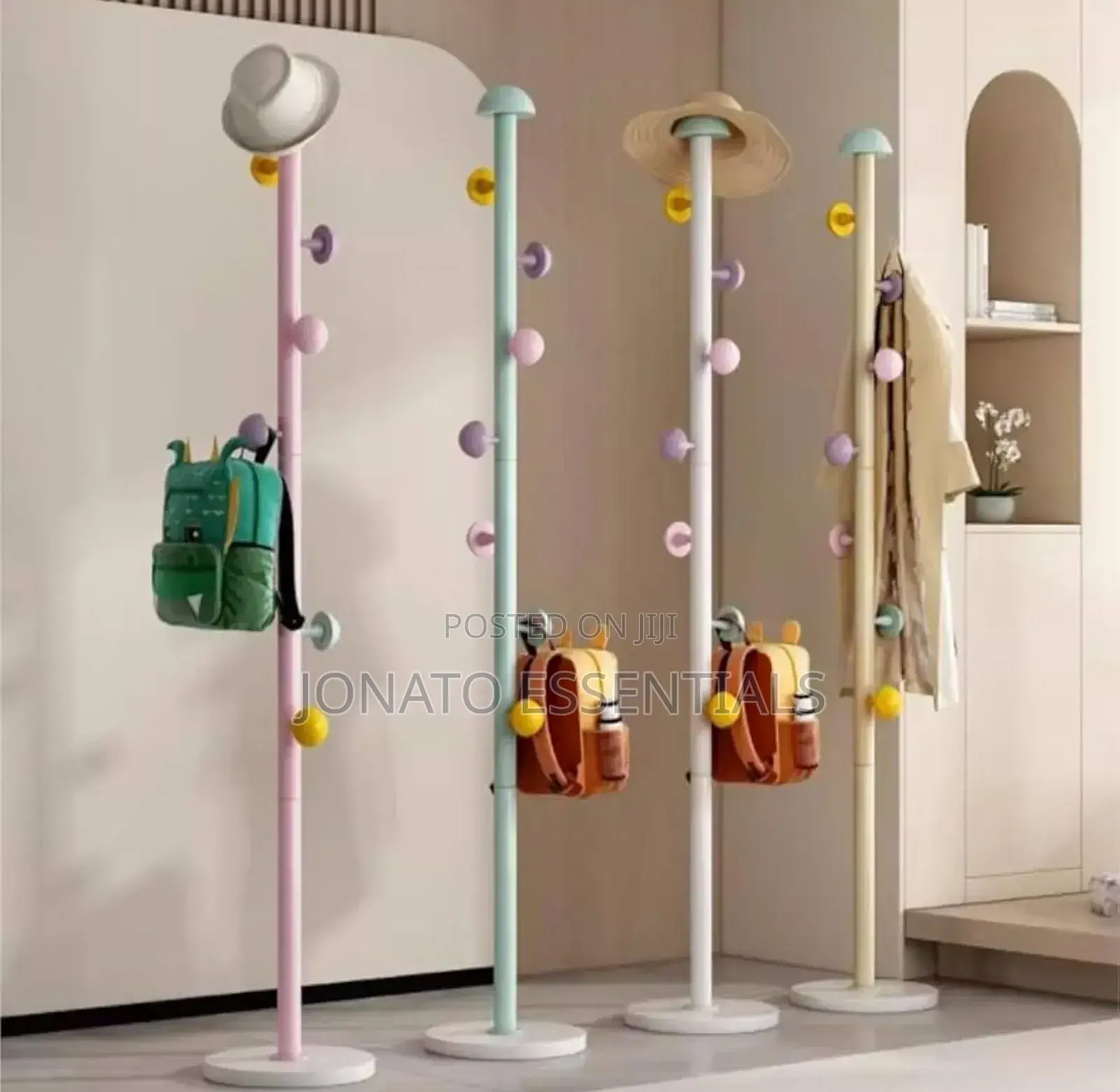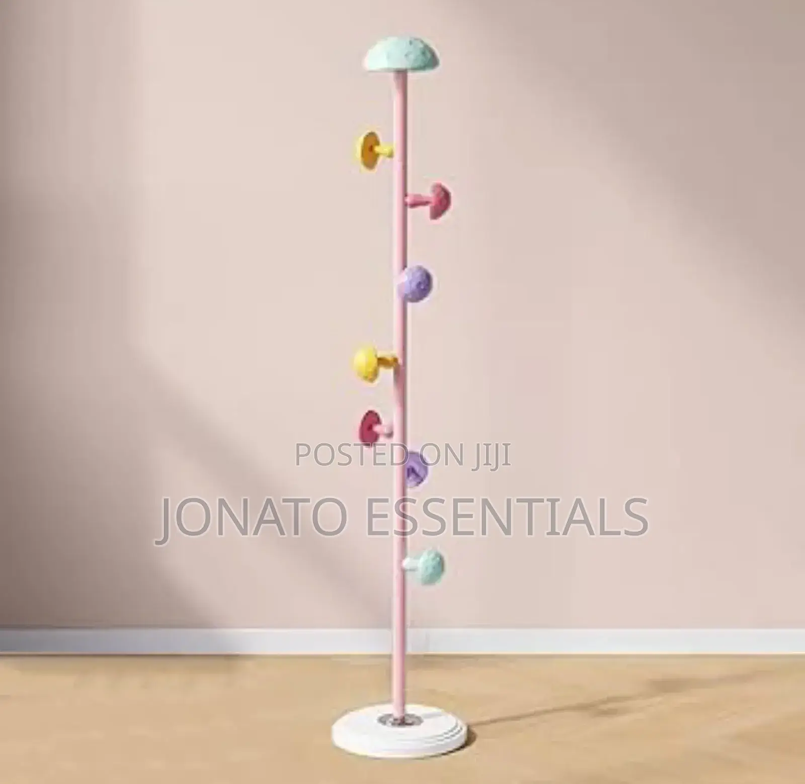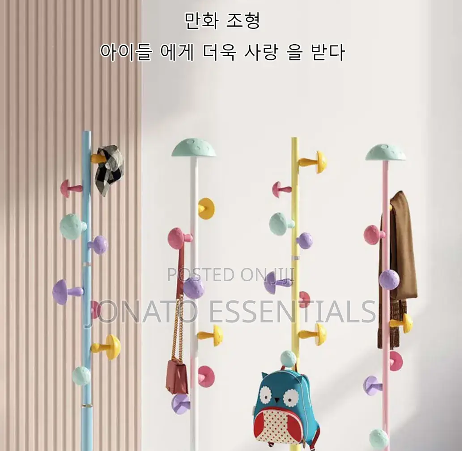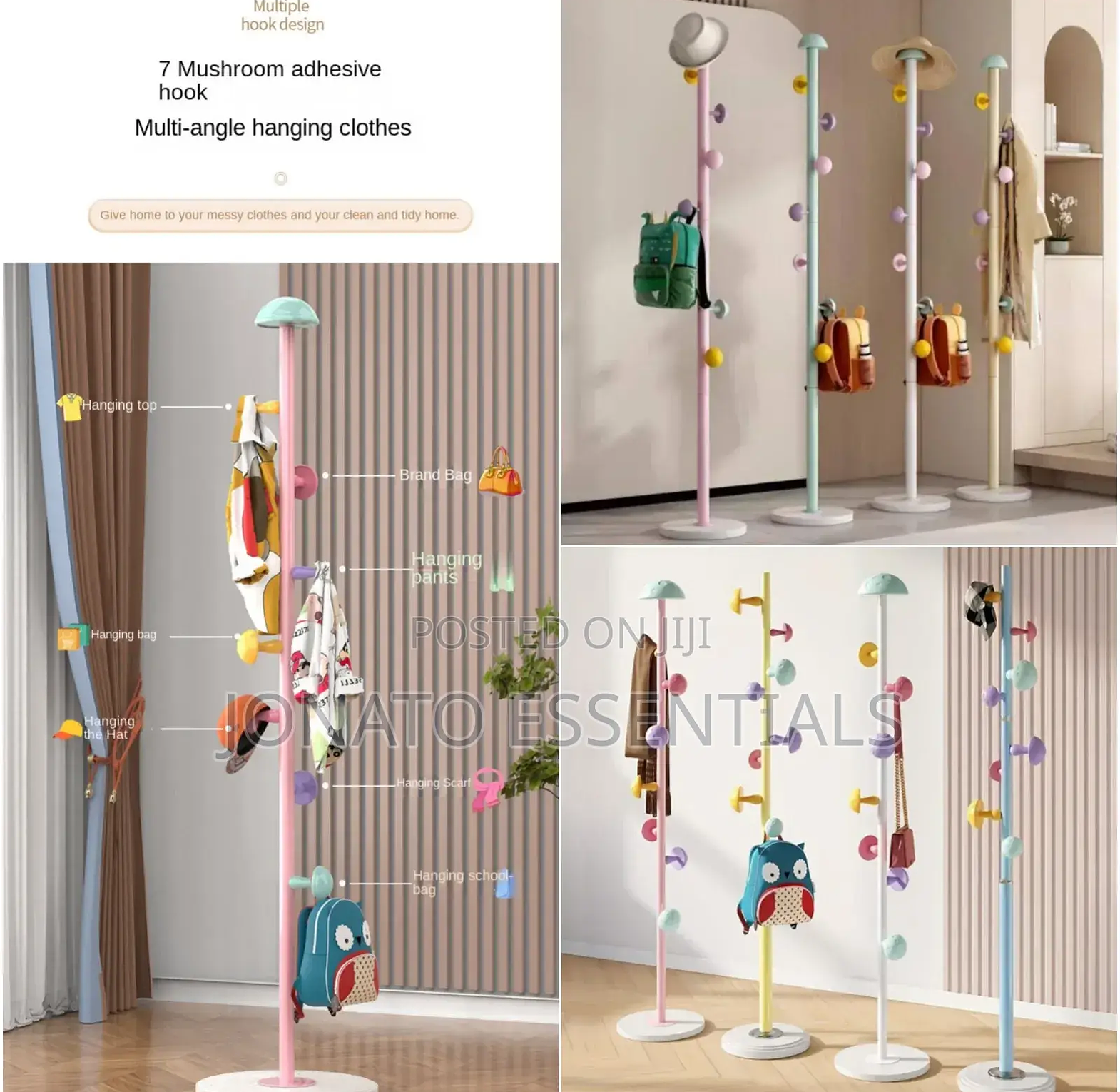 clothes rack, standing coat hanger, mushroom hook rack, home organizer, multi-hook stand, kids clothes hanger, floor standing hanger, school bag rack, freestanding coat tree, vertical clothes stand, hat and bag rack, rotating hook hanger, entryway organizer, compact clothes stand